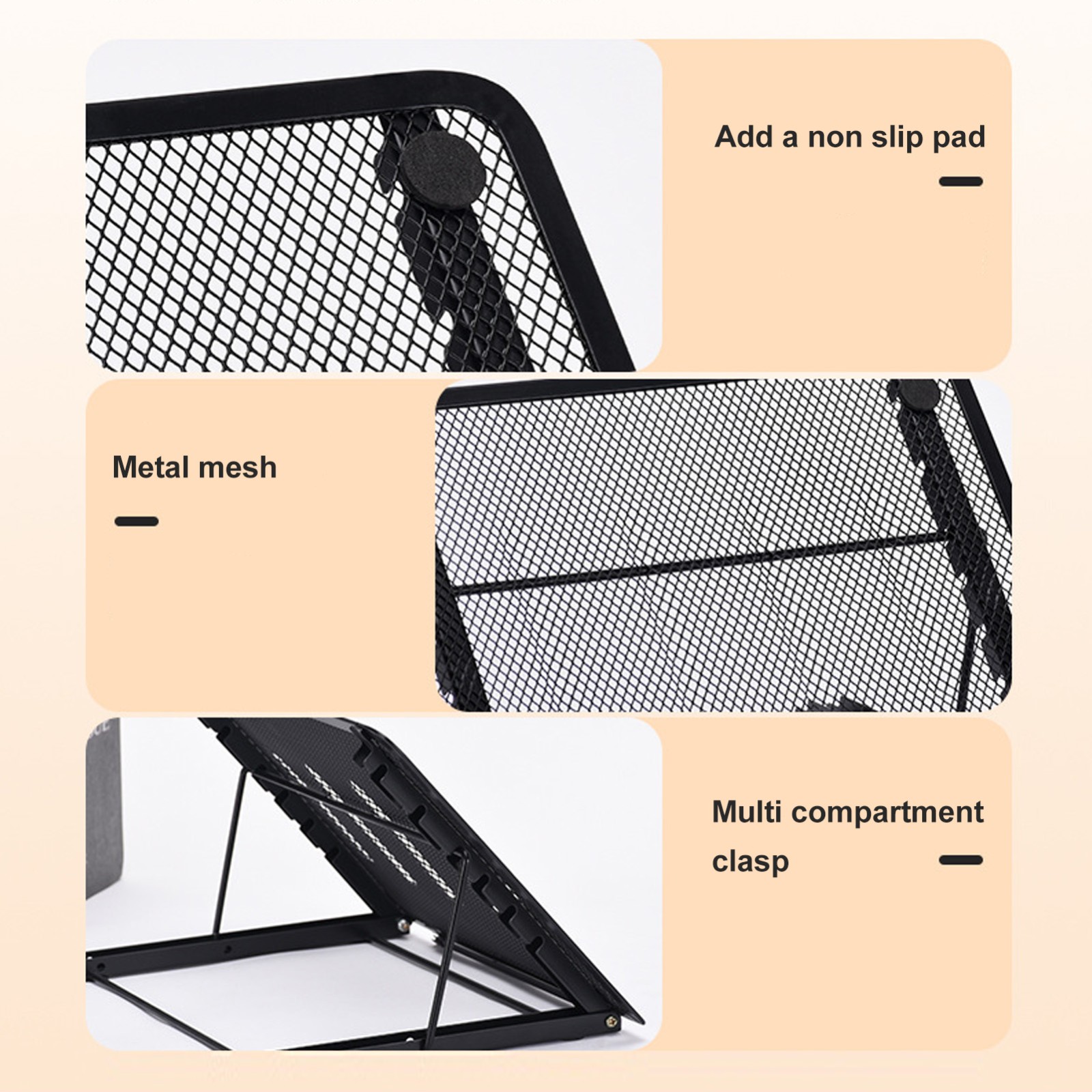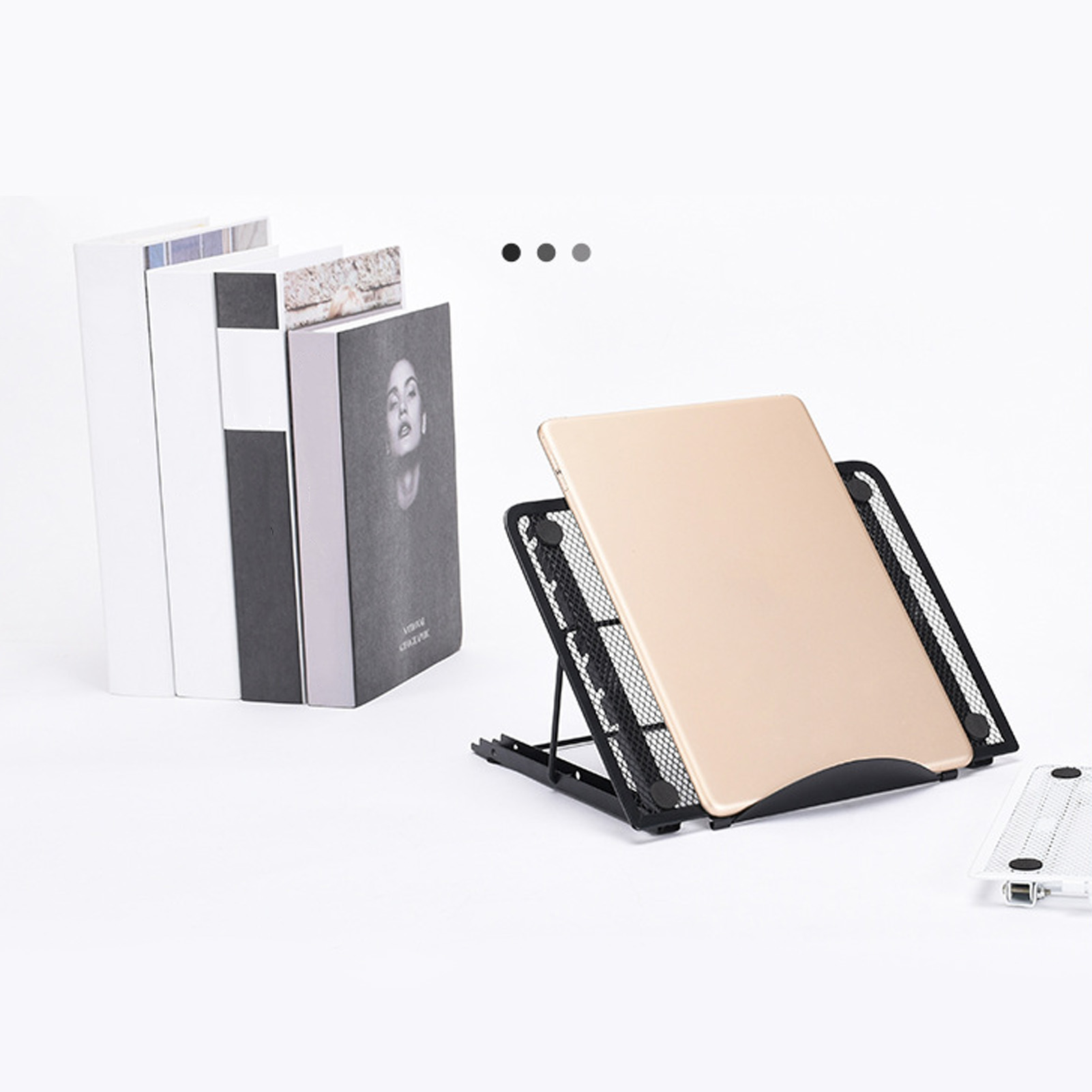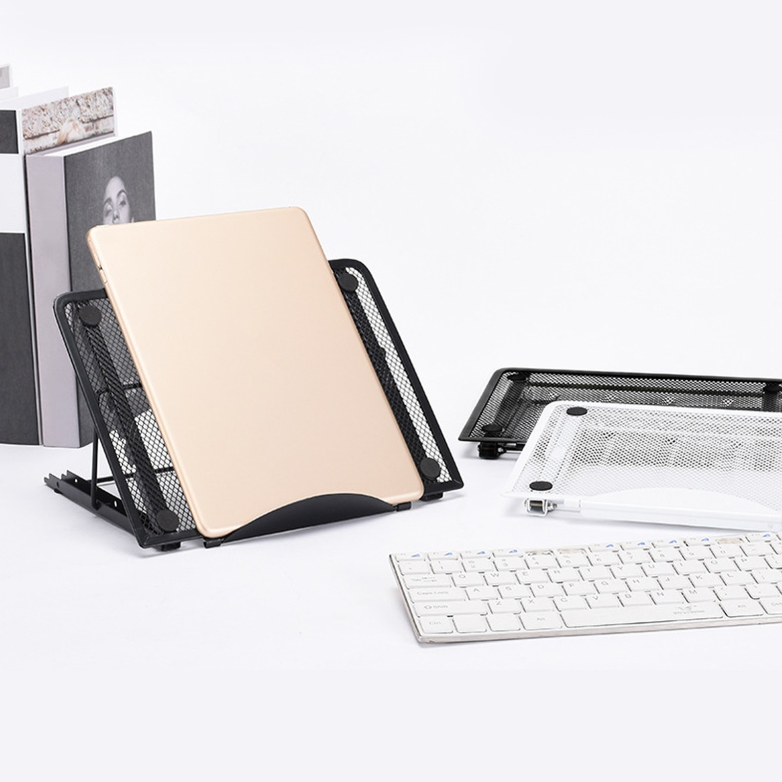 Laptop Stand Desk Adjustable Foldable Ventilated Tablet Computer Holder Universal Lightweight Ergonomic Cooling Black