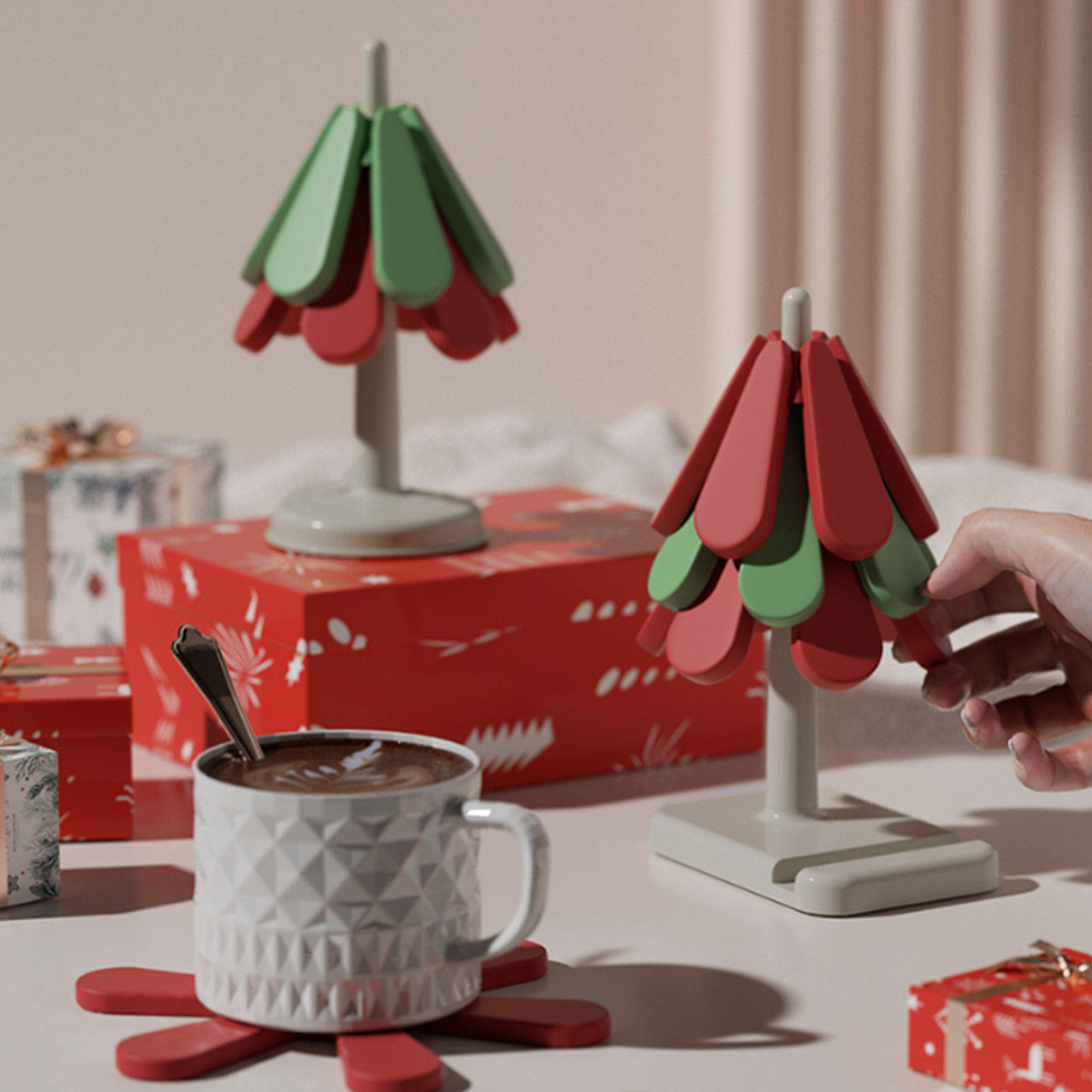 Tree Shape Foldable Insulation Mat Silicone Anti Scald Mat Heat Resistant Coasters Pads for Teapot Pans Bowl Round Base