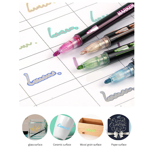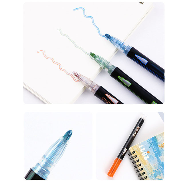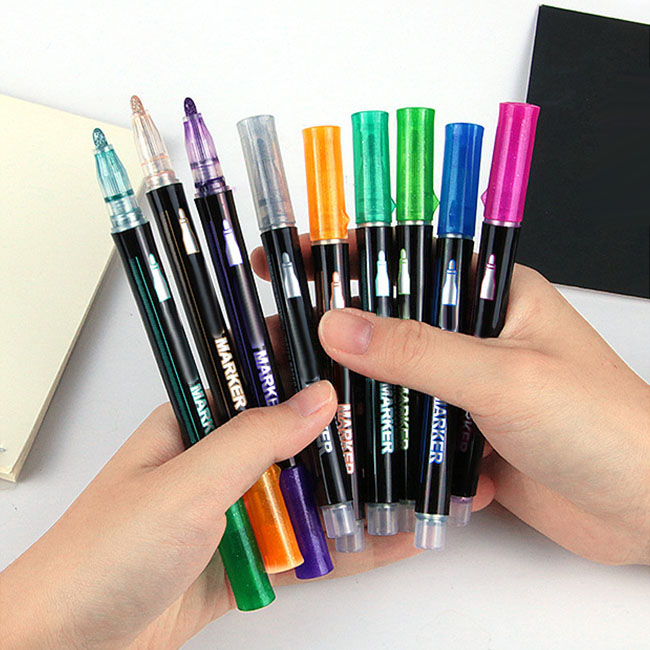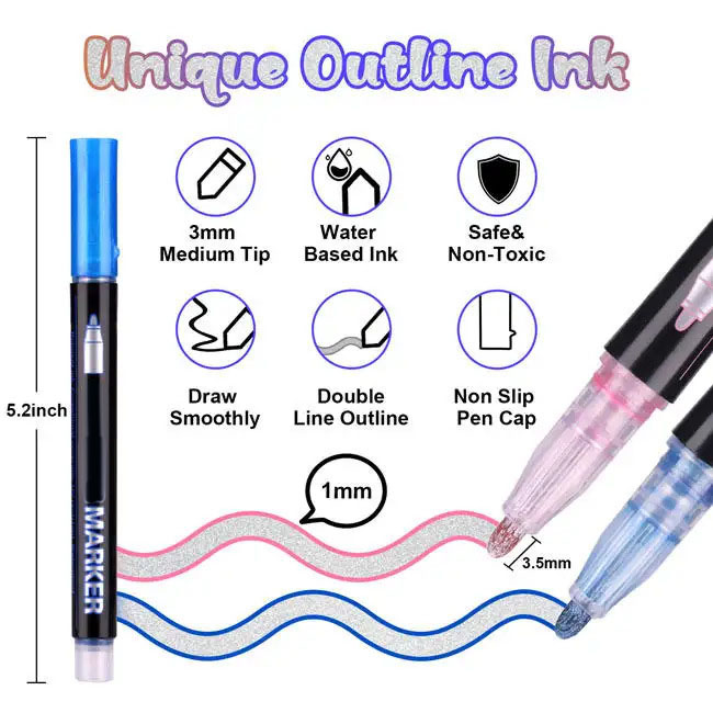 8 Colors Double Line Outline Markers Pen Water Based Ink 3mm Medium Tip Draw Smoothly Metallic Paint Pens