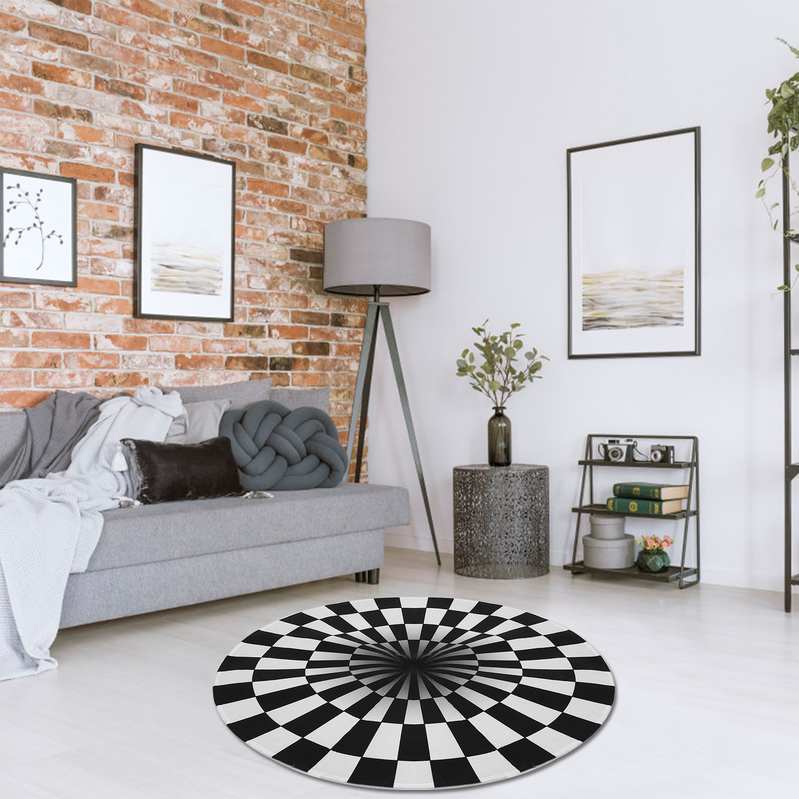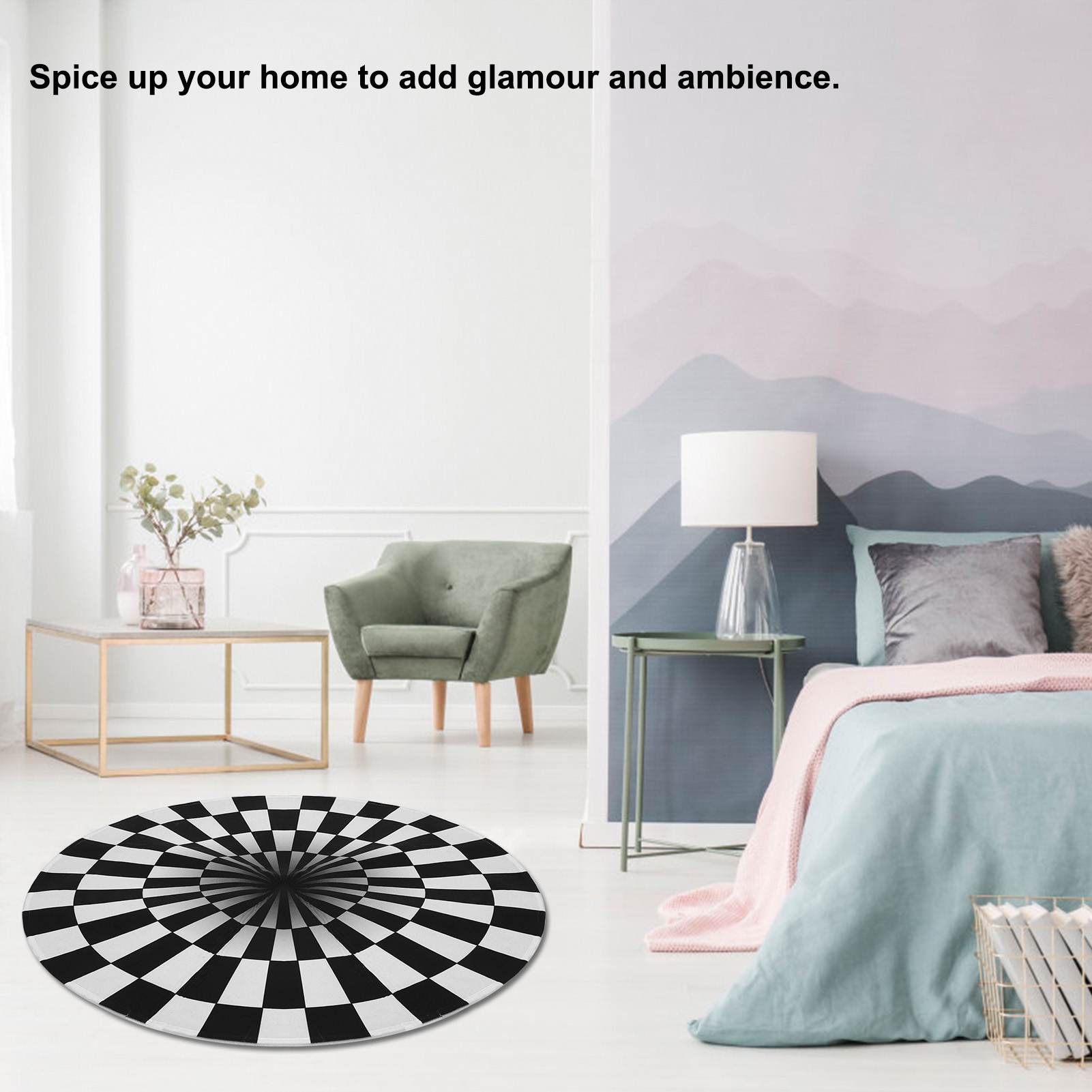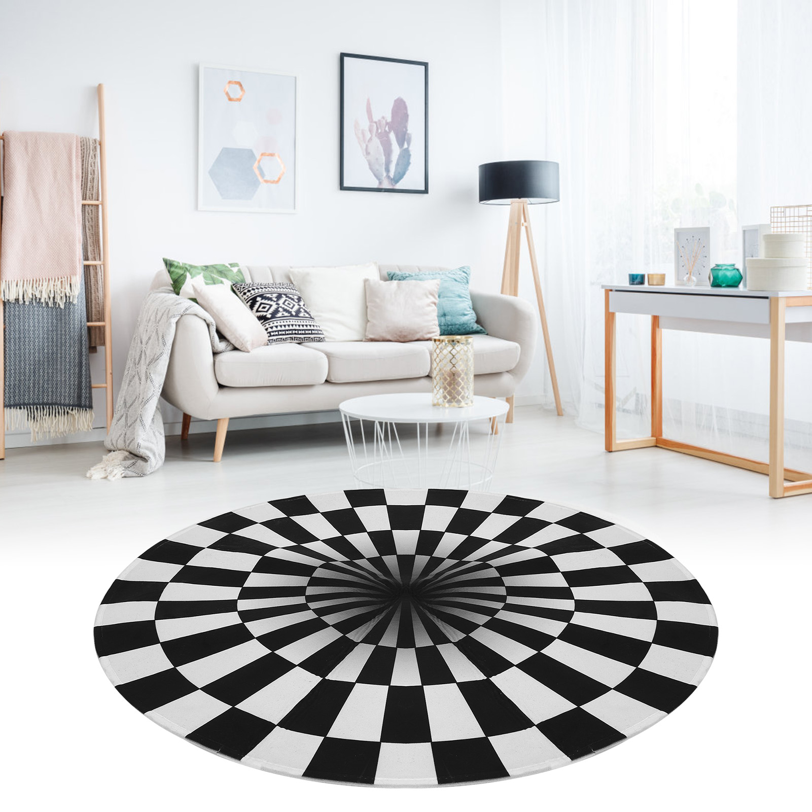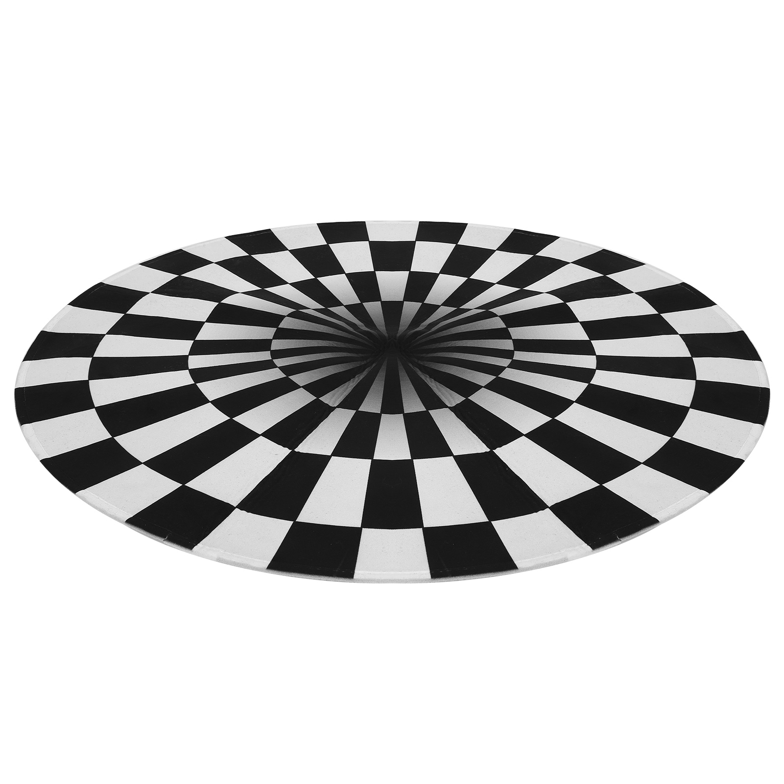 3D Optical Illusion Vortex Rug, Black & White Spiral Infinity Hole Design, Non-Slip Floor Mat, Round, Diameter 80cm / 60cm