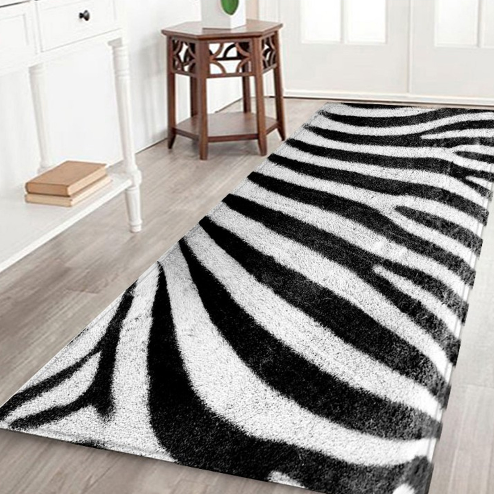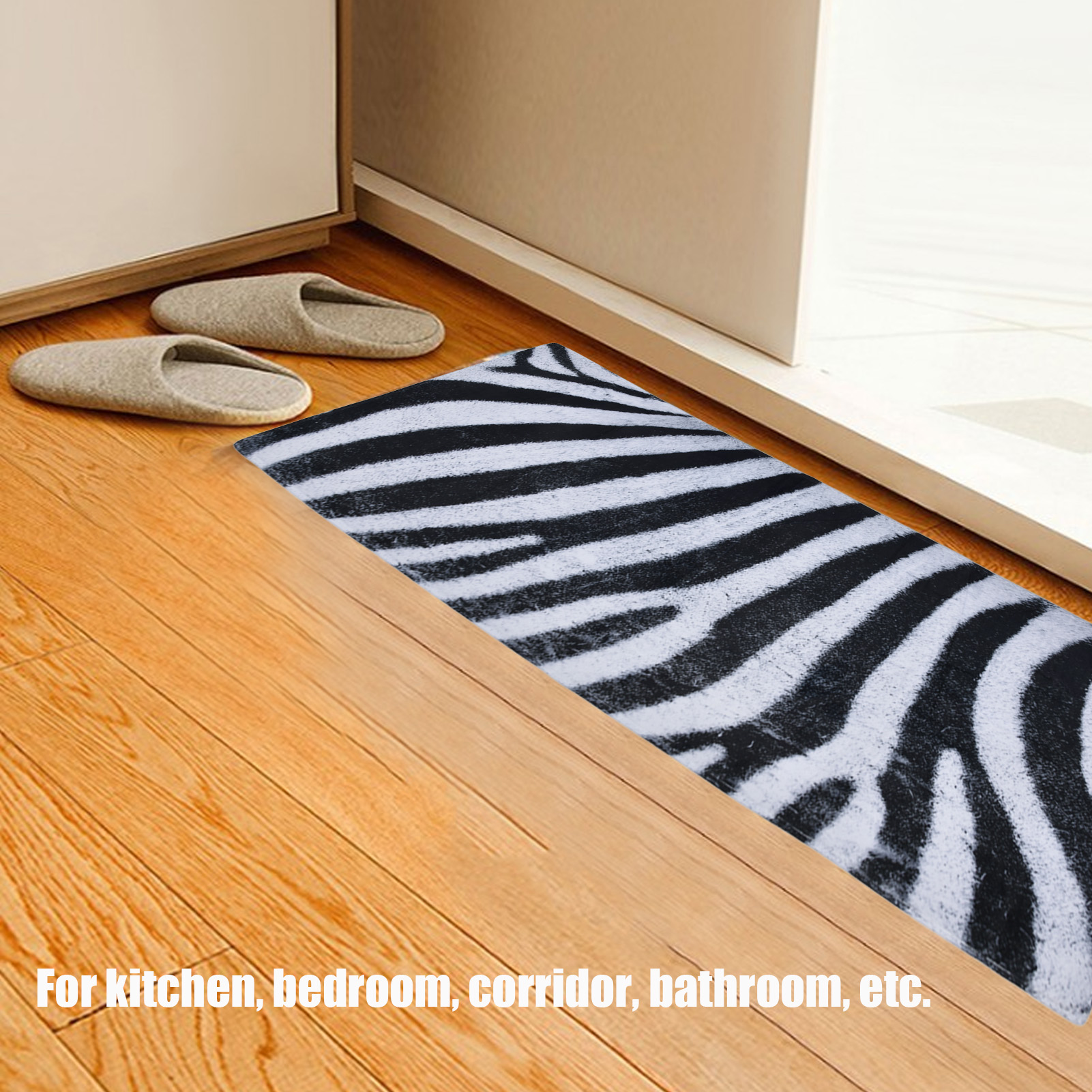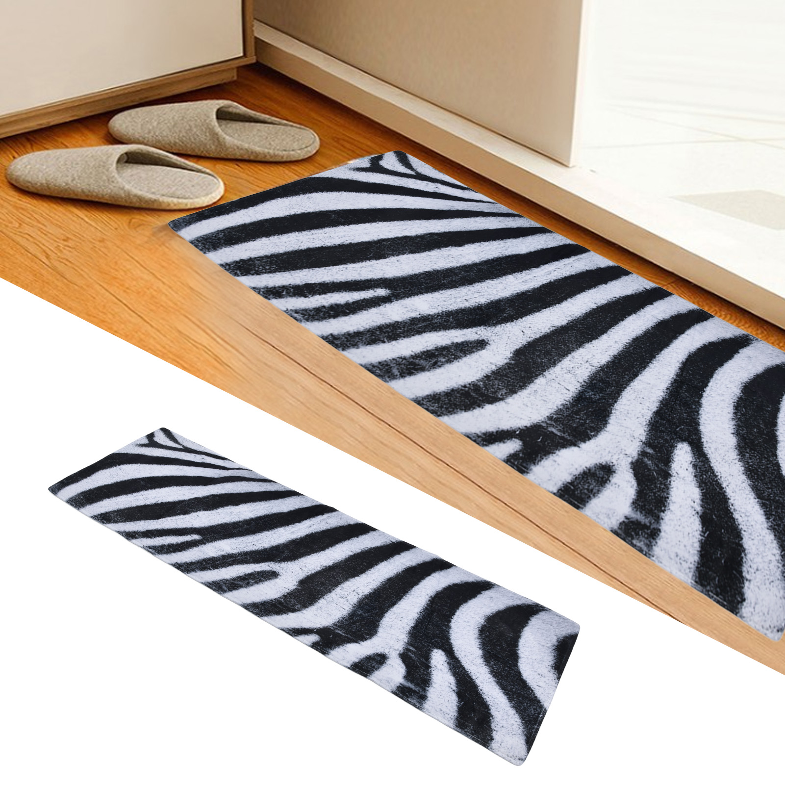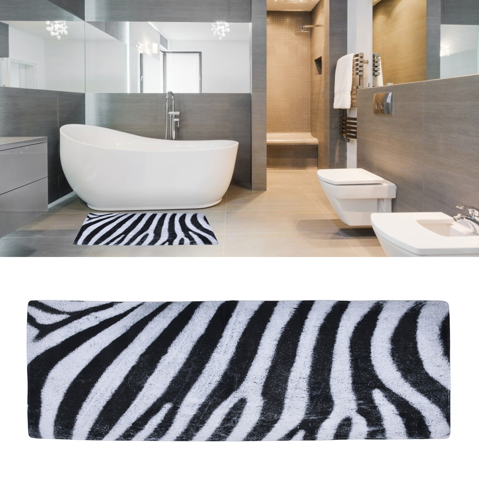 Zebra Stripe Floor Mat, Extra Long 179cm Bathroom & Entryway Rug, Super Non-Slip, Modern Black White Animal Print, 70.5"x23"