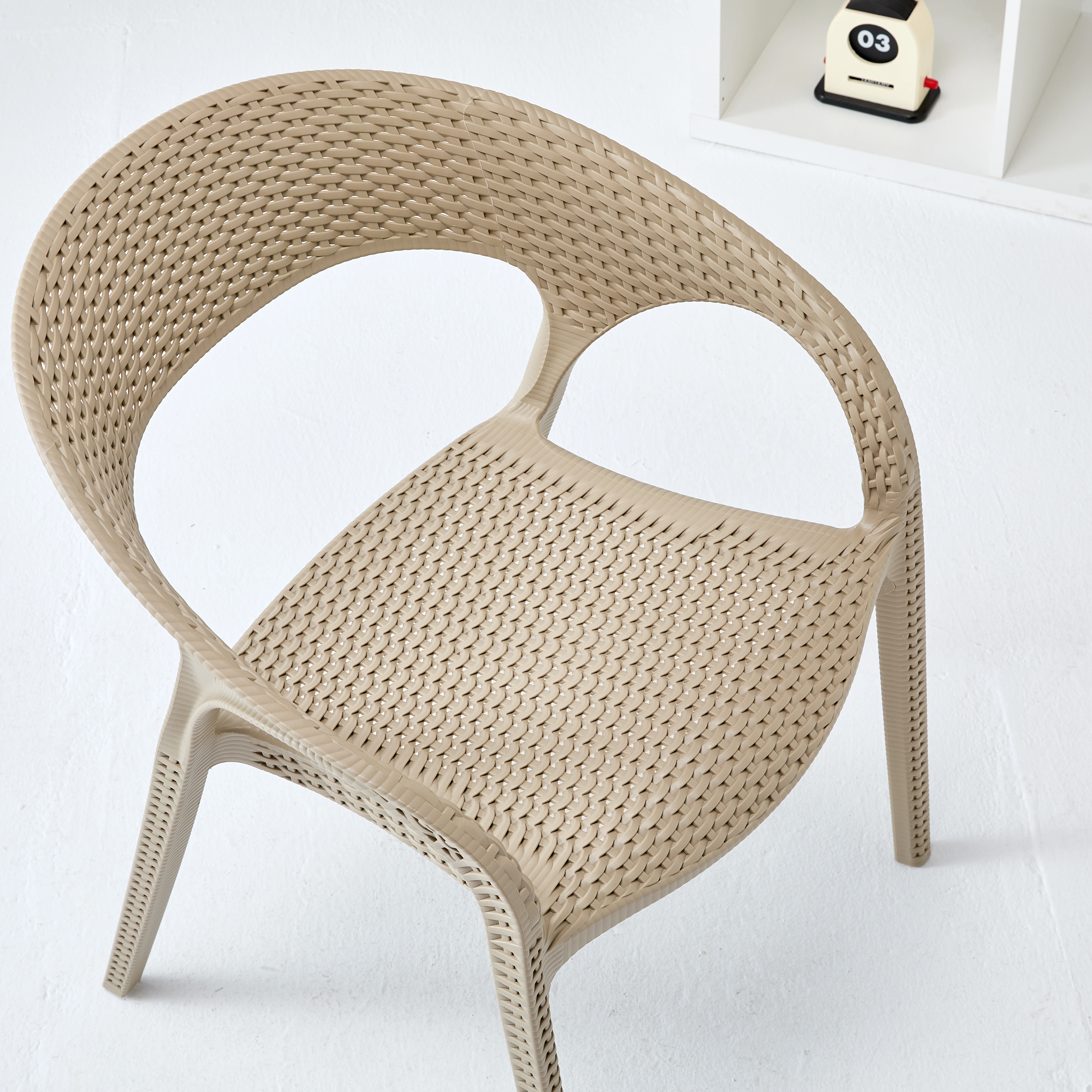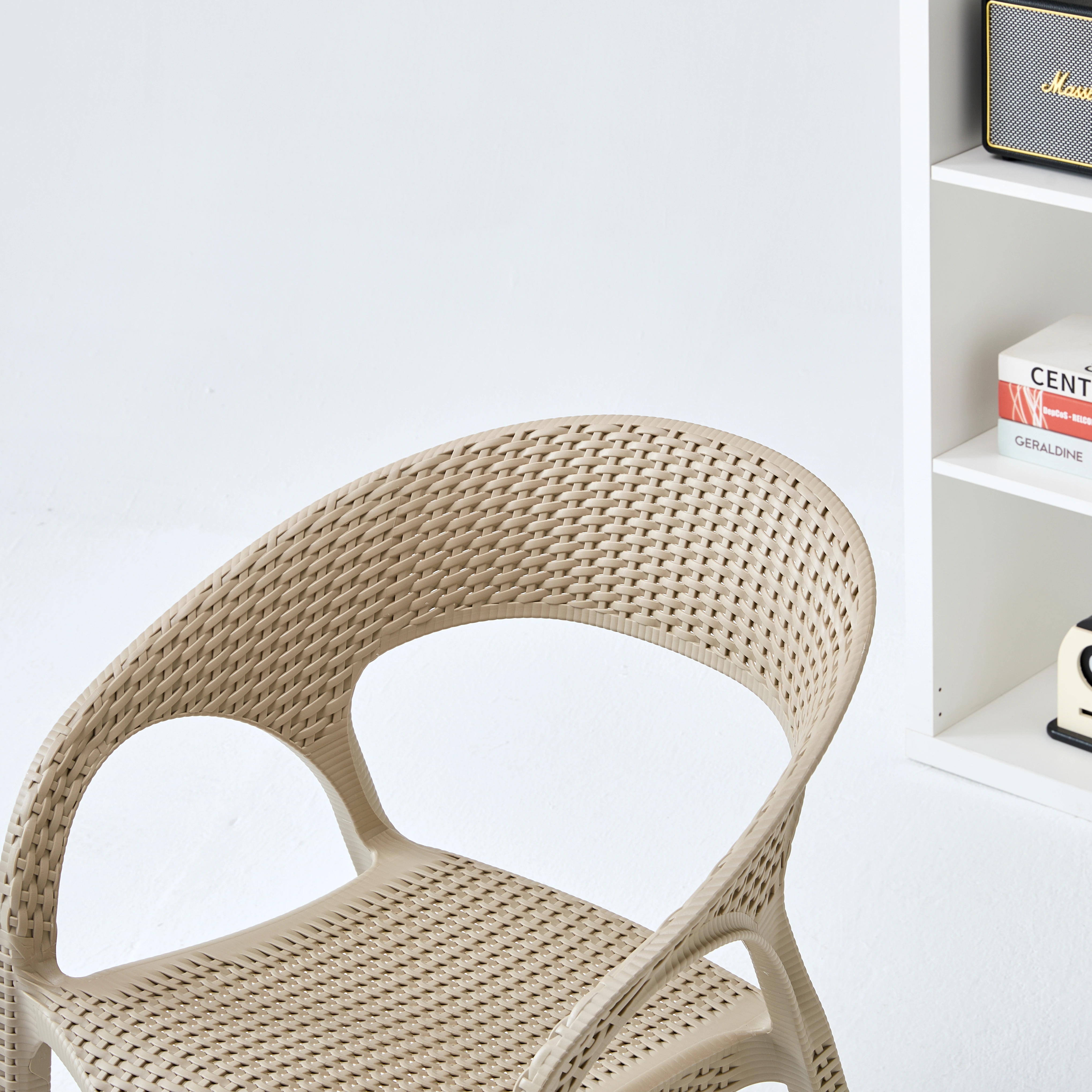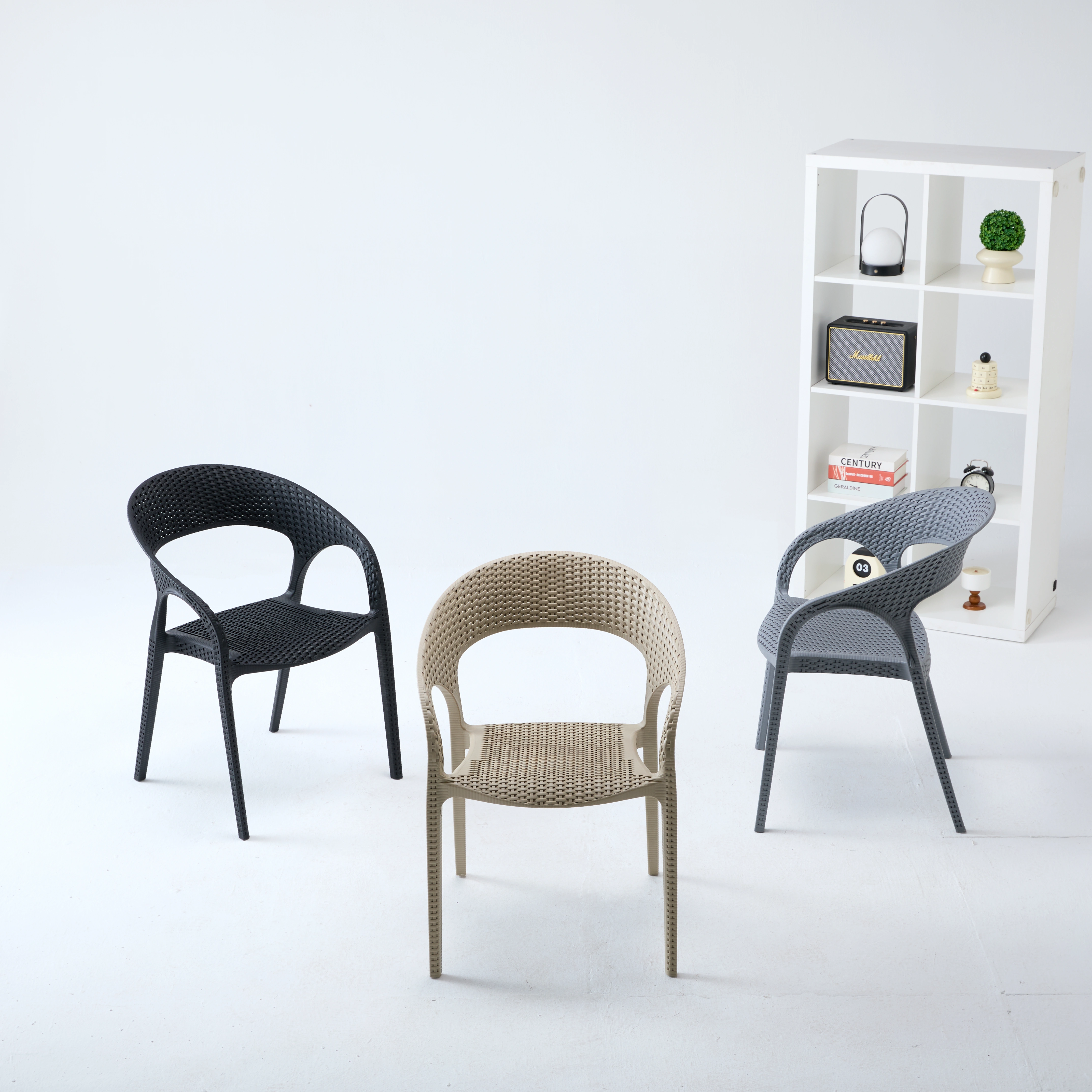 【样品预售】多色仿藤编 PP 塑料椅 户外庭院休闲椅 室内外通用靠背扶手椅 8149 ( junbang)