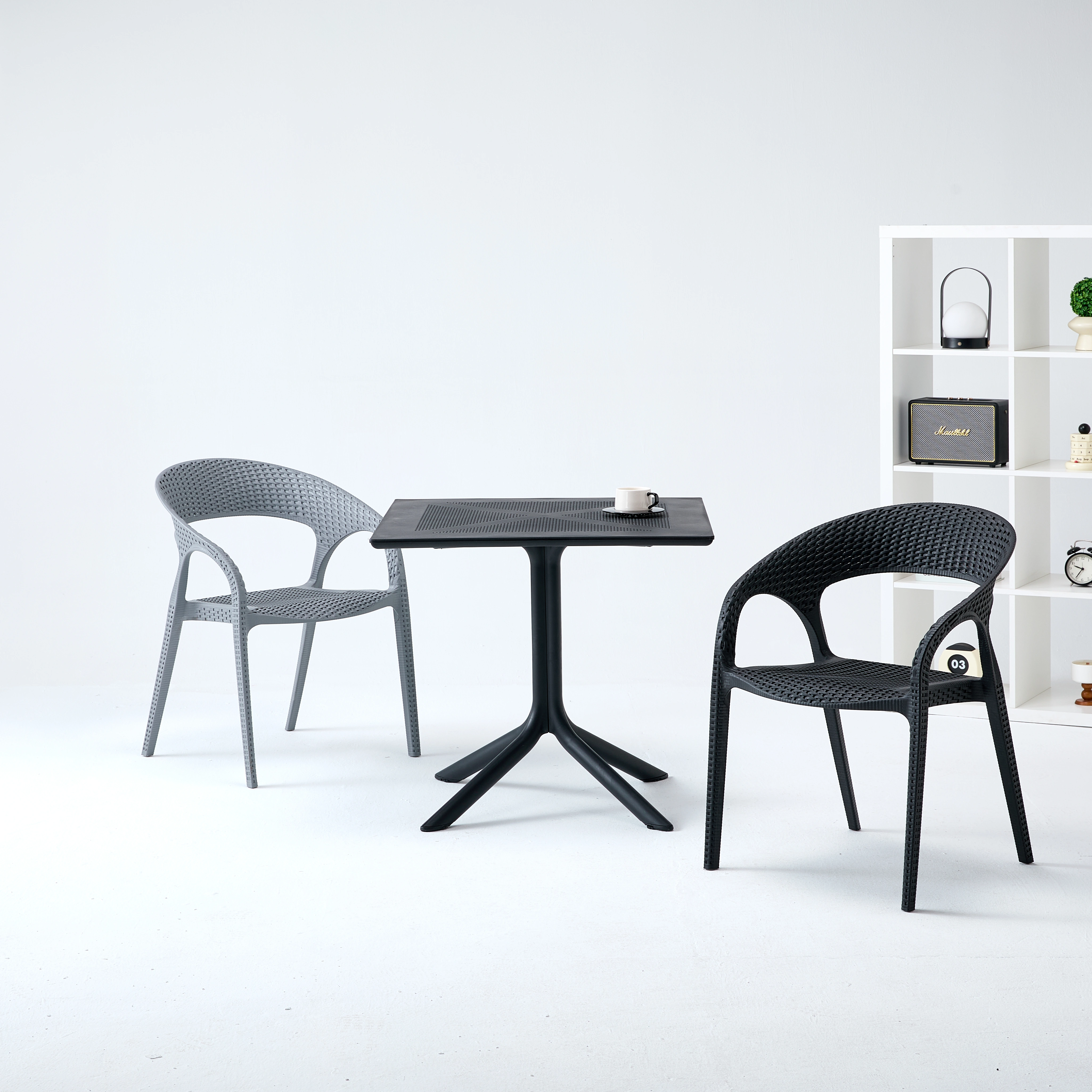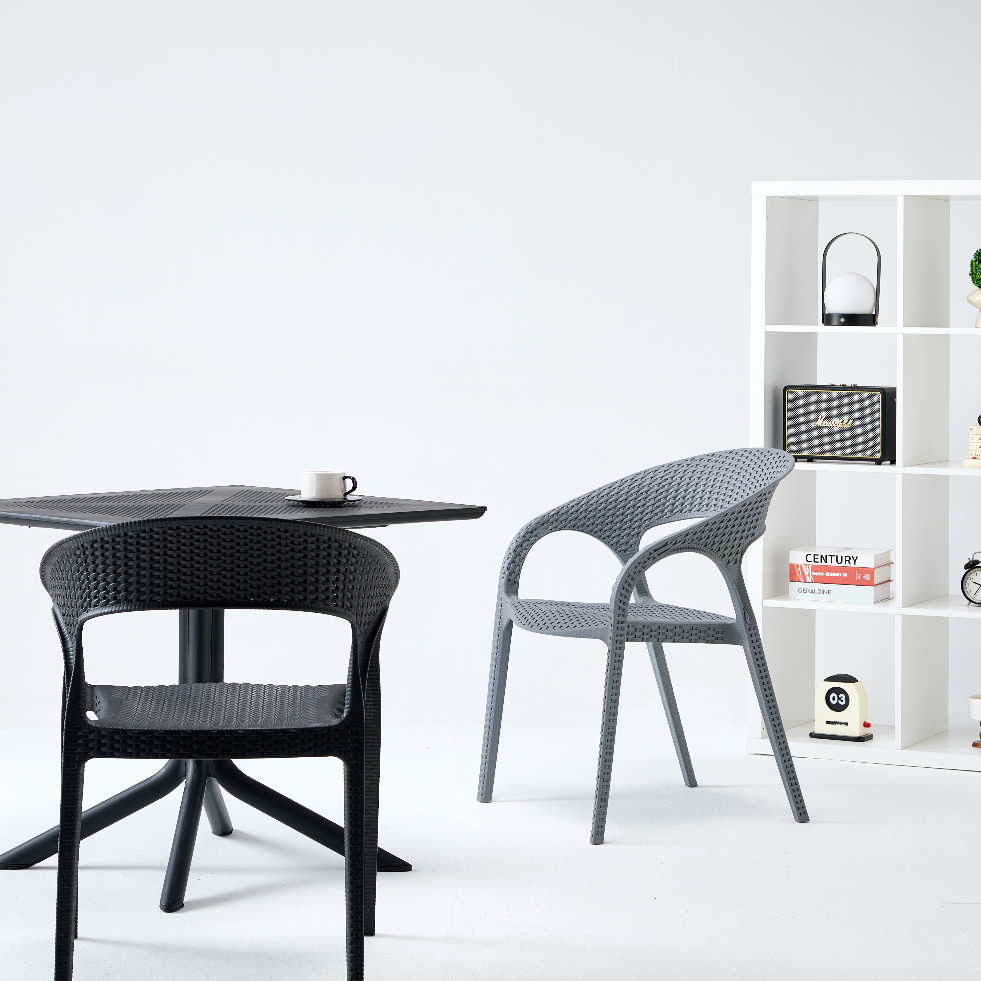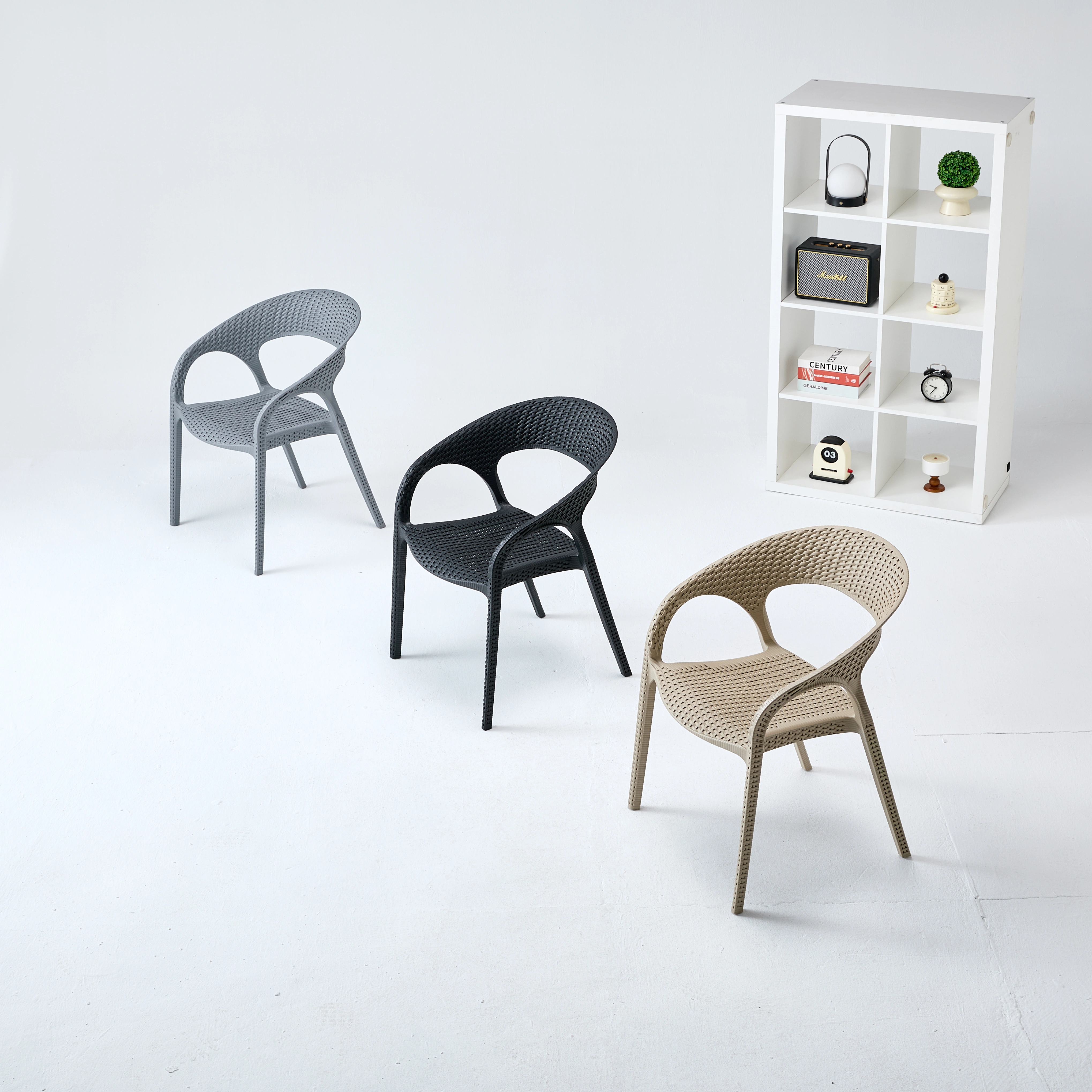 【样品预售】多色仿藤编 PP 塑料椅 户外庭院休闲椅 室内外通用靠背扶手椅 8149 ( junbang)