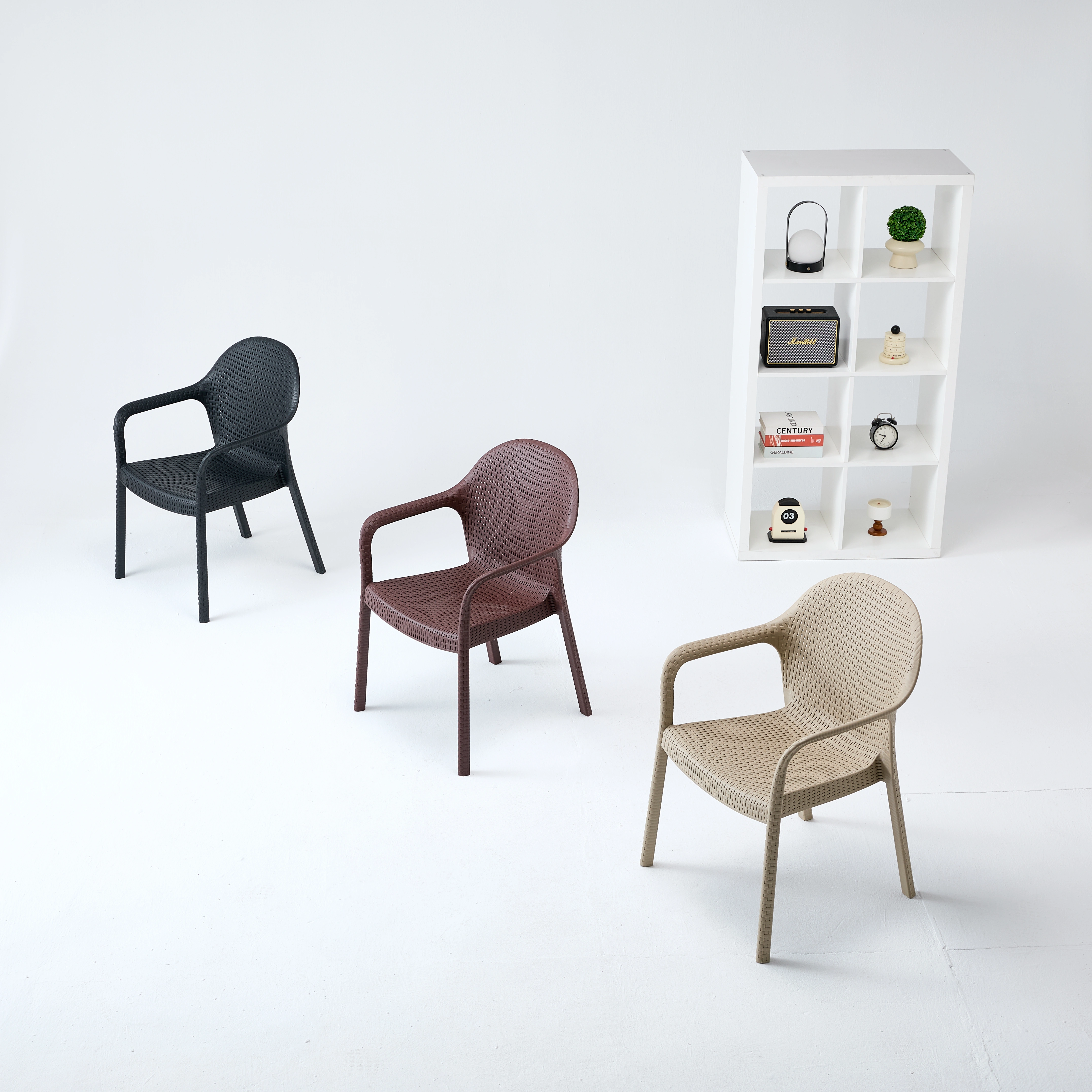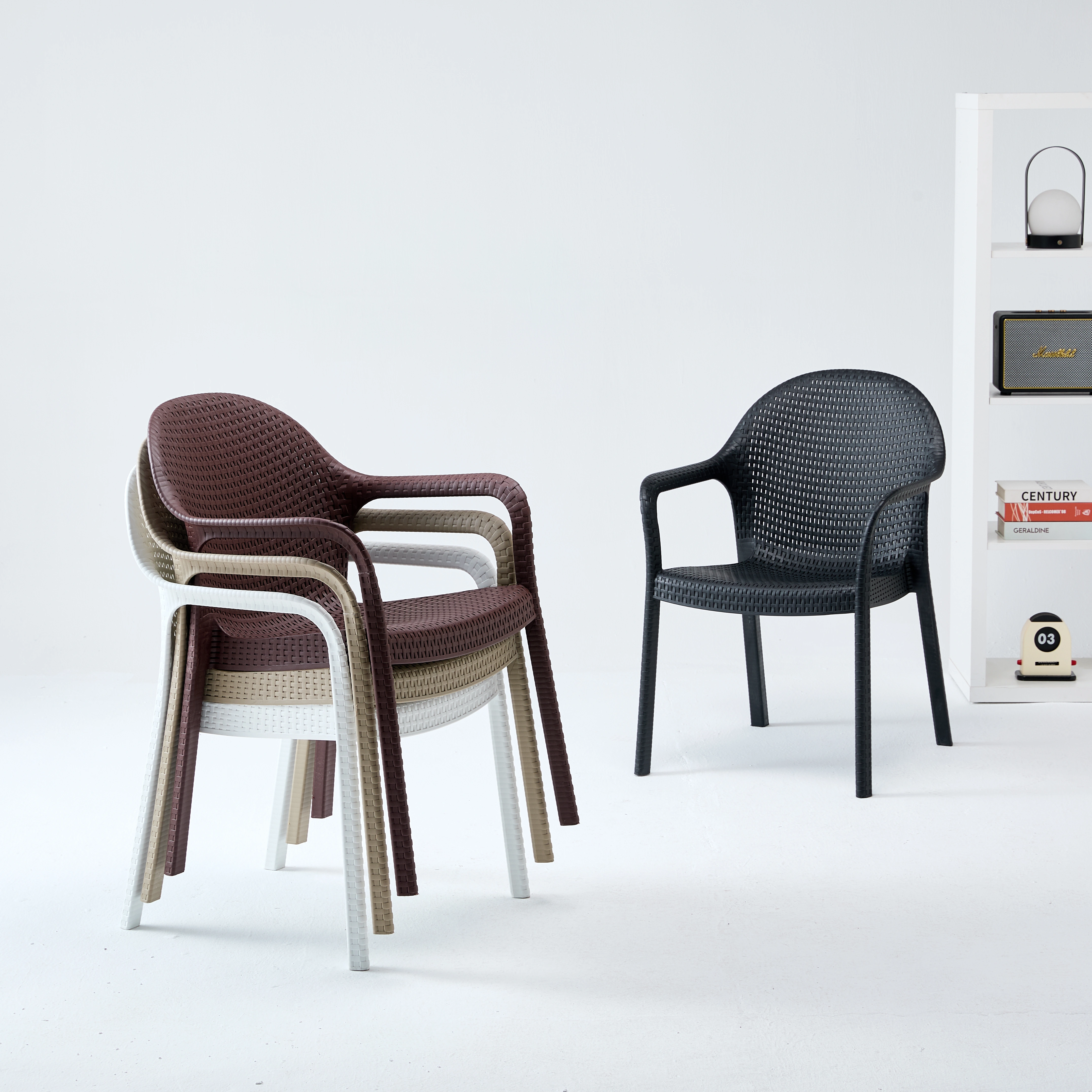 【样品预售】多色仿藤编 PP 塑料扶手椅 室内外通用休闲椅 简约现代户外庭院椅 8150 (junbang)