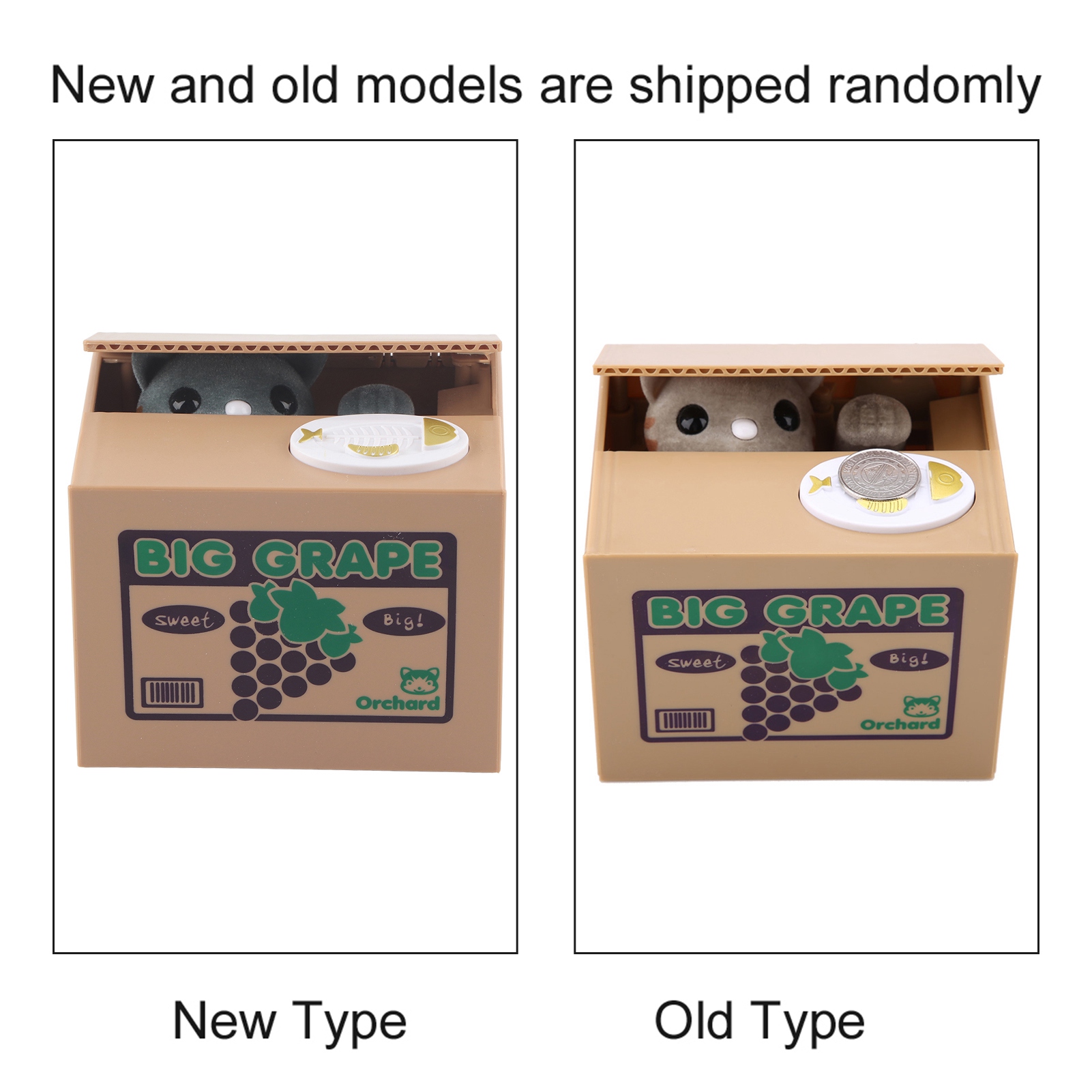 You put the coin on the plate, and the cat in the box will steal away your coin.
