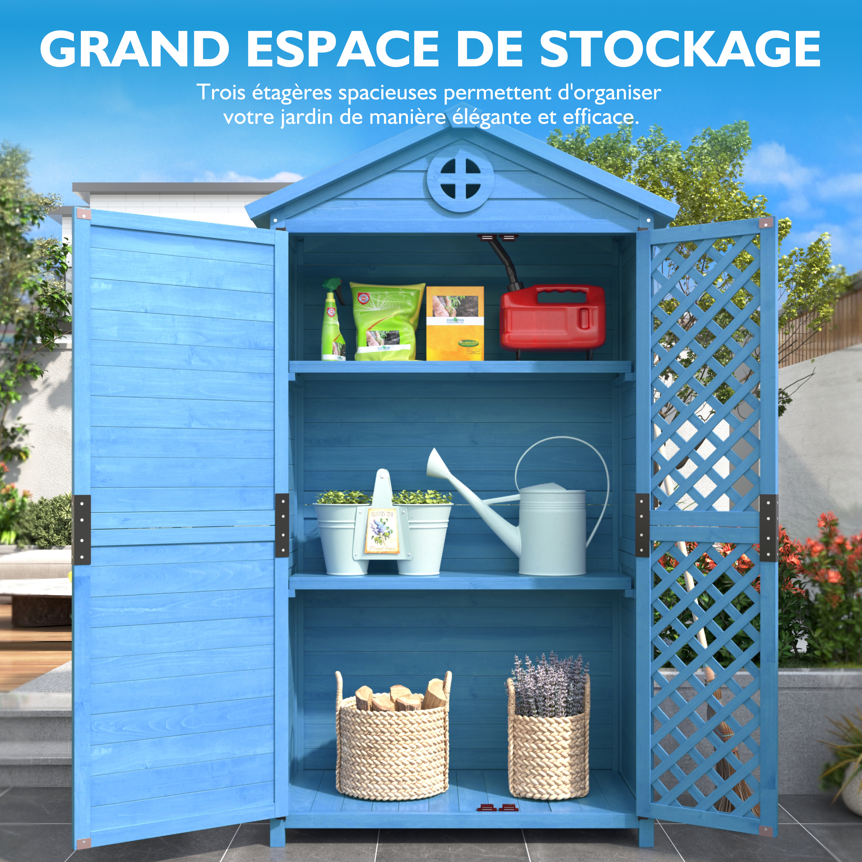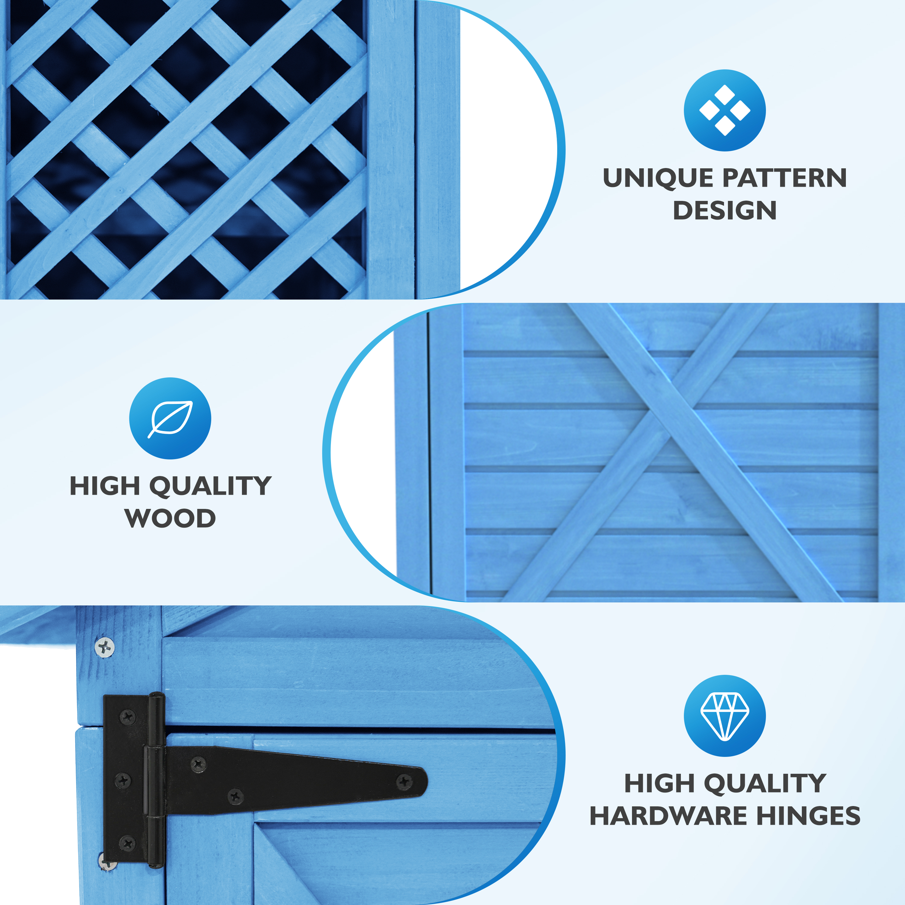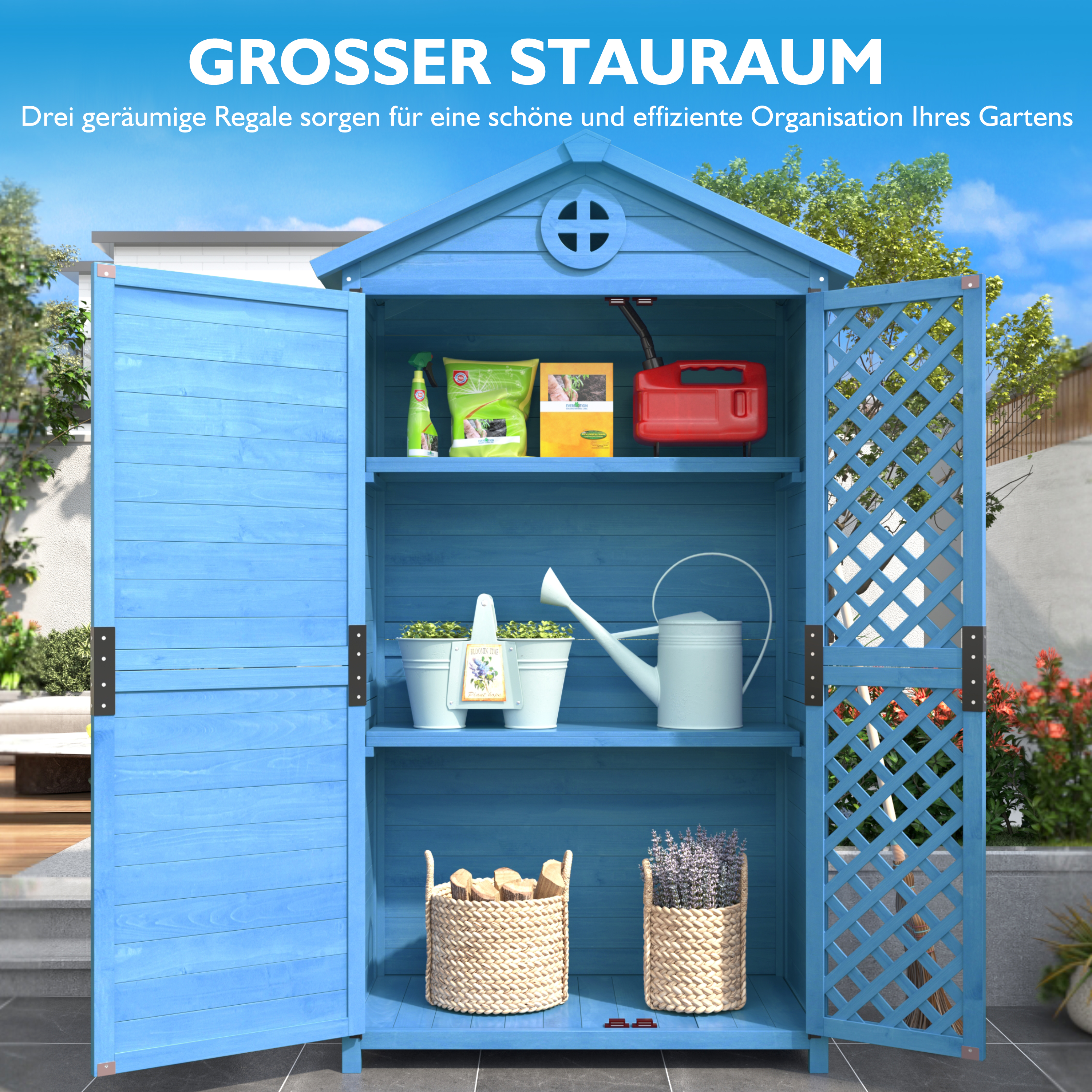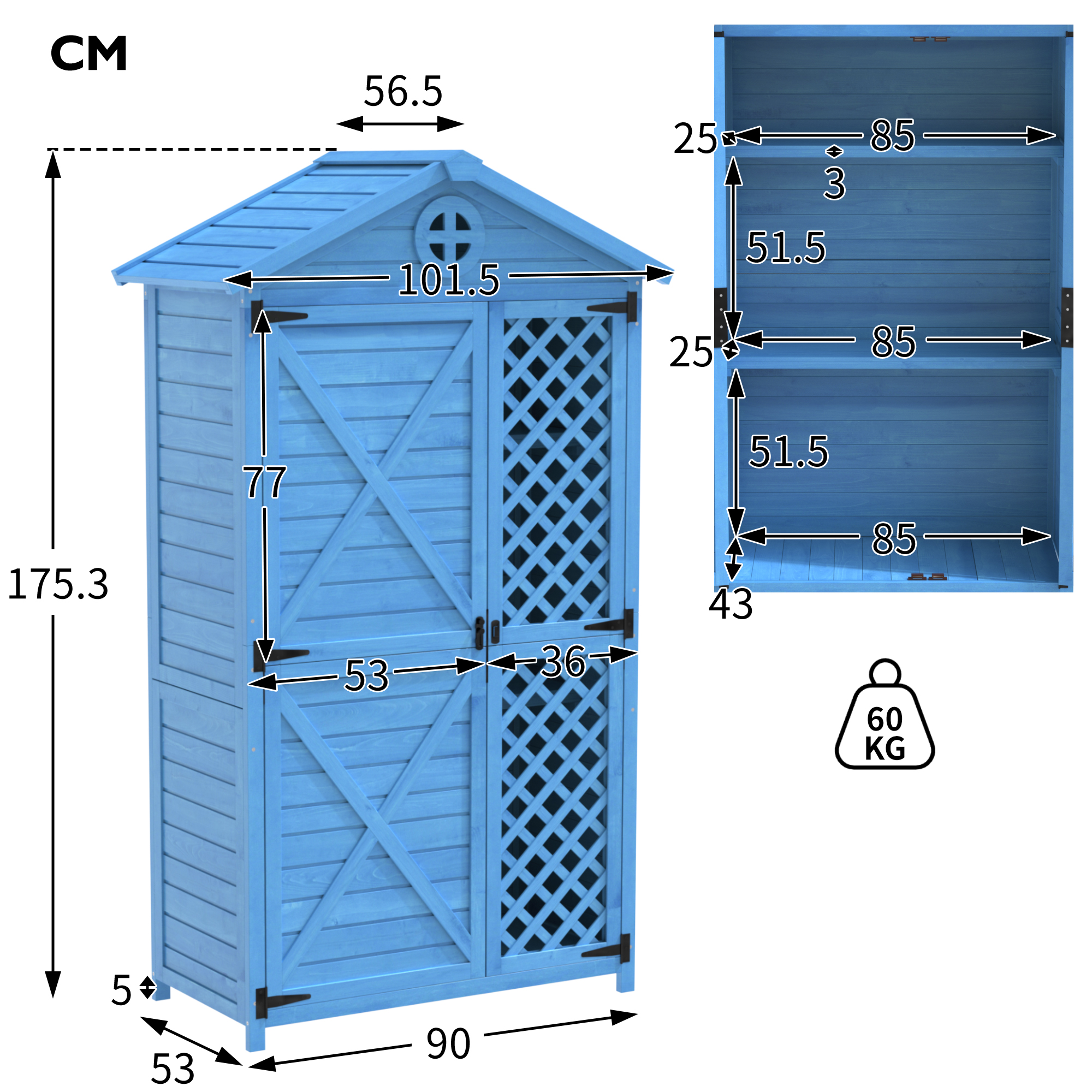 Outdoor Wood Storage Shed with 3 Shelves, Weatherproof & Maintenance-Free Garden Tool House, Fade-Resistant Large Patio Lockable Cabinet for Yard, Terrace, Balcony, 90x56x175cm, Blue