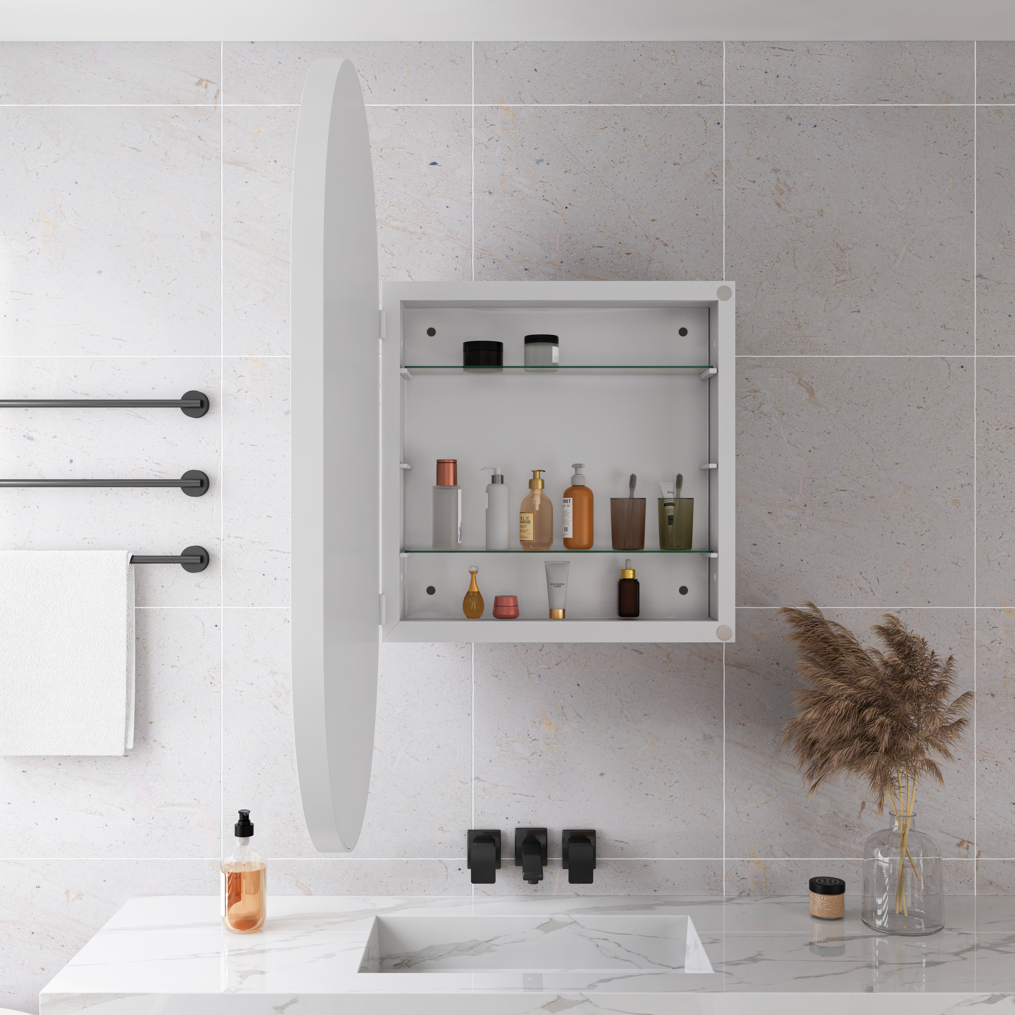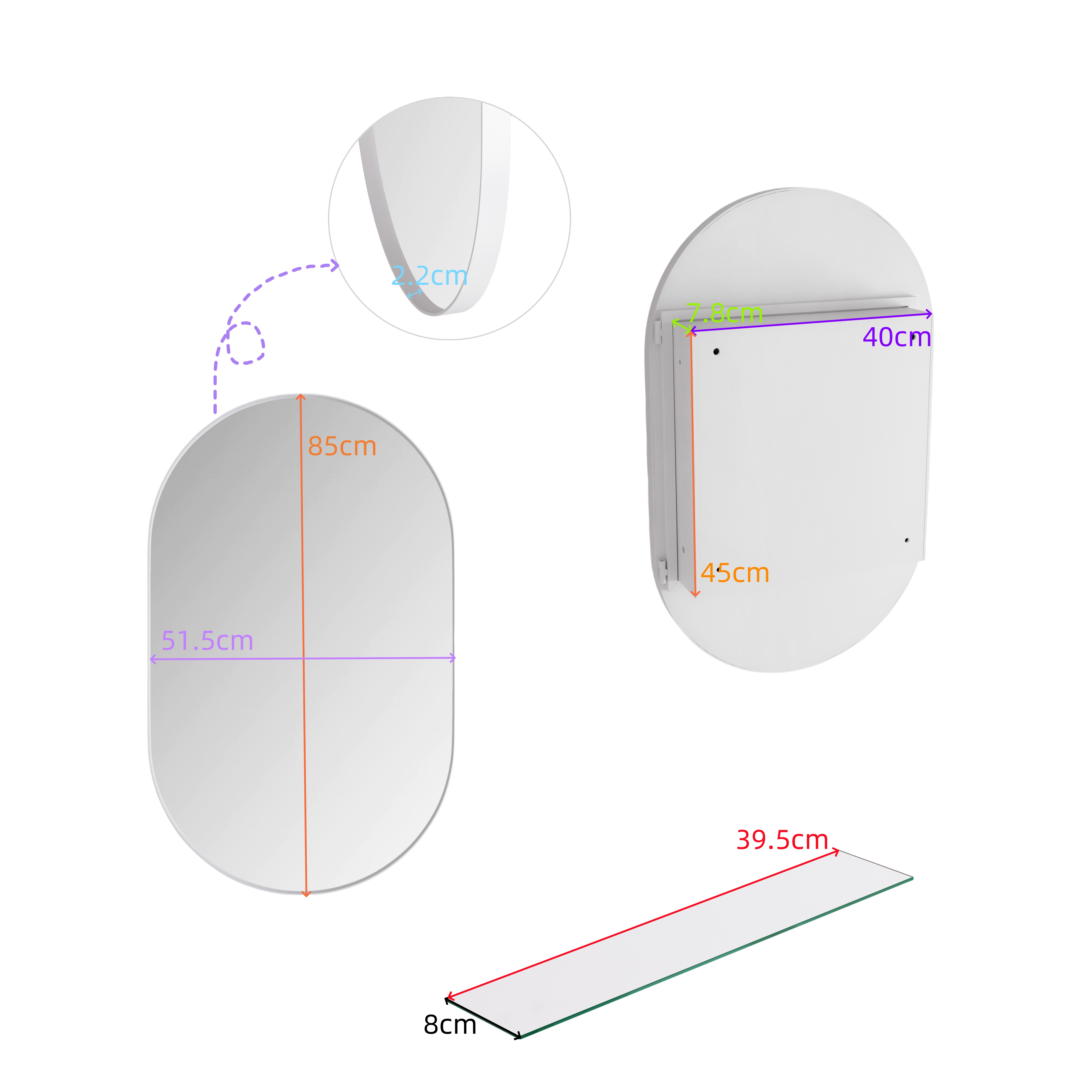 85CM Oval Bathroom Mirror Cabinet with Storage - Recessed or Surface Mounted, Adjustable Shelves, Fog Resistant for Modern Bathroom, White