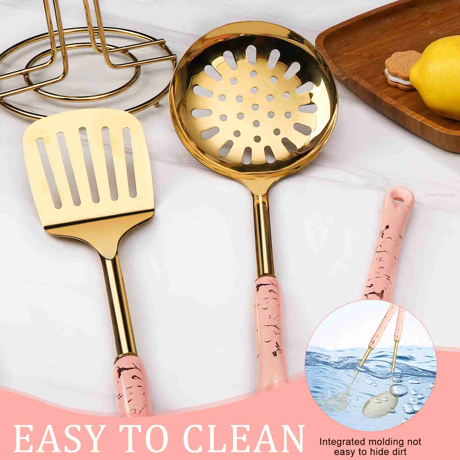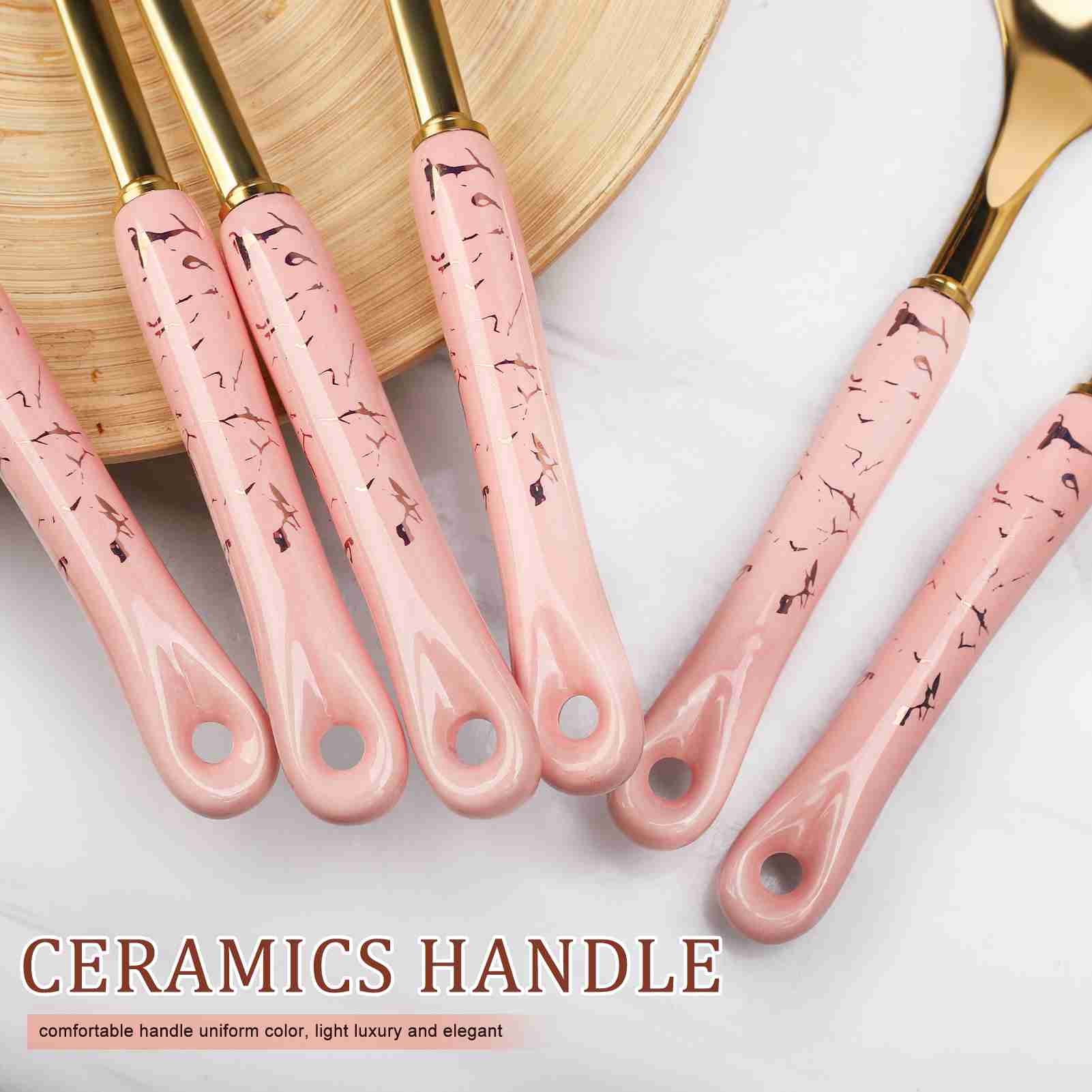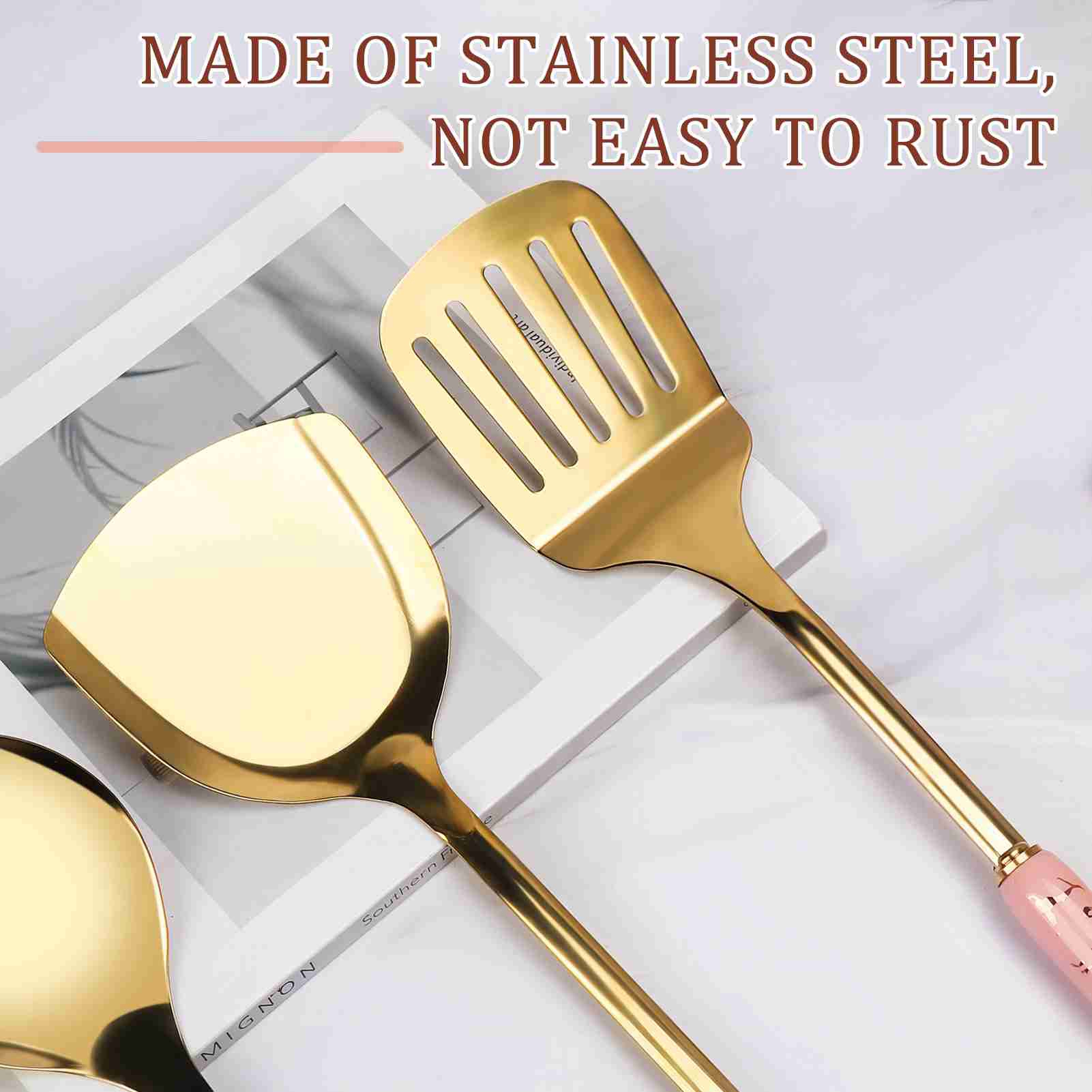 7-Piece Luxury Kitchen Utensil Set, Non-Stick & Heat Resistant, Pink Gold Ceramic Handle with Stainless Steel, Includes Holder - Elegant Cooking Gift for Wedding, Housewarming