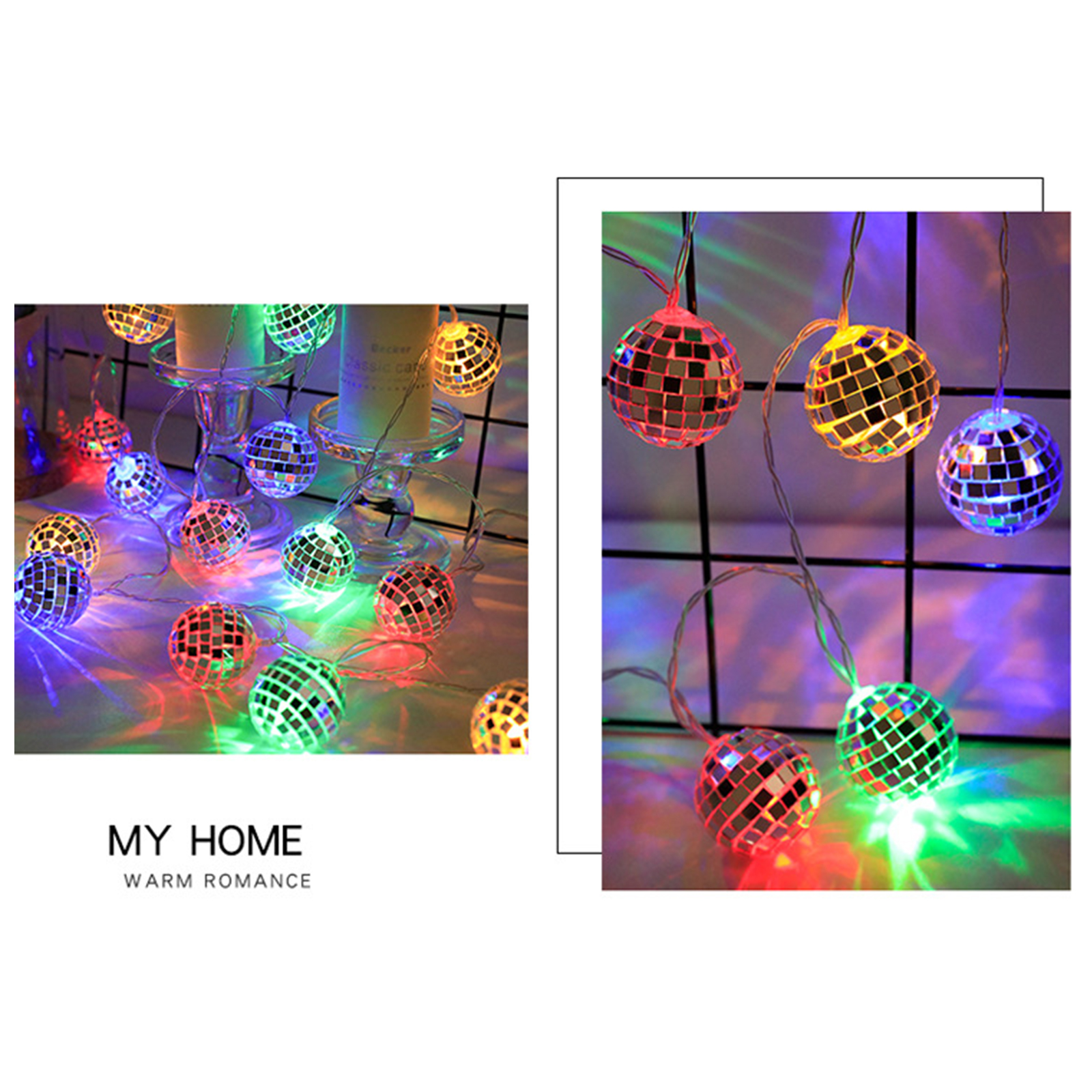 3米20灯LED镜面马赛球灯串 彩色电池供电式装饰灯串(常亮+闪烁双模式) 防水IP42 适用于派对婚礼圣诞花园庭院装饰