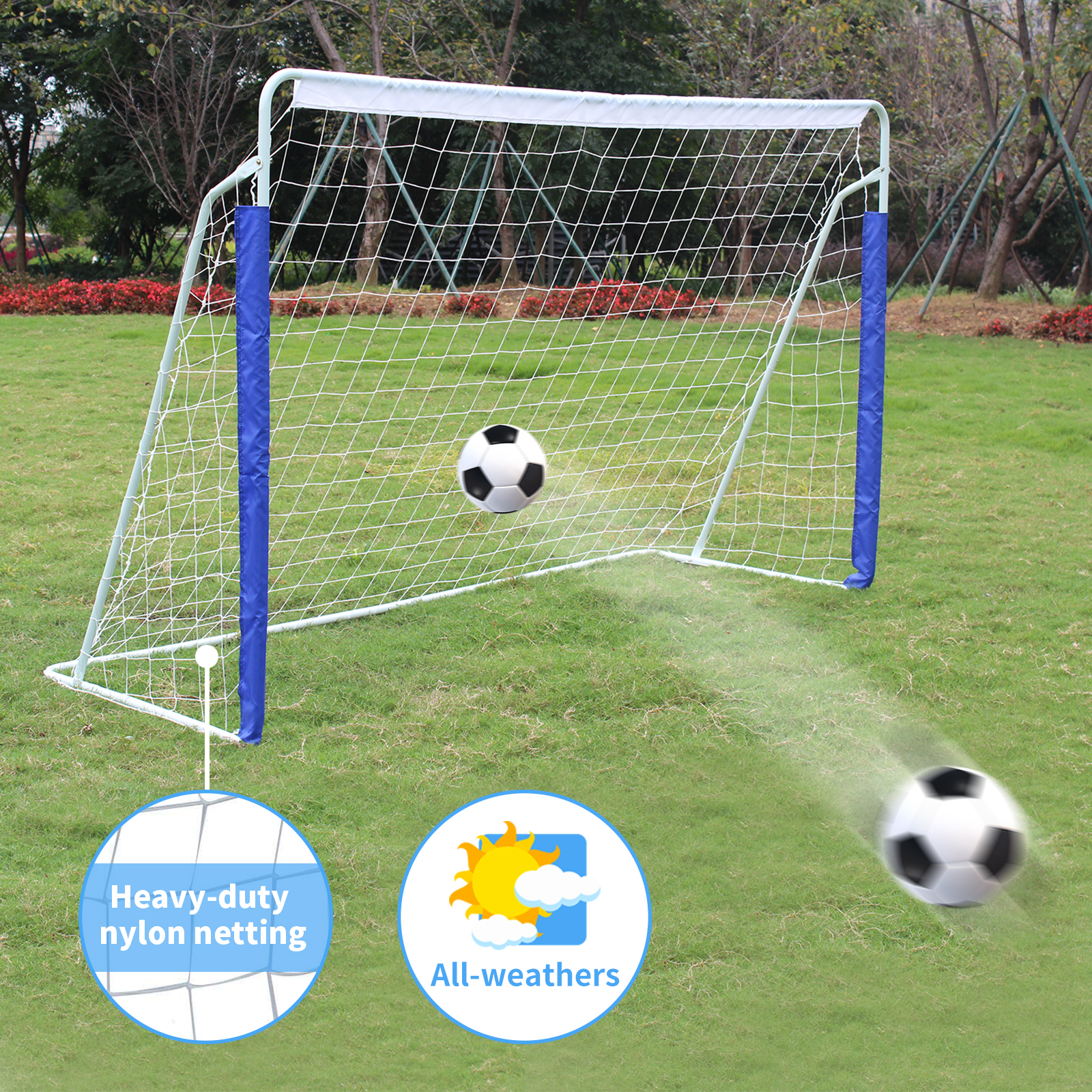8x5英尺便携式足球门 快速弹出折叠 含携行包 带金属底座 户外室内两用 儿童成人训练射门网 蓝色
