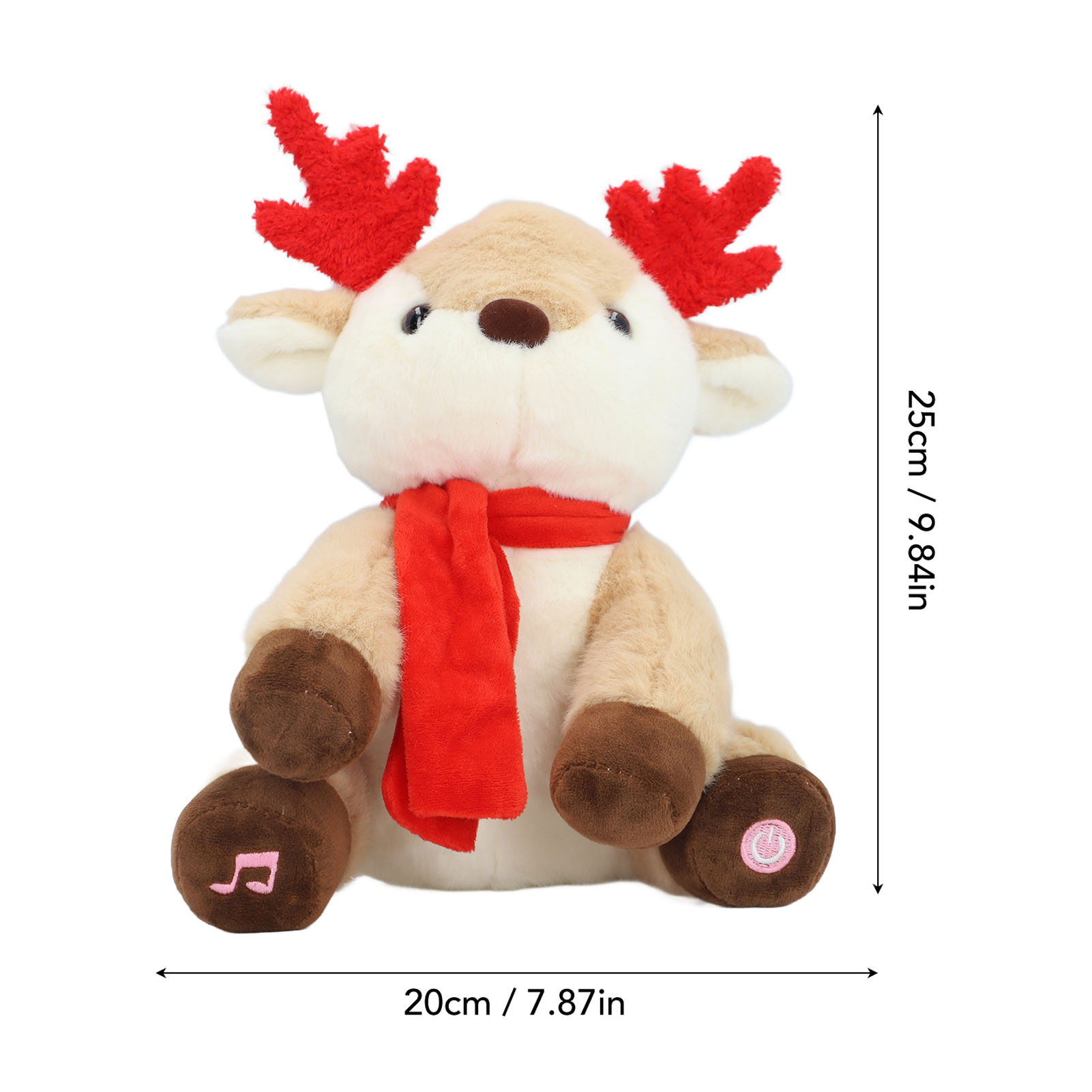 Light Up and Singing Christmas Plush Reindeer Toy, Musical Animated Stuffed Animal for Kids, Xmas Decor with Songs & Lights for Home Desk (25cm, Requires 2 AA Batteries)