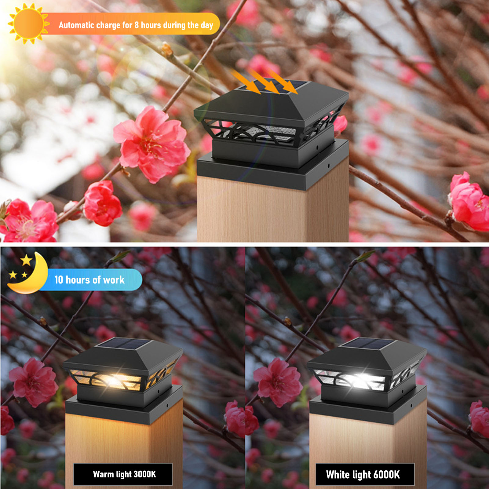 太阳能柱头灯 IP65防水庭院栅栏灯 双色温木桩围墙灯 别墅花园户外装饰灯 自动感应