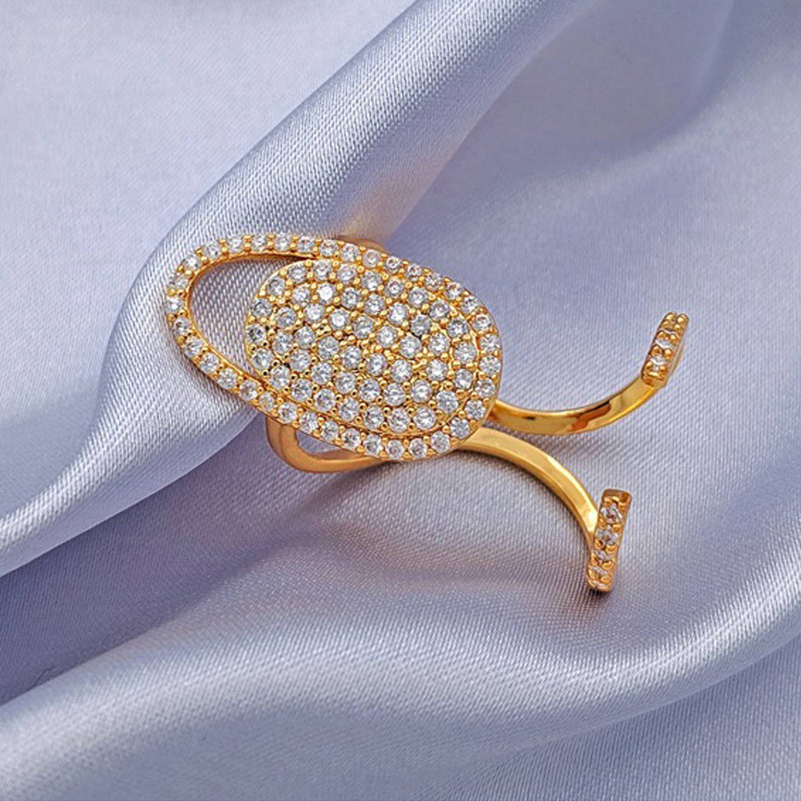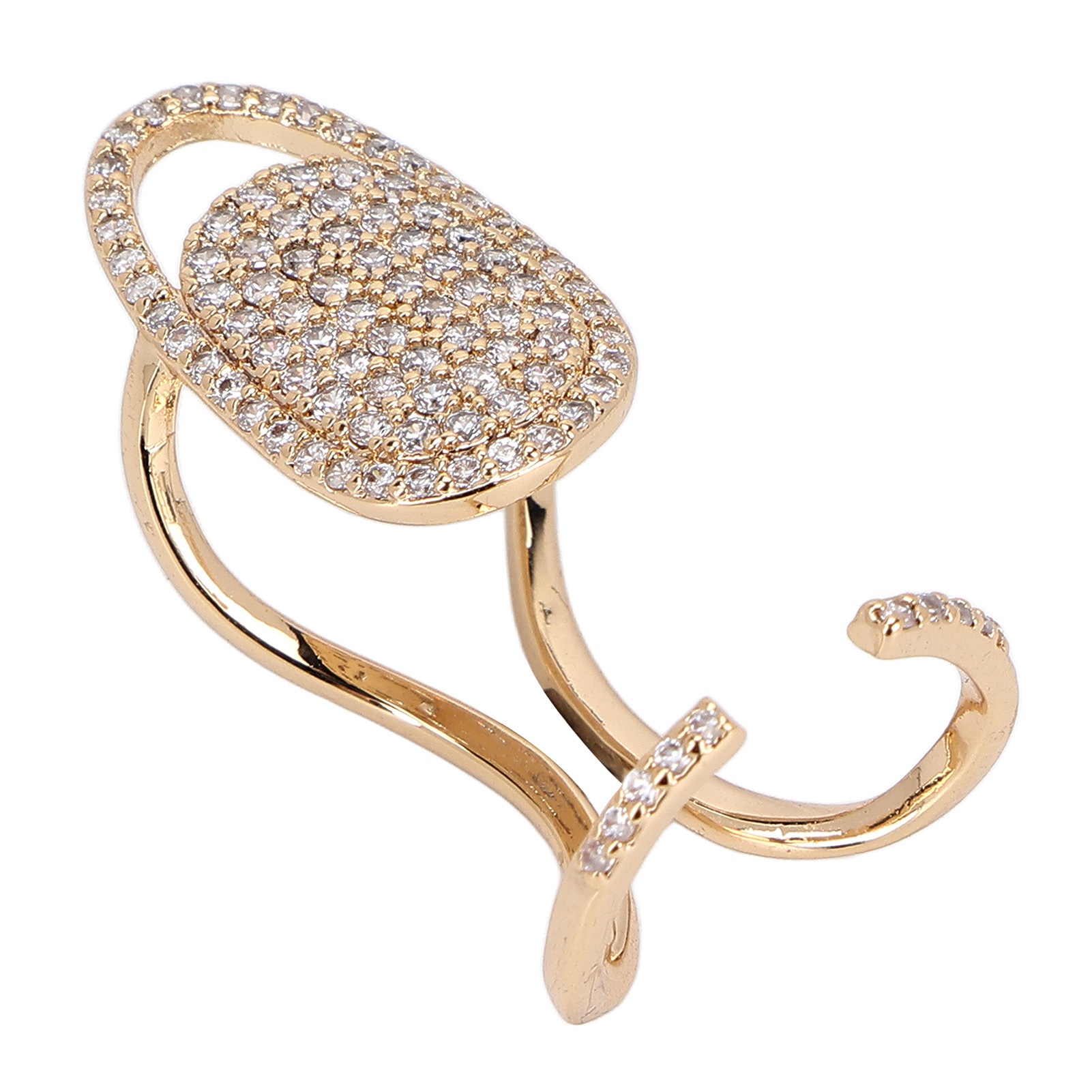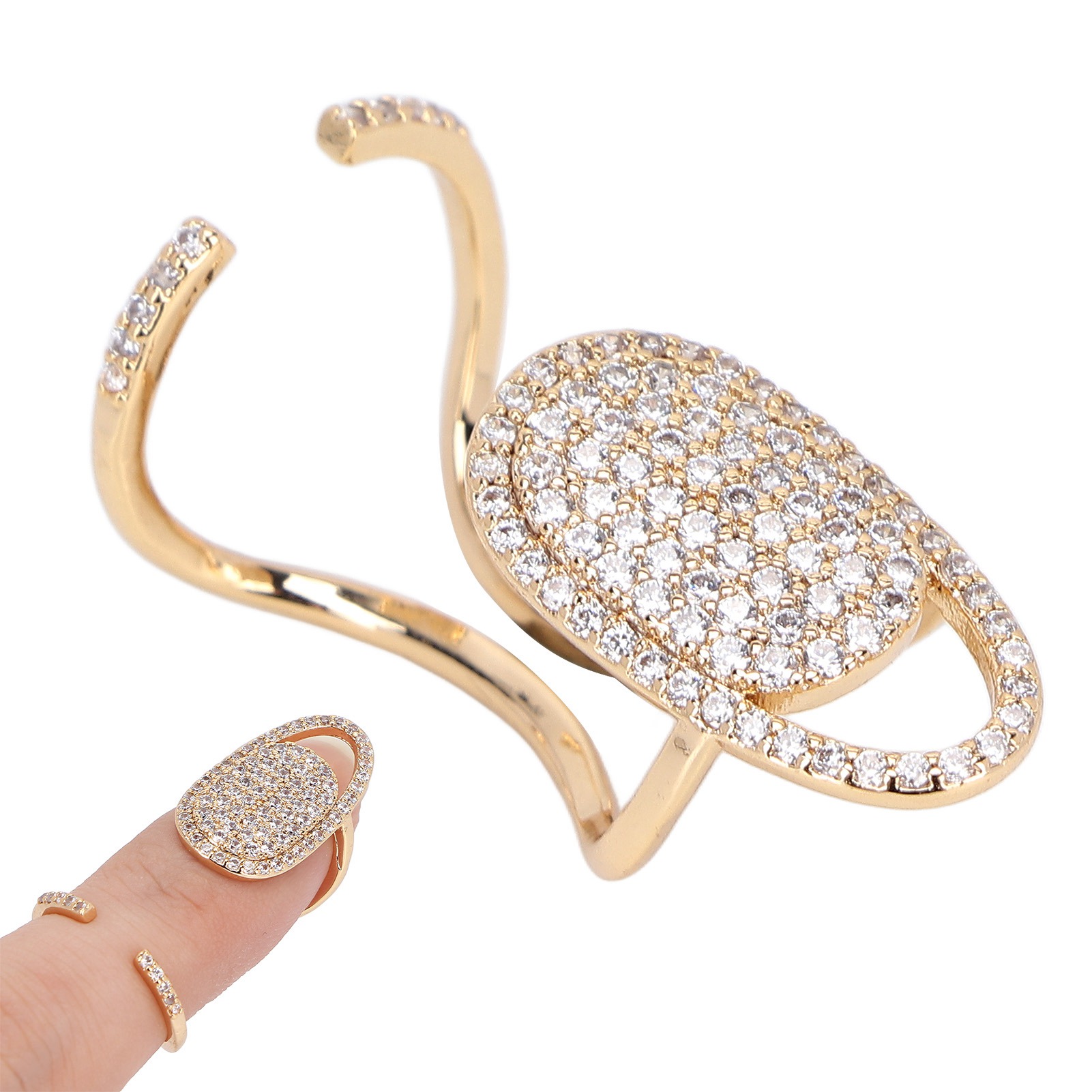 Adjustable Nail Ring with Rhinestones, Nickel Free Silver Plated Copper Finger Chain Jewelry for Women, Elegant Nail Finger Cuff for Parties Festivals Daily Wear (1PC)