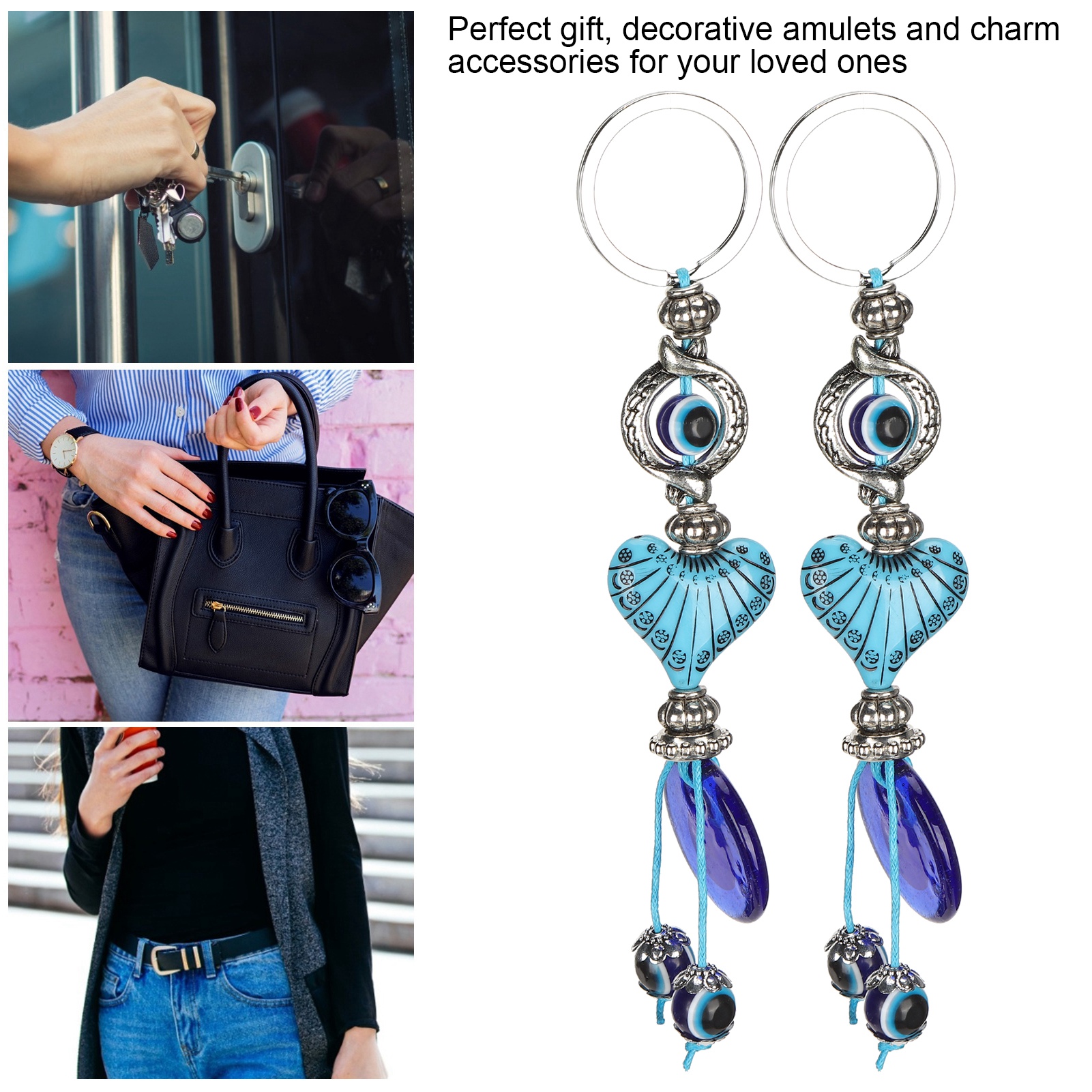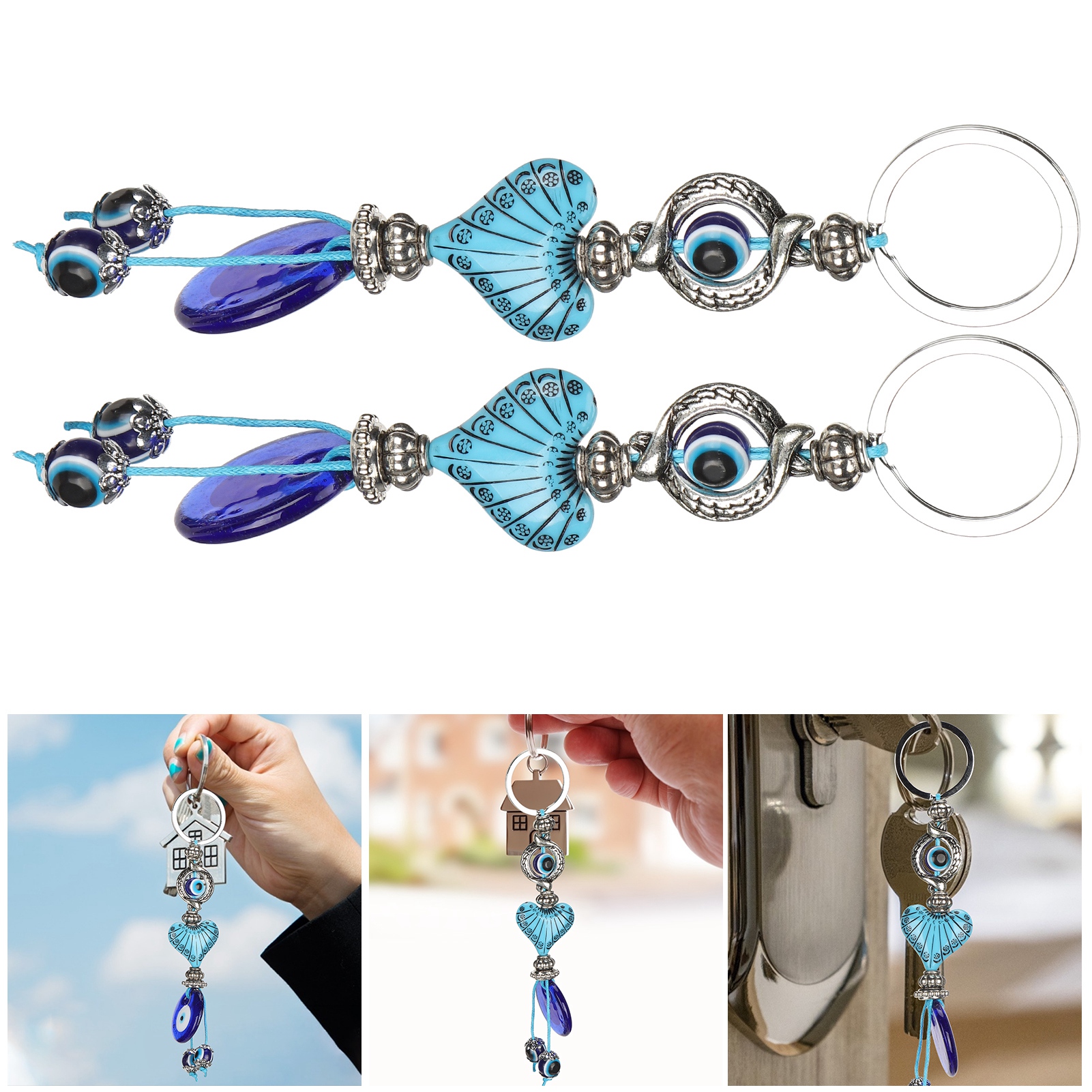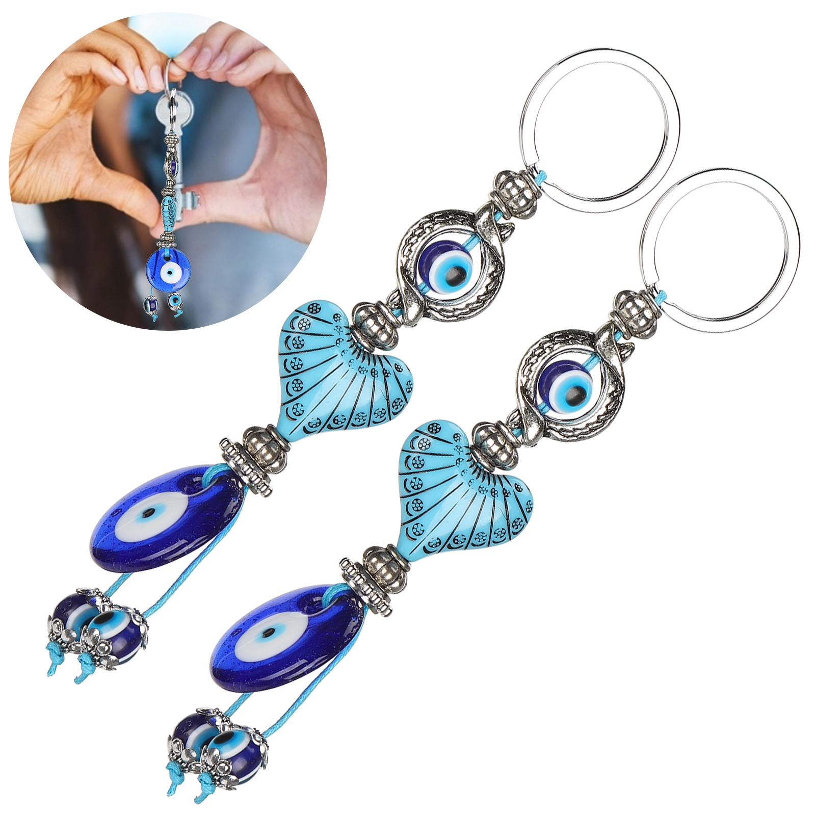 Turkish Evil Eye Keychain, Nazar Boncugu Protection Charm 2-Pack, Blue Glass Alloy Key Ring for Purse Bag, Good Luck Gift for Home Car, Ward Off Negative Energy
