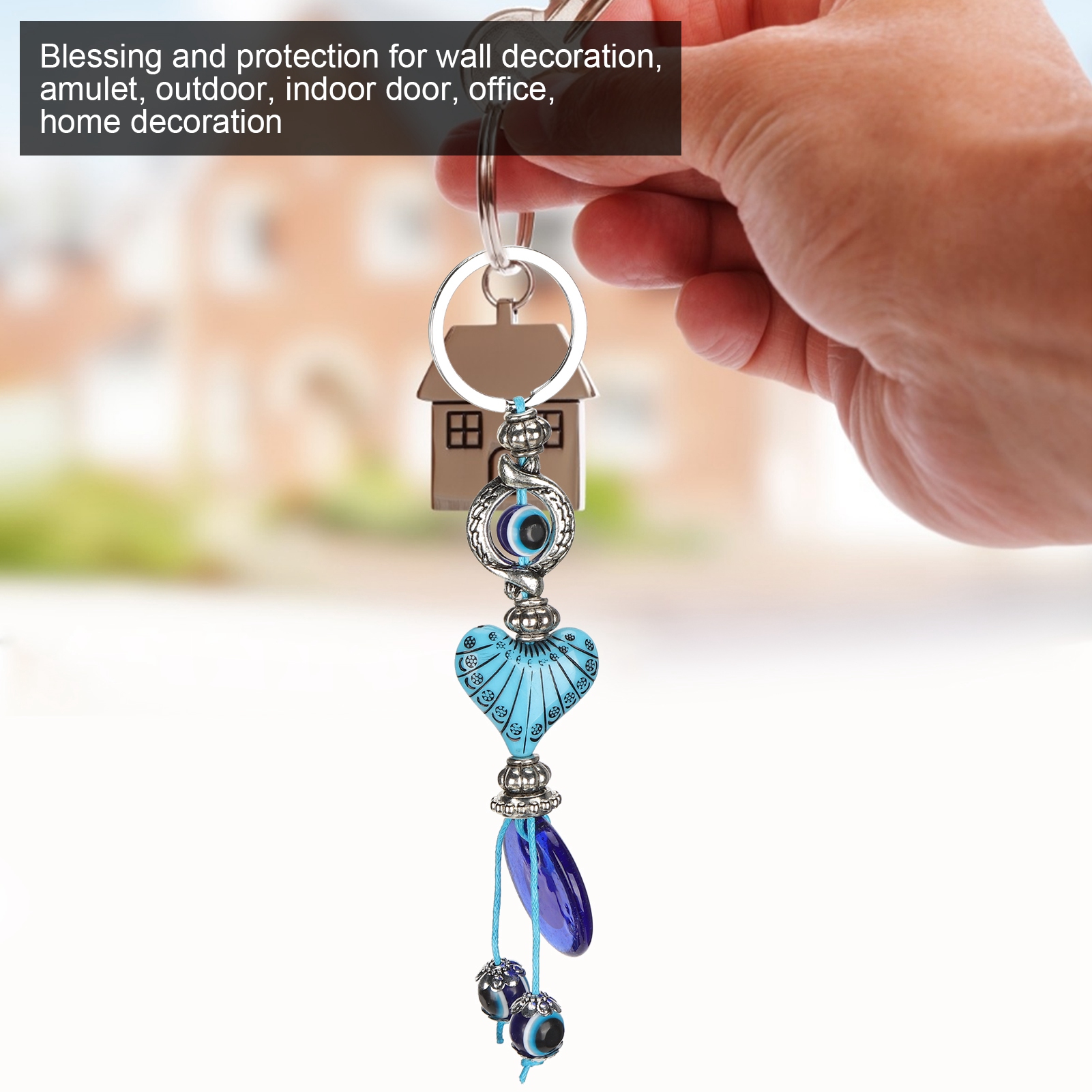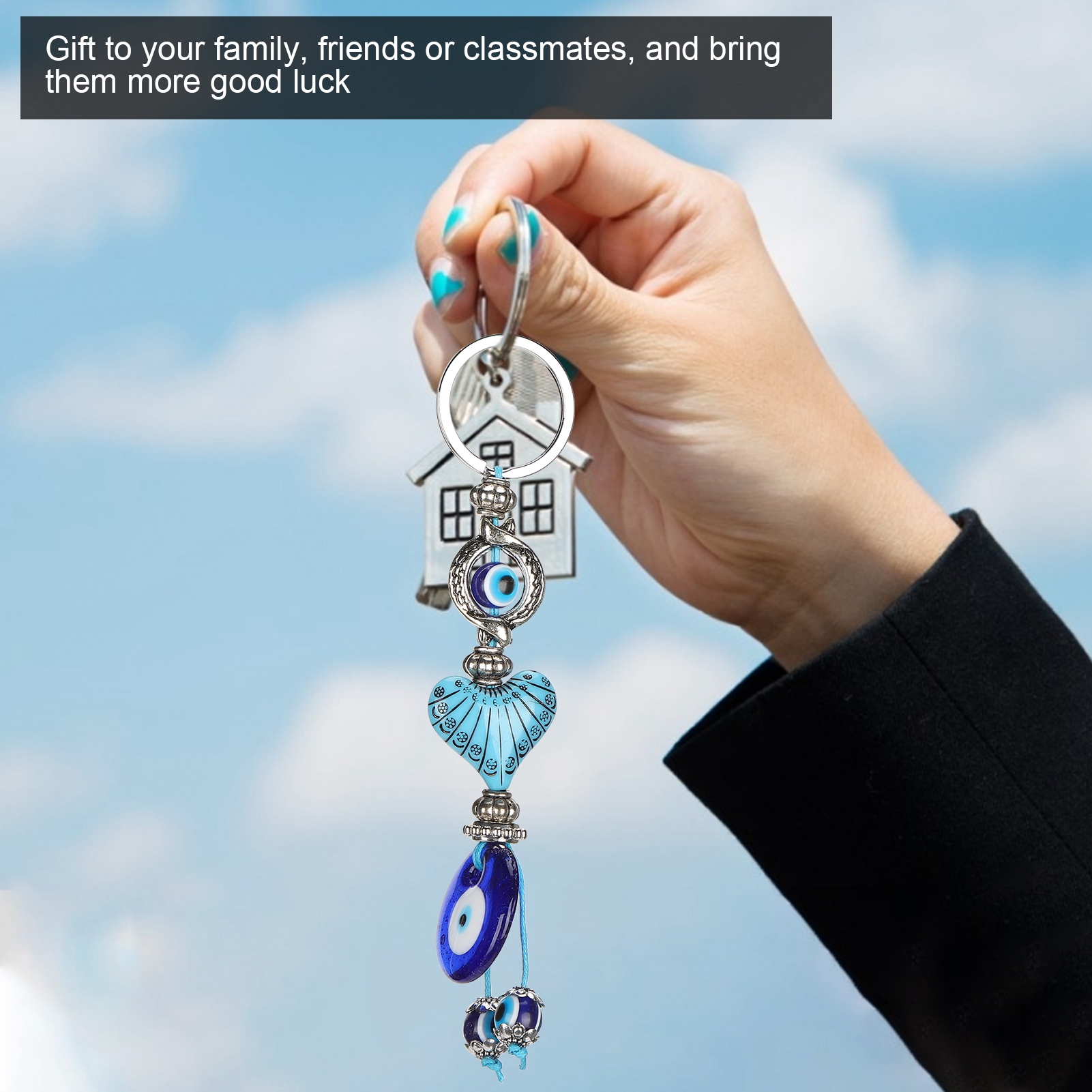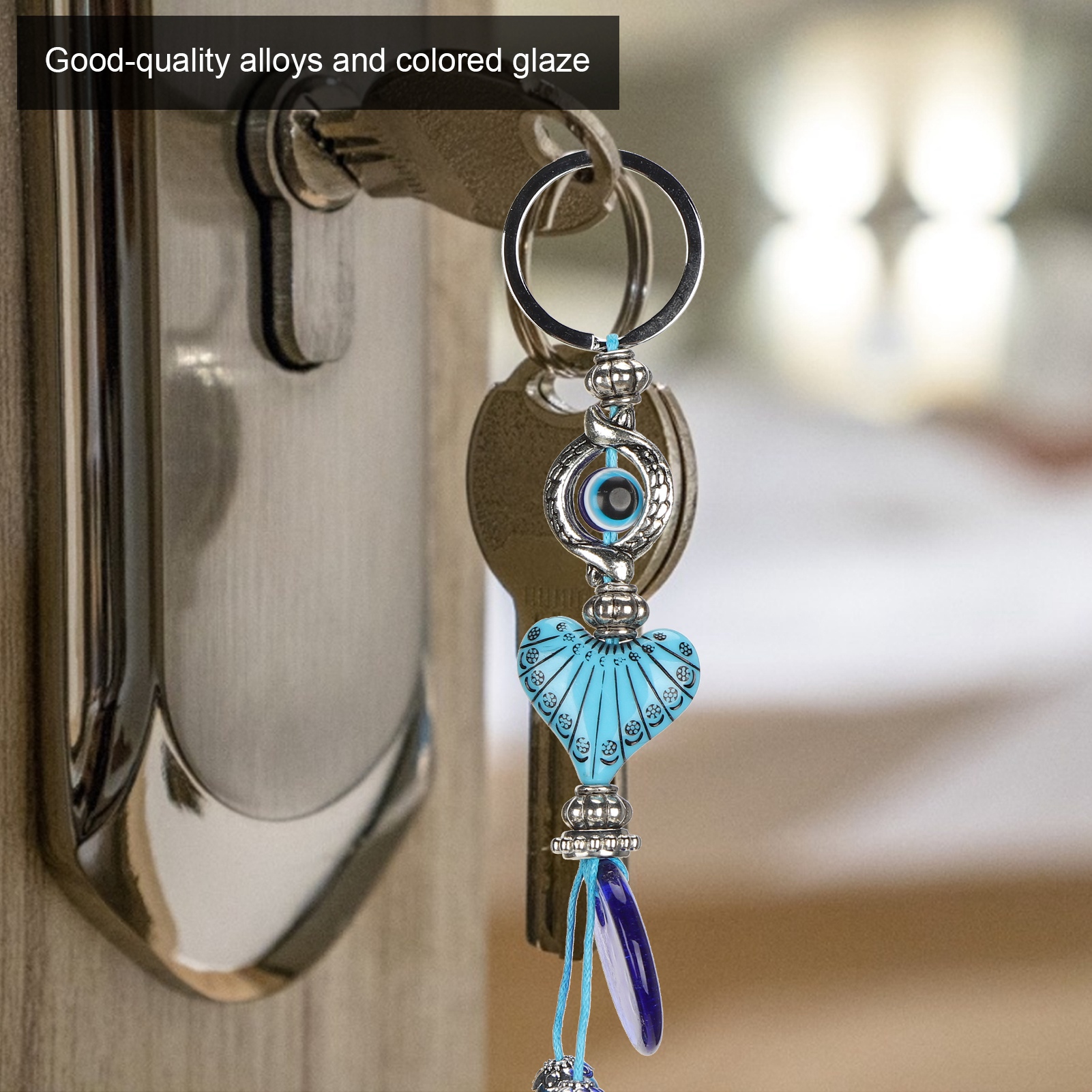Turkish Evil Eye Keychain, Nazar Boncugu Protection Charm 2-Pack, Blue Glass Alloy Key Ring for Purse Bag, Good Luck Gift for Home Car, Ward Off Negative Energy