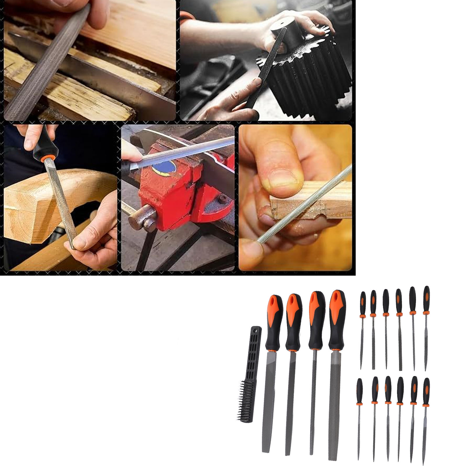 17-Piece Metal File Set, T12 High Carbon Steel - Professional Rasp & 12 Needle Files for Sharpening, Deburring, Woodworking with Storage Case
