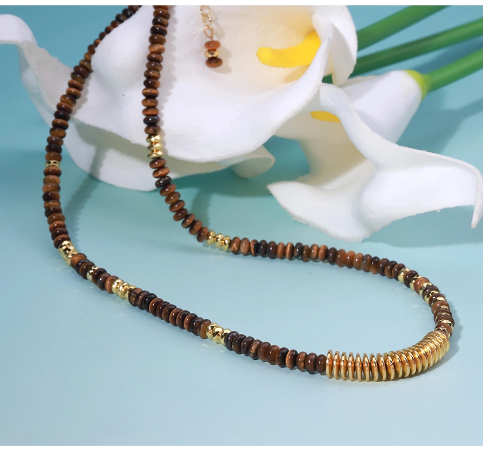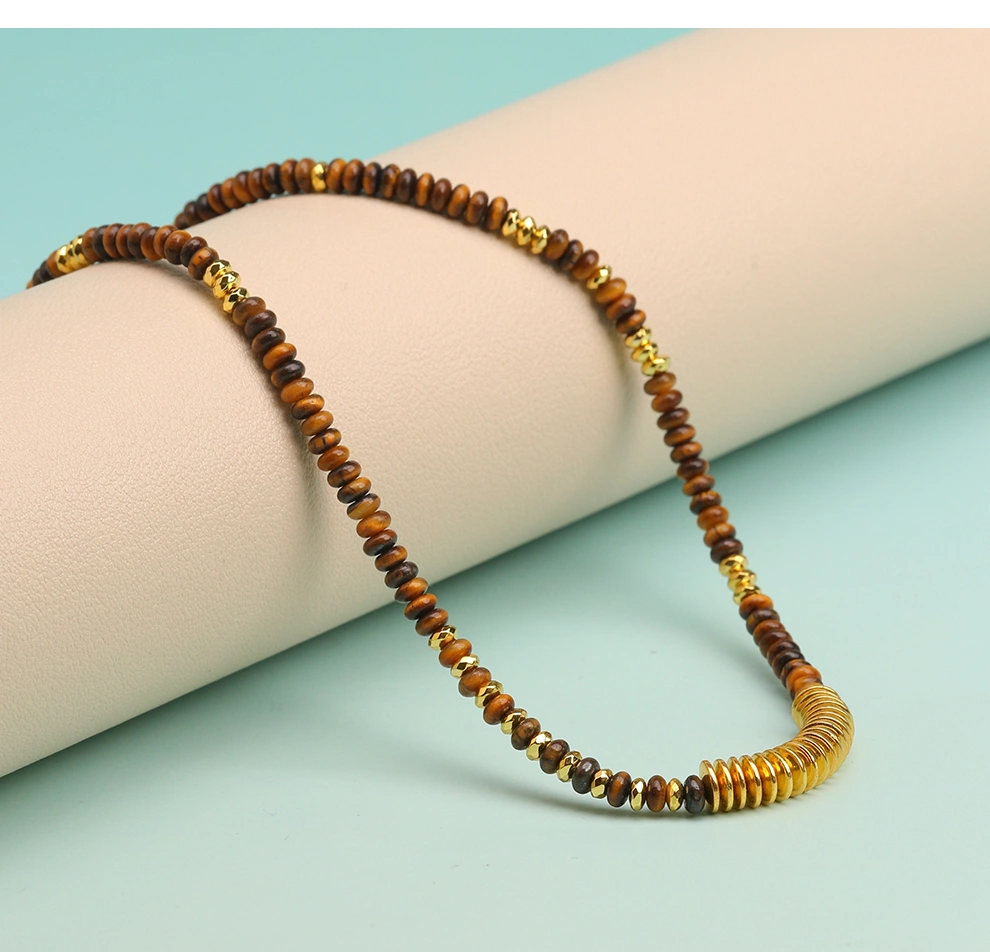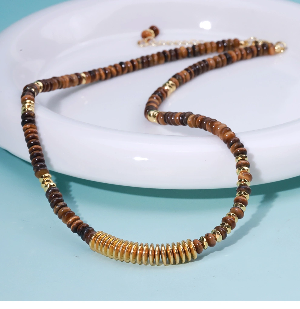 ✦ Earthy Brown Tiger Eye Gemstones ✦ Gold-Tone Beaded Elegance ✦ German-Minimalist Daily Wear