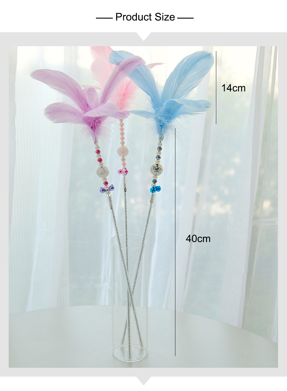 ・Feathers: Resilient PP cotton feathers, soft and bite-resistant (≥12 strands per wand)