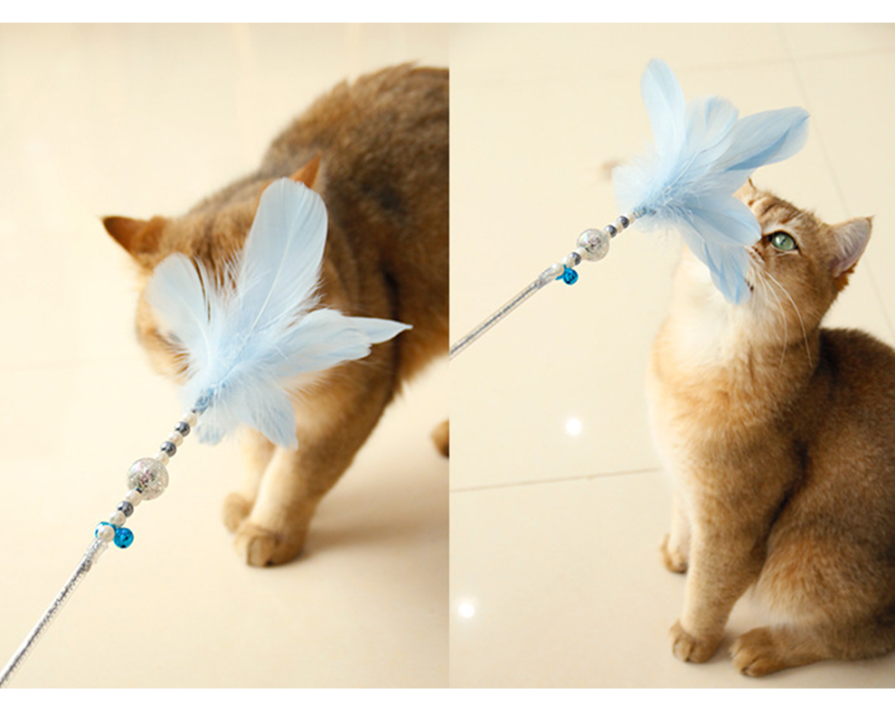 ✓ Apartment play: Gentle waving triggers pouncing via feather movement + bell sound