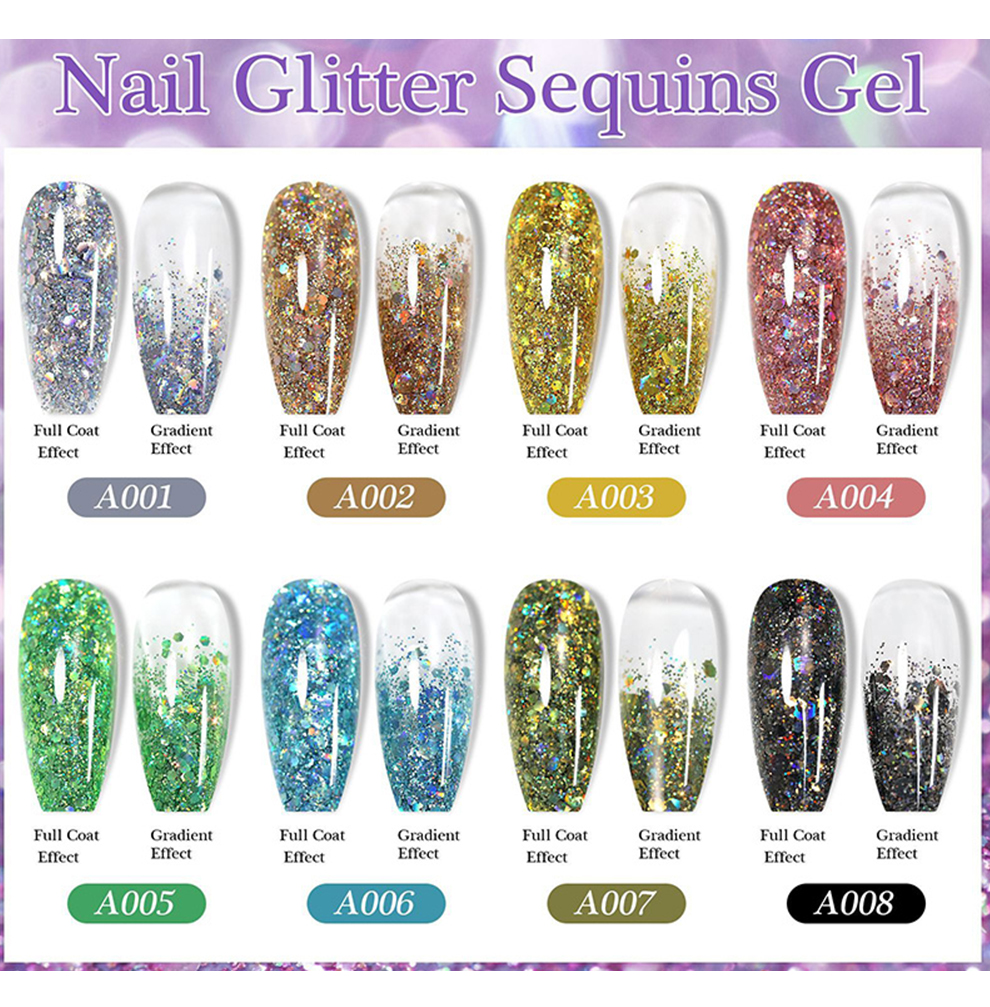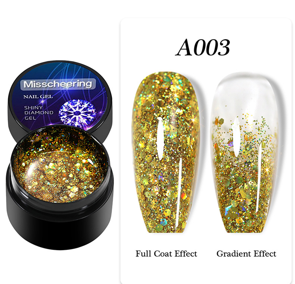 → A003 Gold Sand: Gold diamonds + iridescent flakes|Full: Luxe gold dust|Gradient: Sunbeam