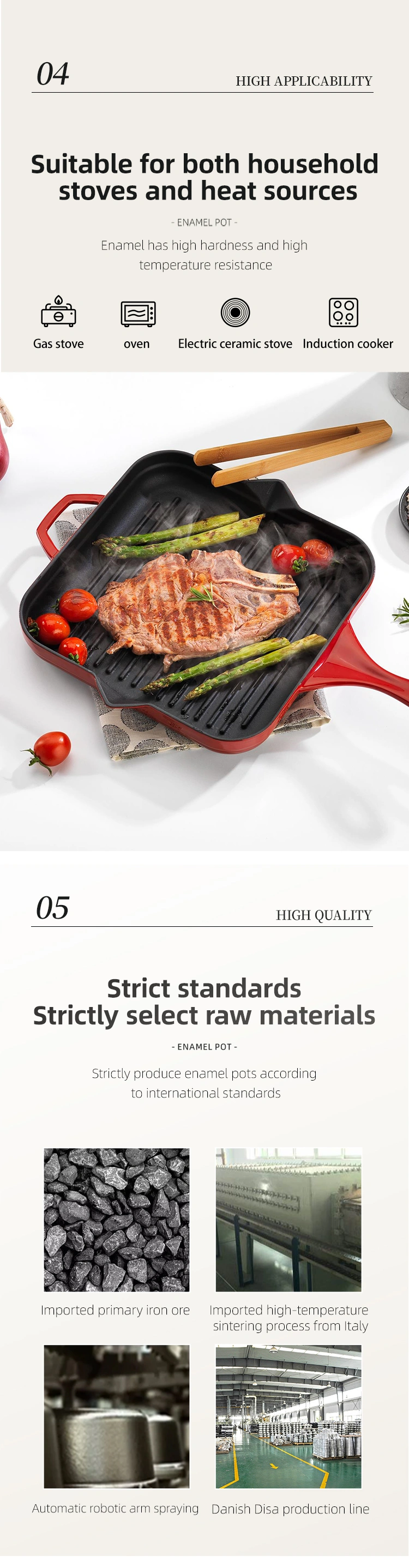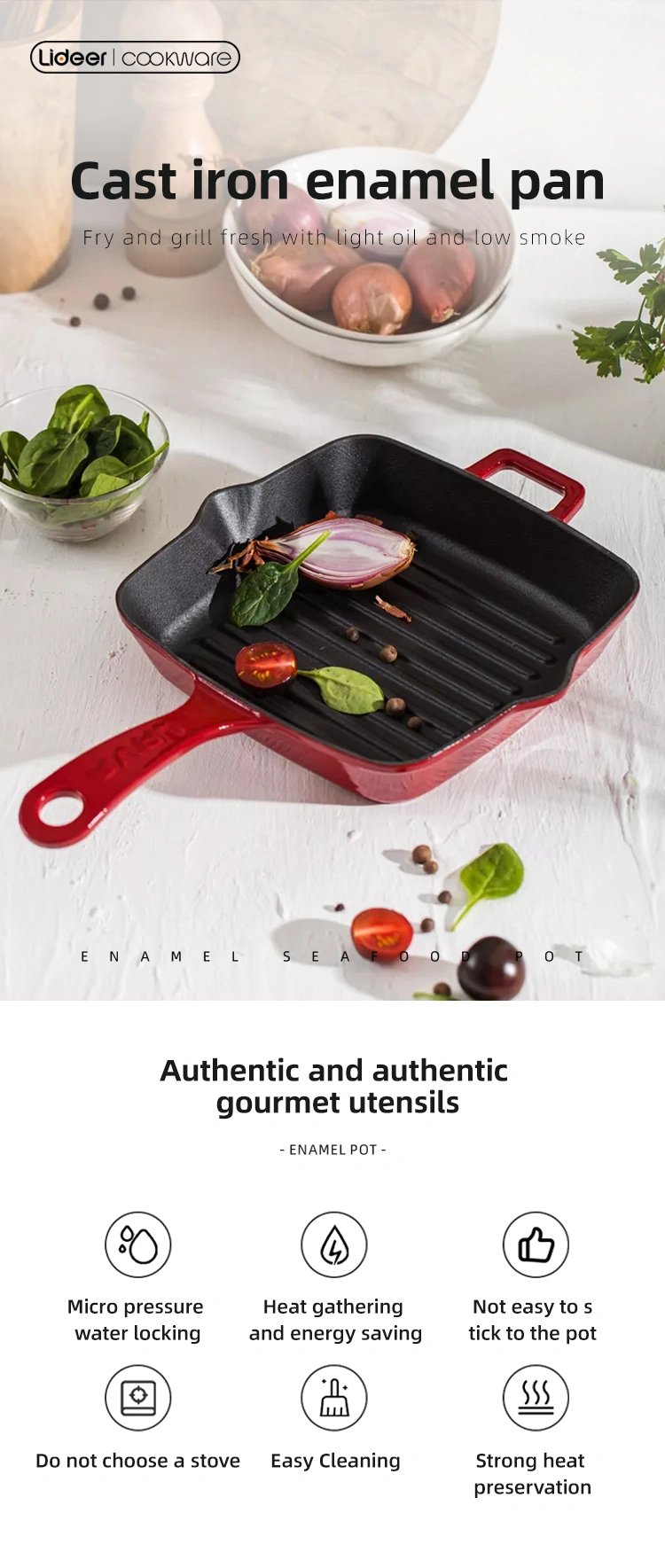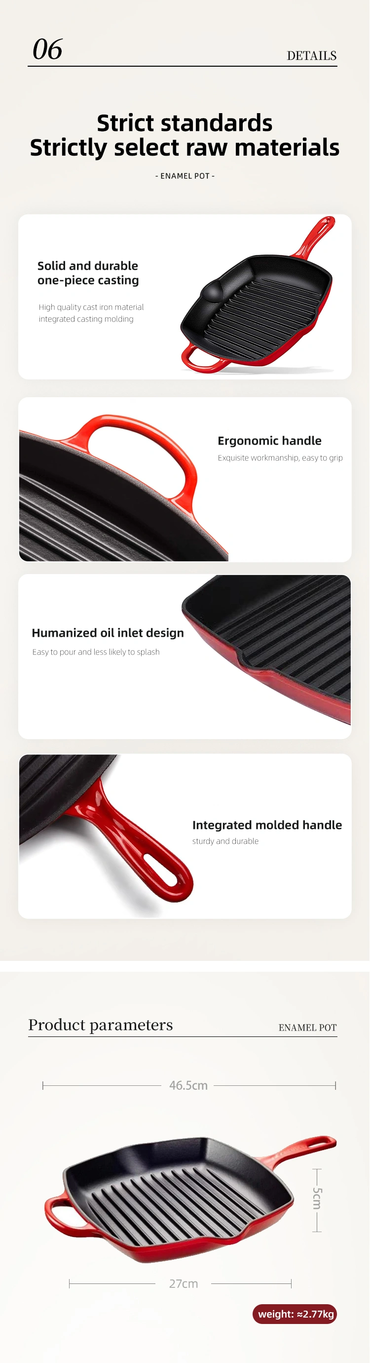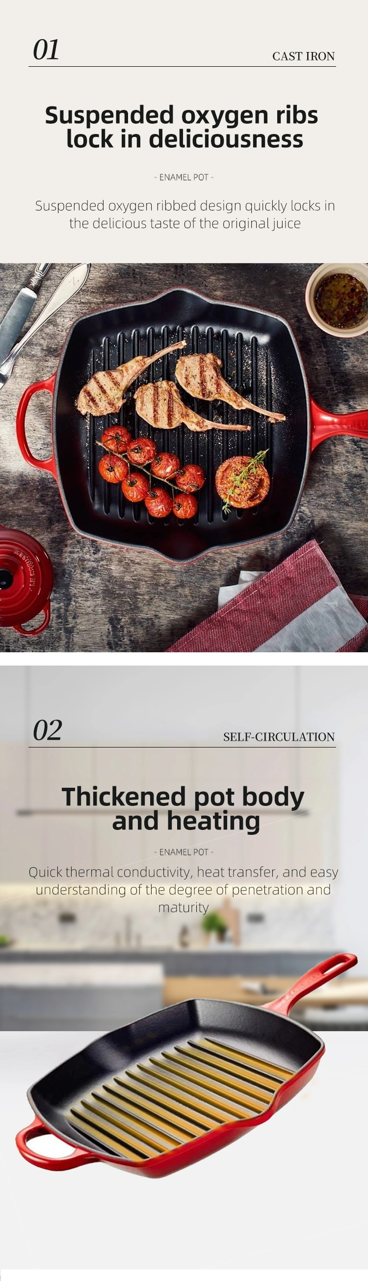 Forged in thick cast iron with triple enamel layers (LFGB/FDA certified), this 27cm red square pan masters German steakhouse perfection from rare to "durch".