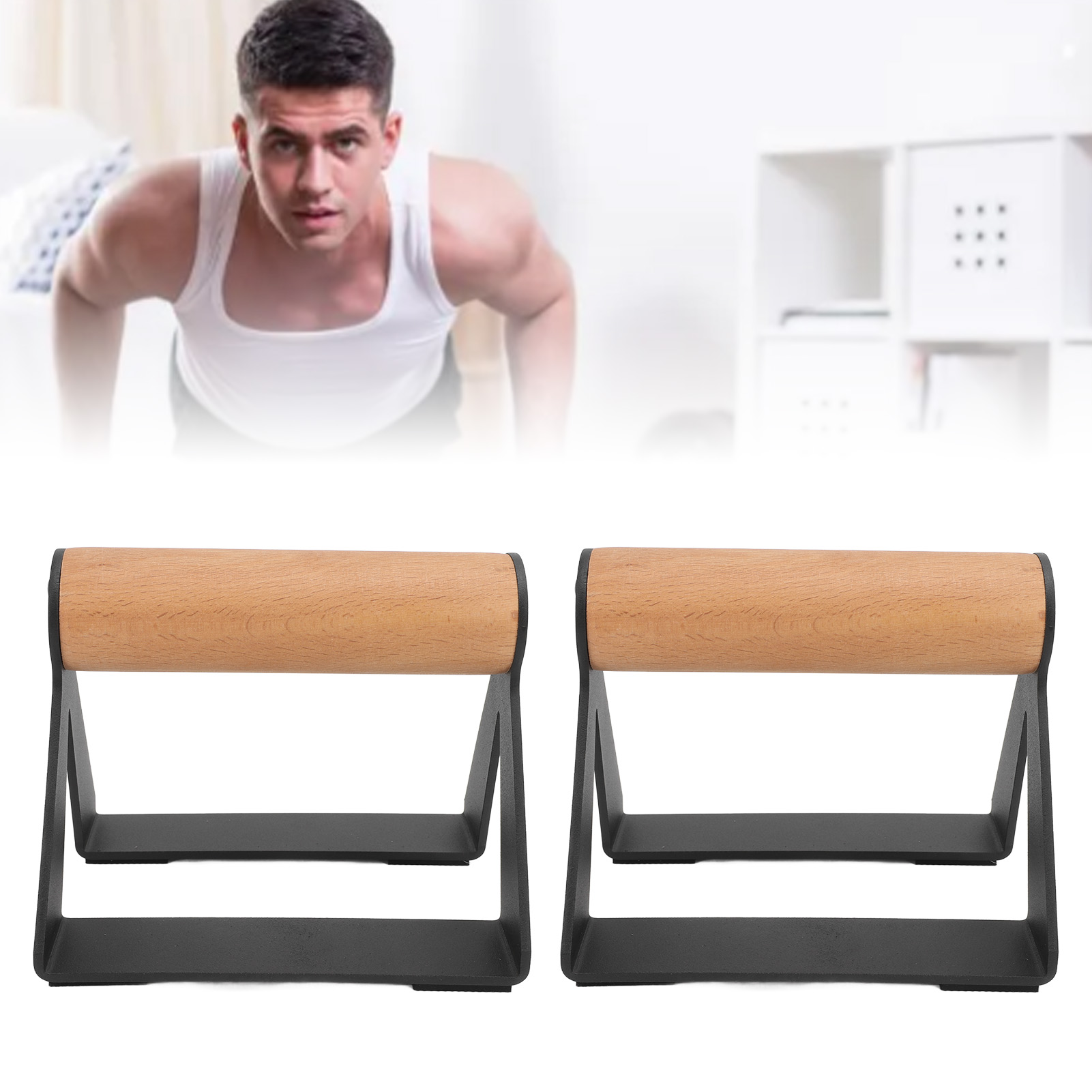 一对木制俯卧撑杆采用符合人体工程学的手柄和重型钢材防滑俯卧撑杆适用于体操和健身 YM2719240037411 G