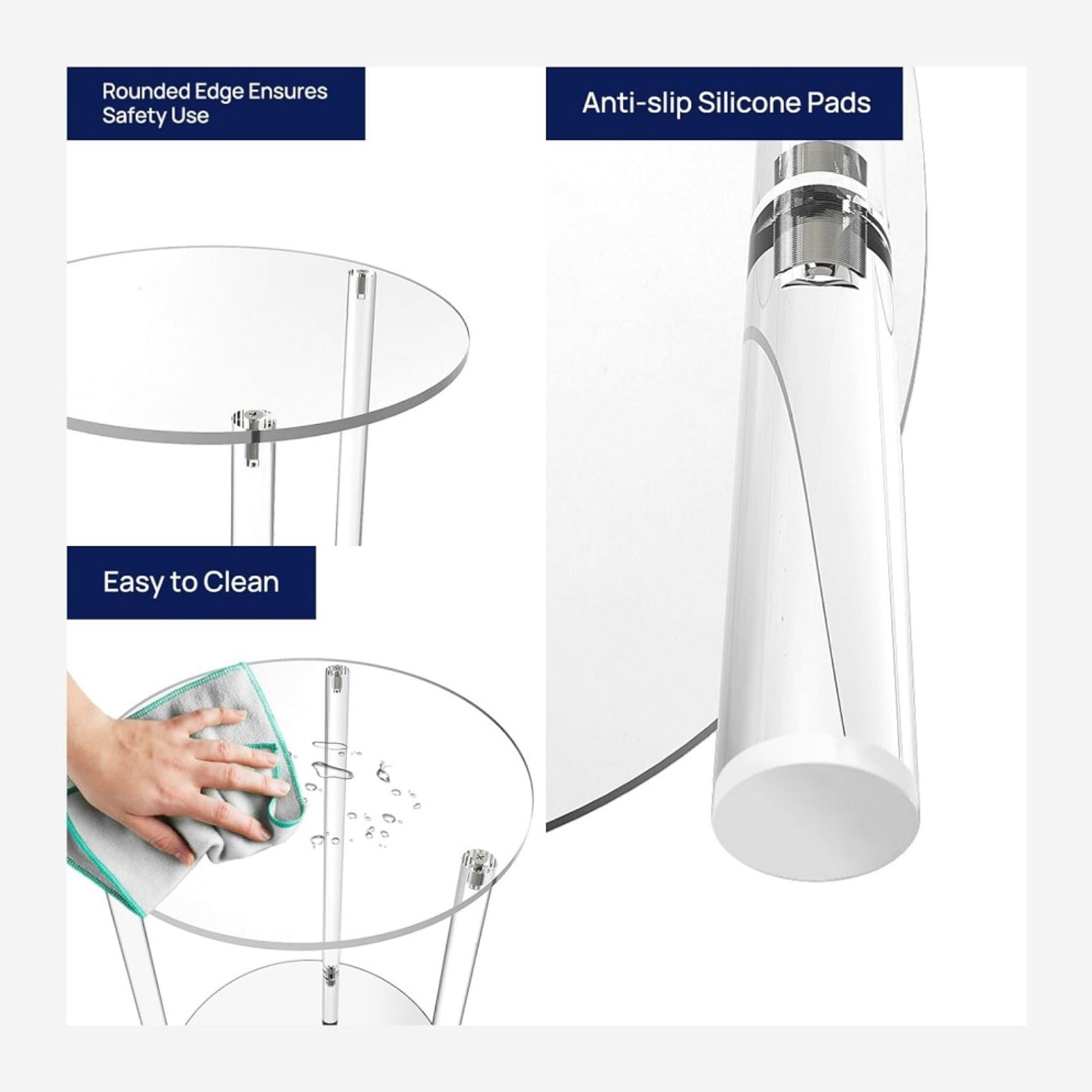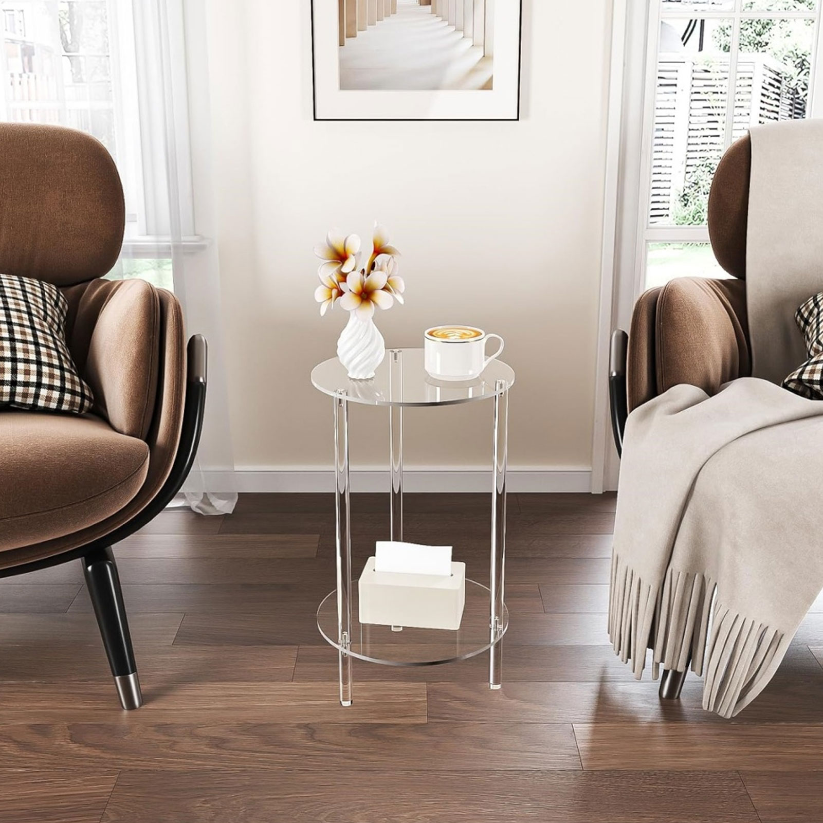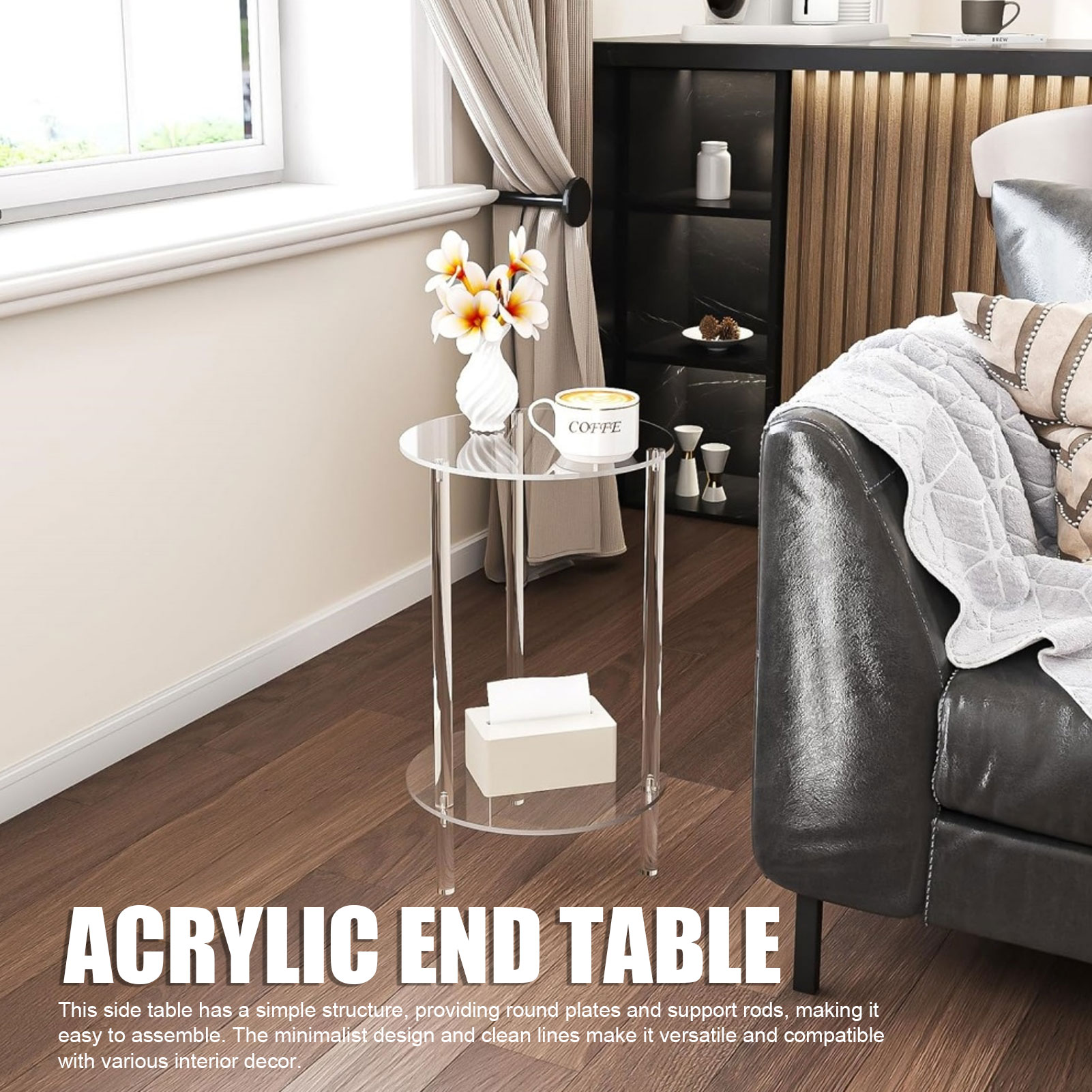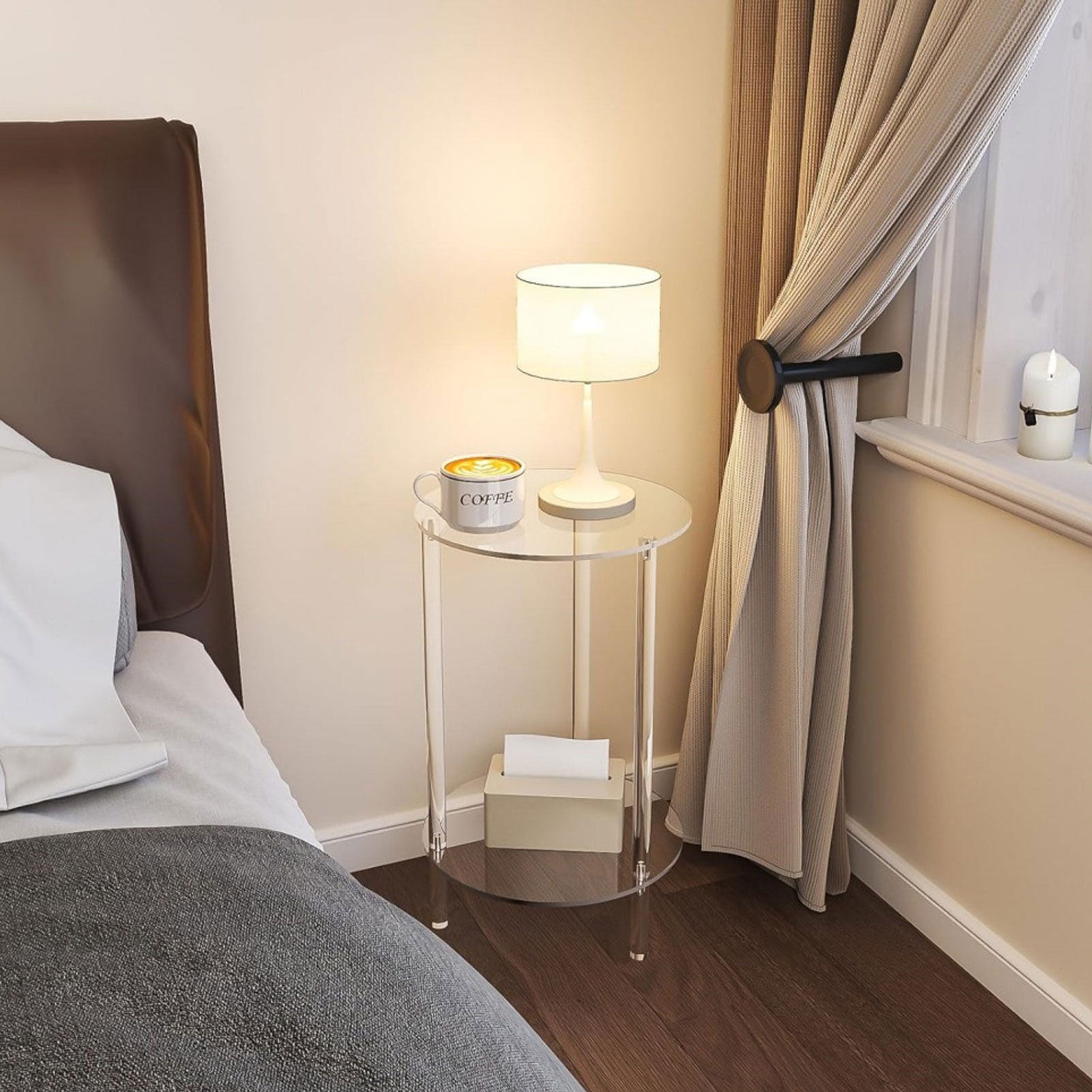 Clear Acrylic Side Table 2 Tier Round Top Nightstand Small Modern End Table for Living Room Bedroom Bedside