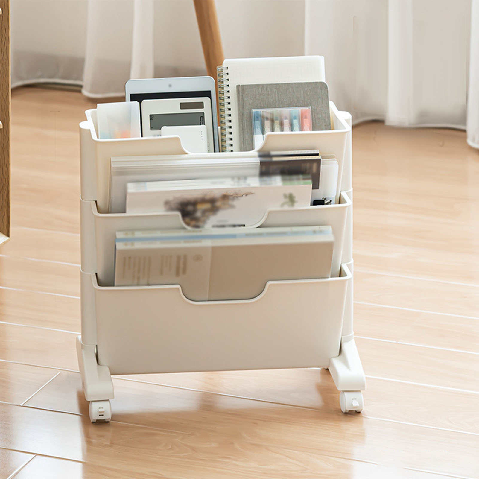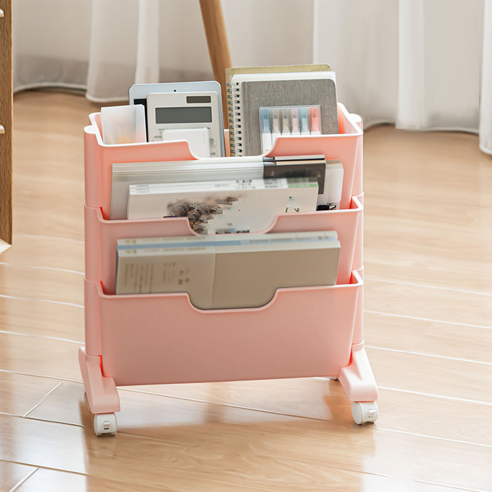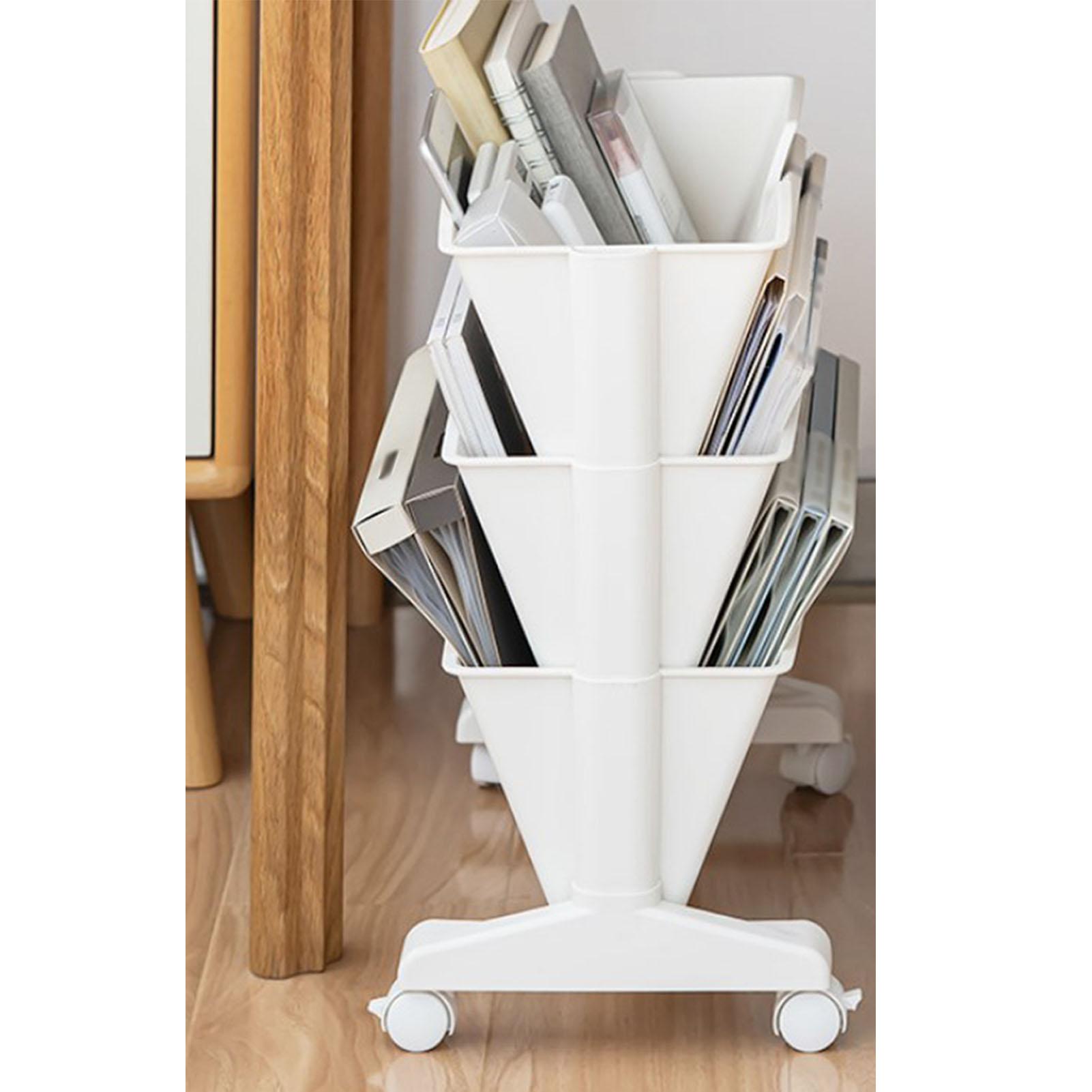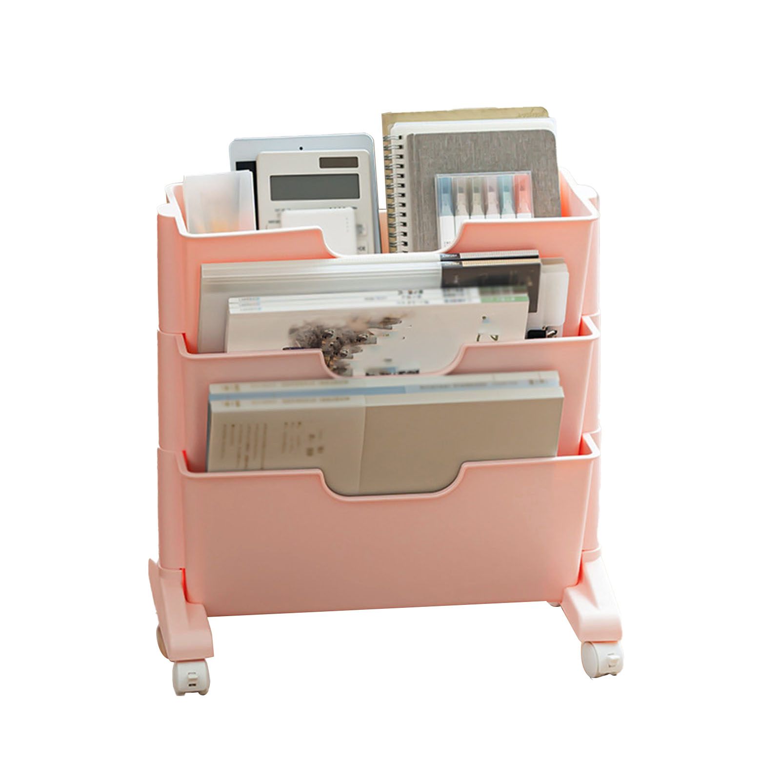 3 Tier Movable Bookshelf Removable Bookcase Plastic Rotatable Mobile Bookshelf for Bedroom Dormitory