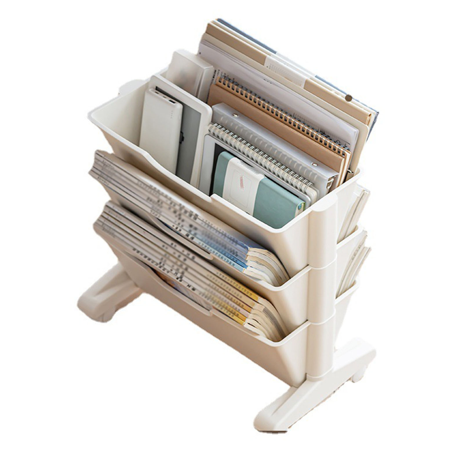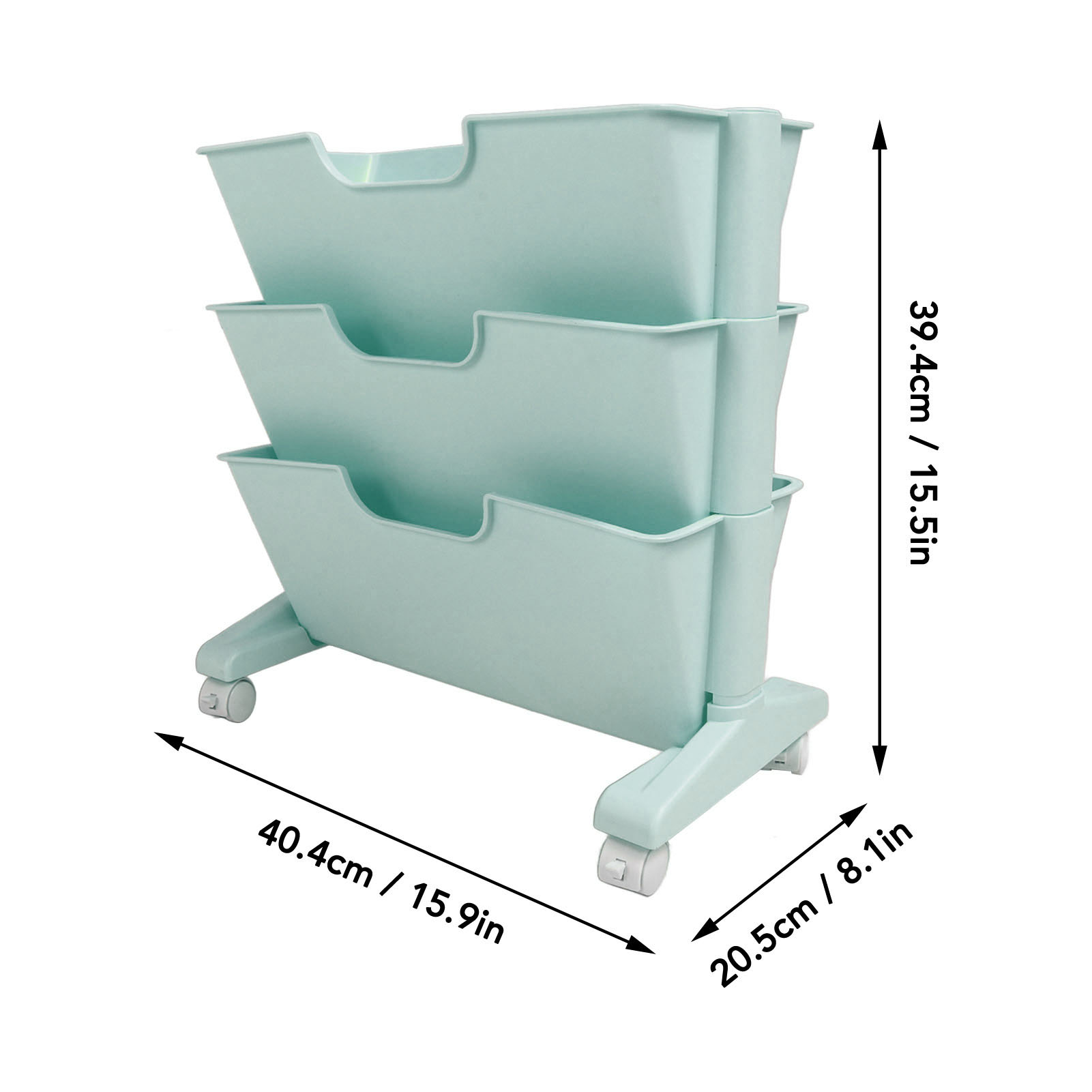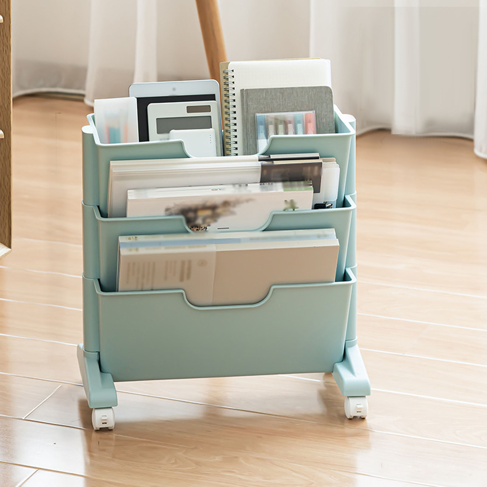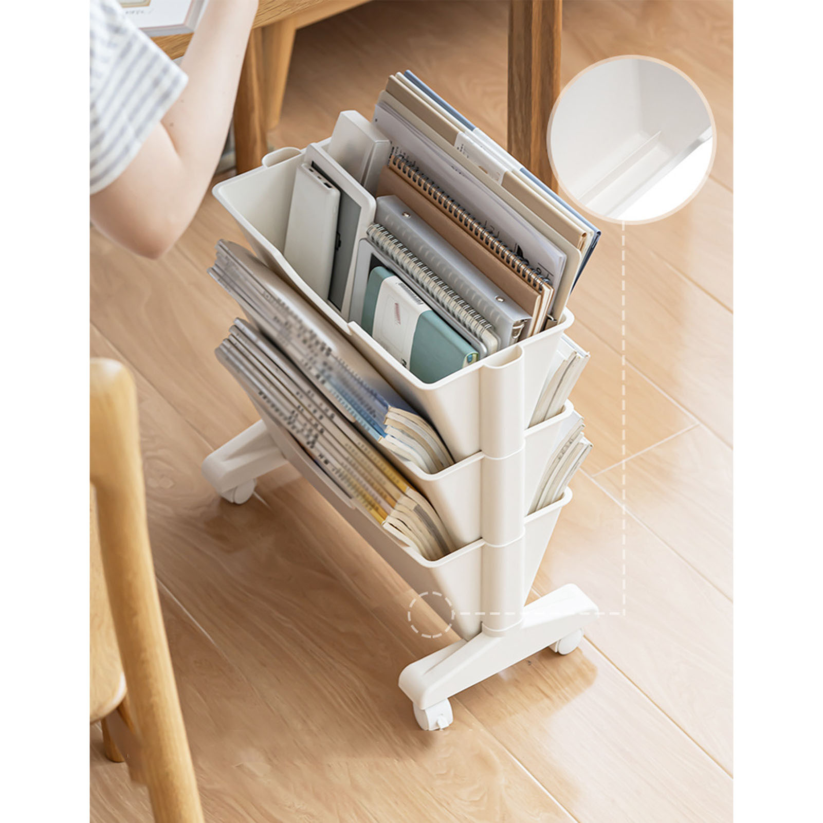 3 Tier Movable Bookshelf Removable Bookcase Plastic Rotatable Mobile Bookshelf for Bedroom Dormitory