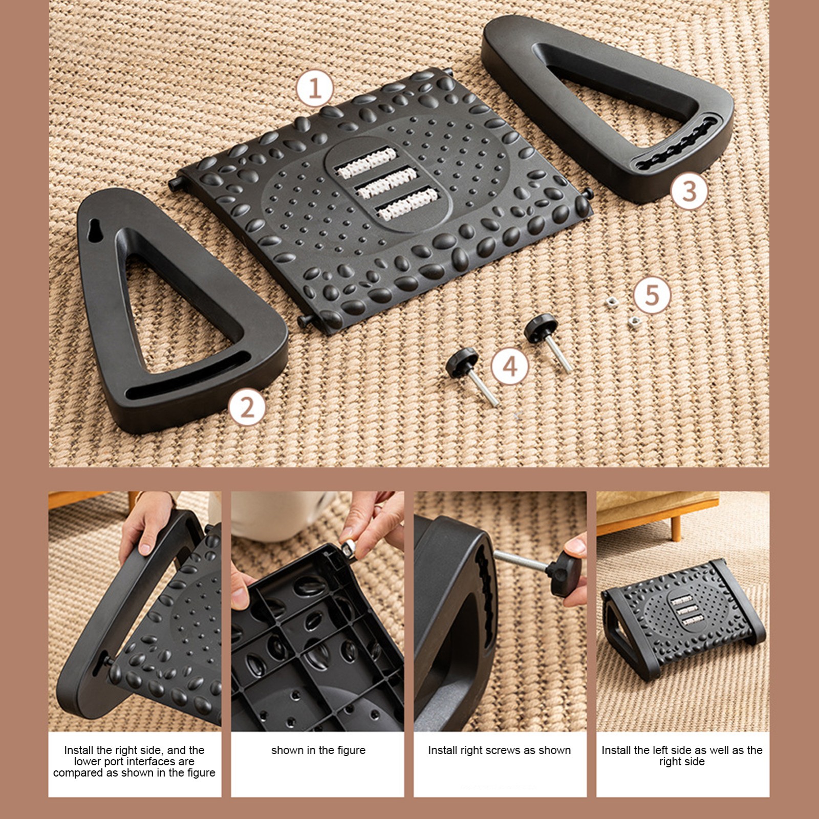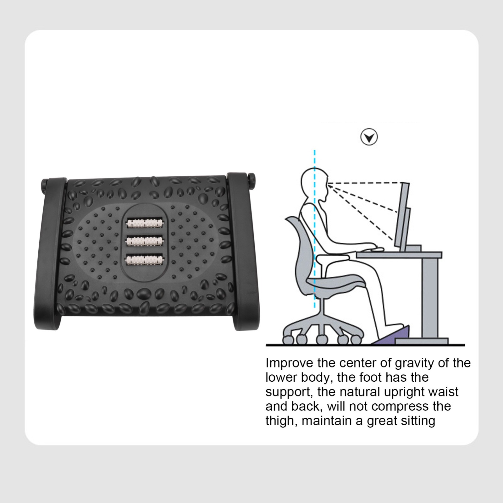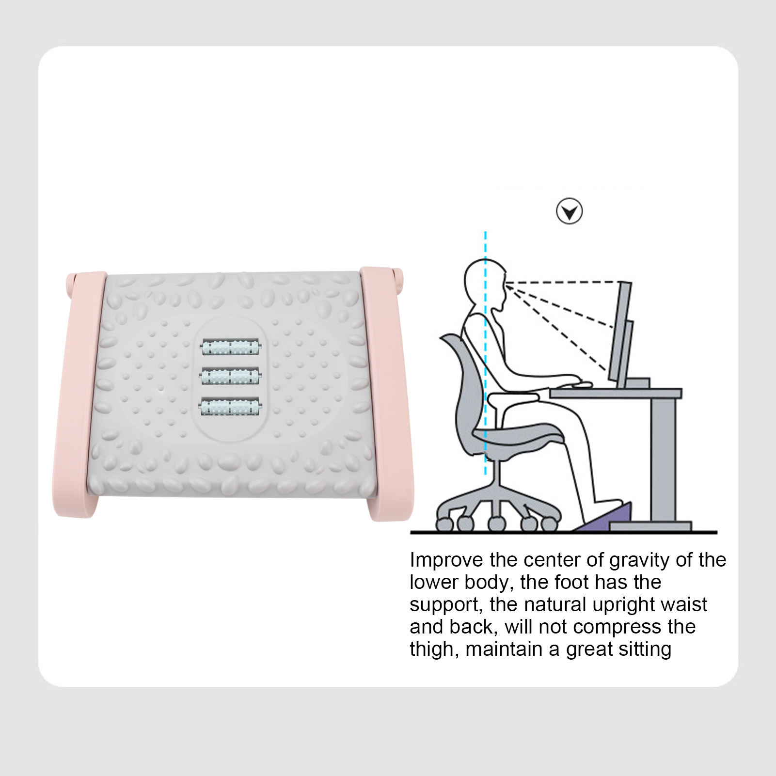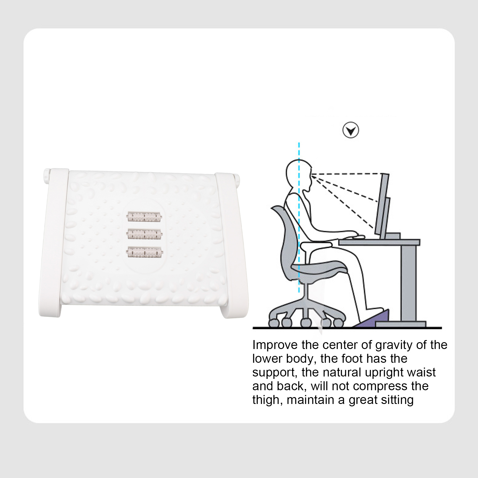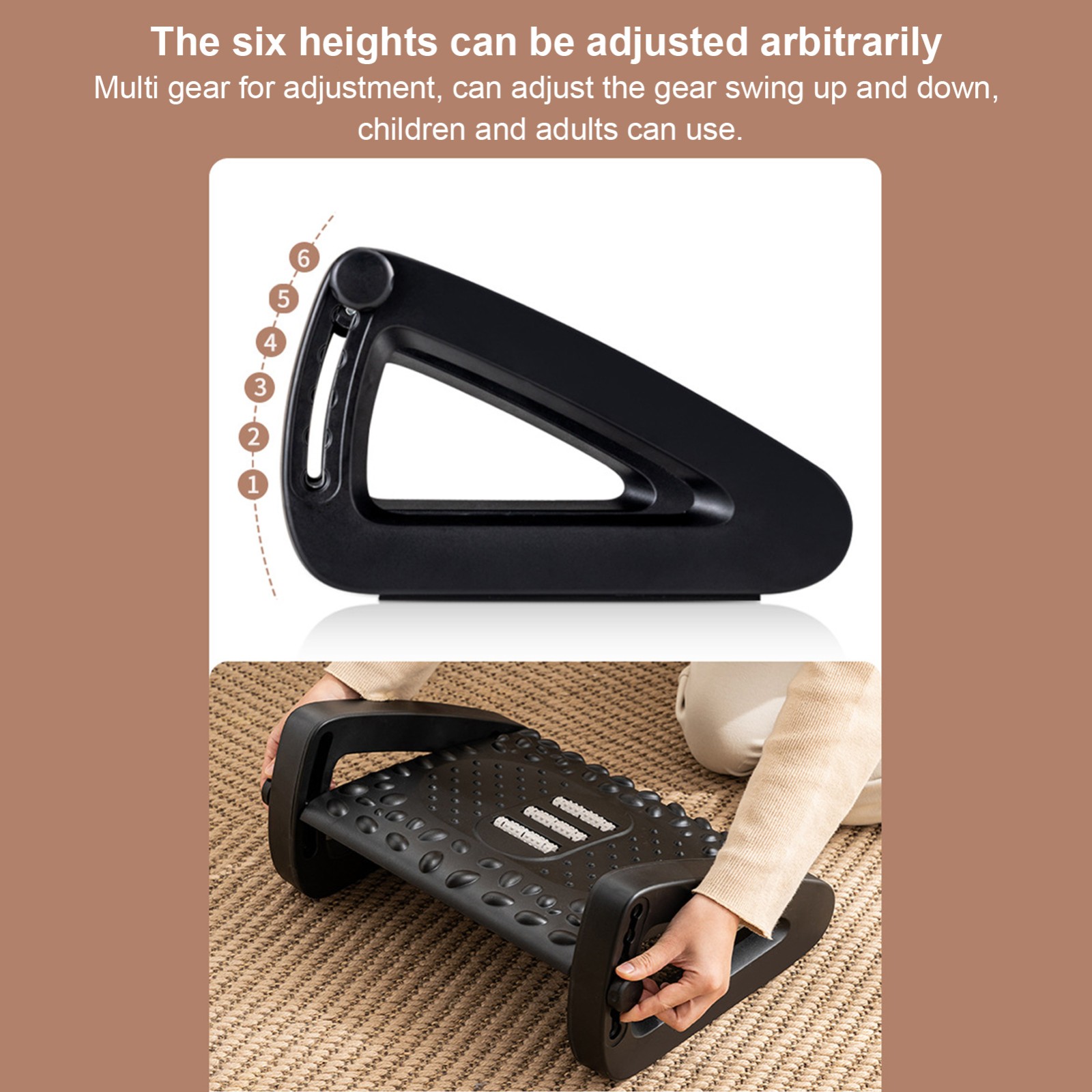 Under Desk Footrest 6 Height Adjustable Ergonomic Foot Stool with Massage Texture and Roller for Office