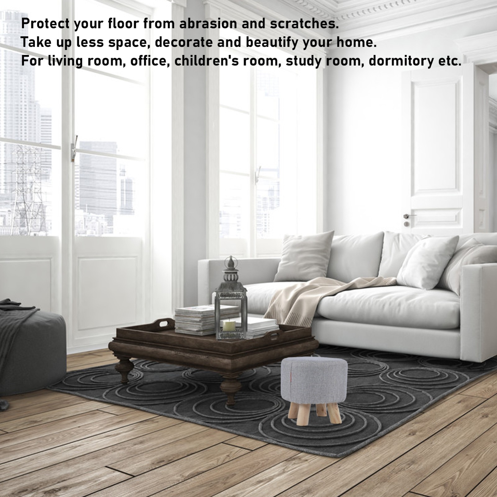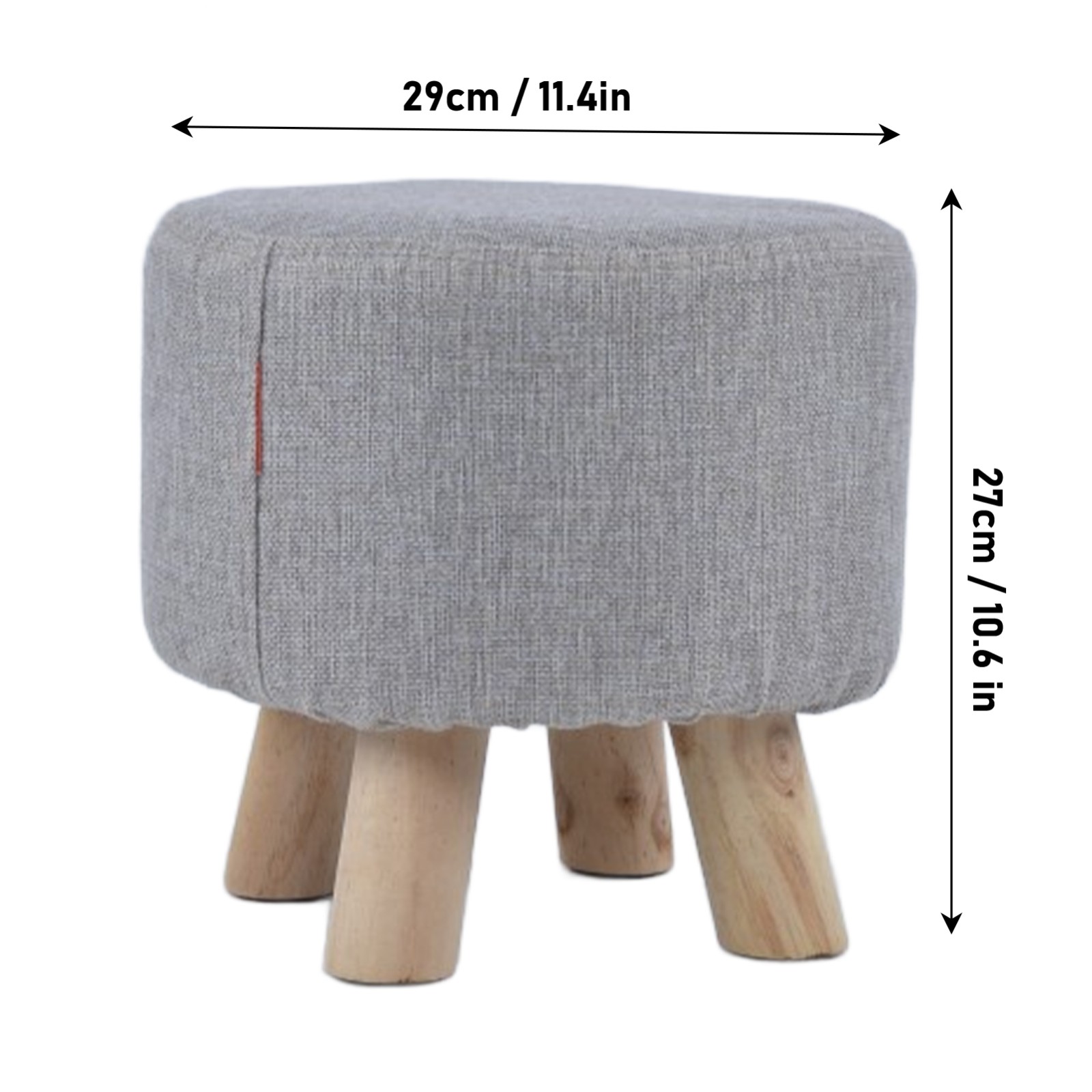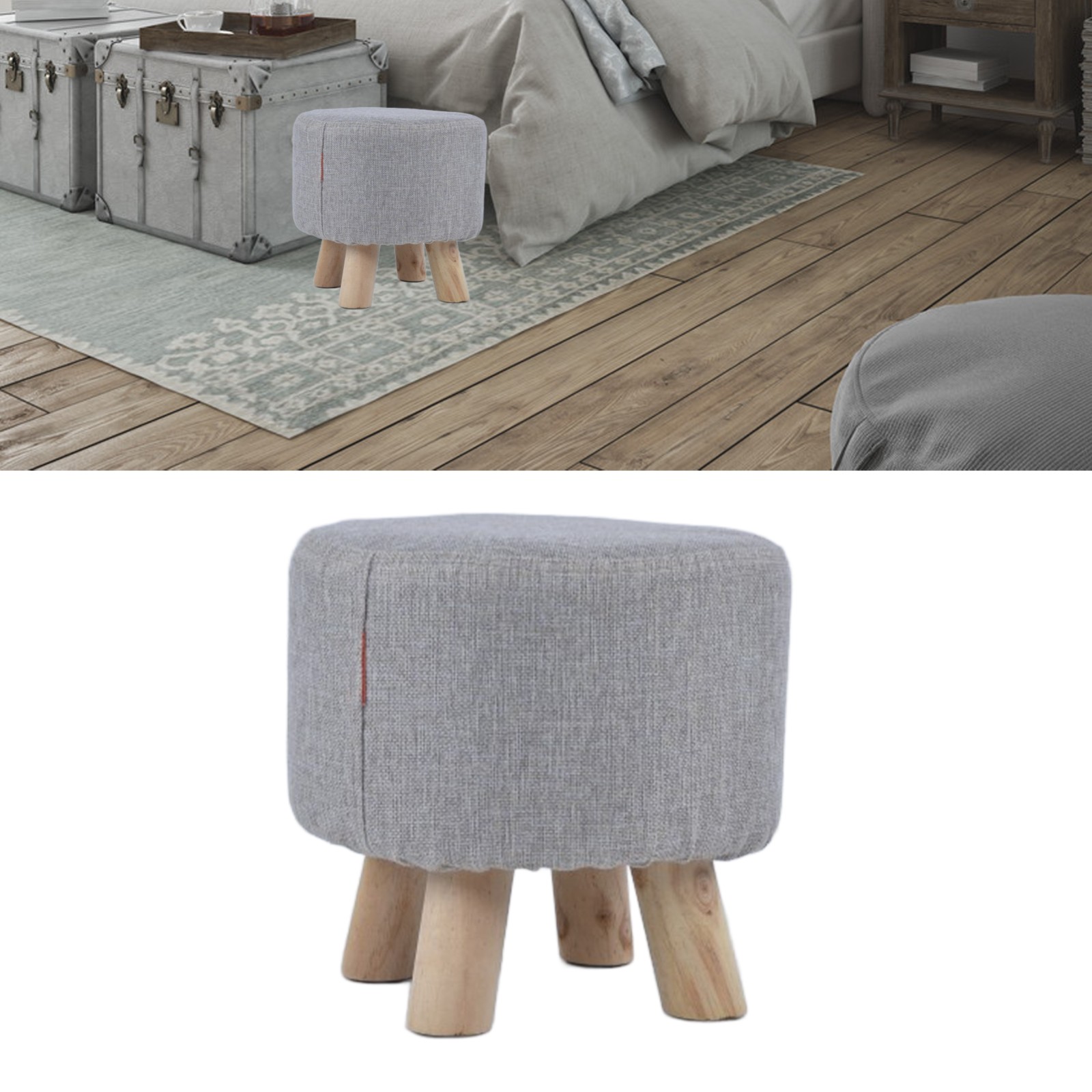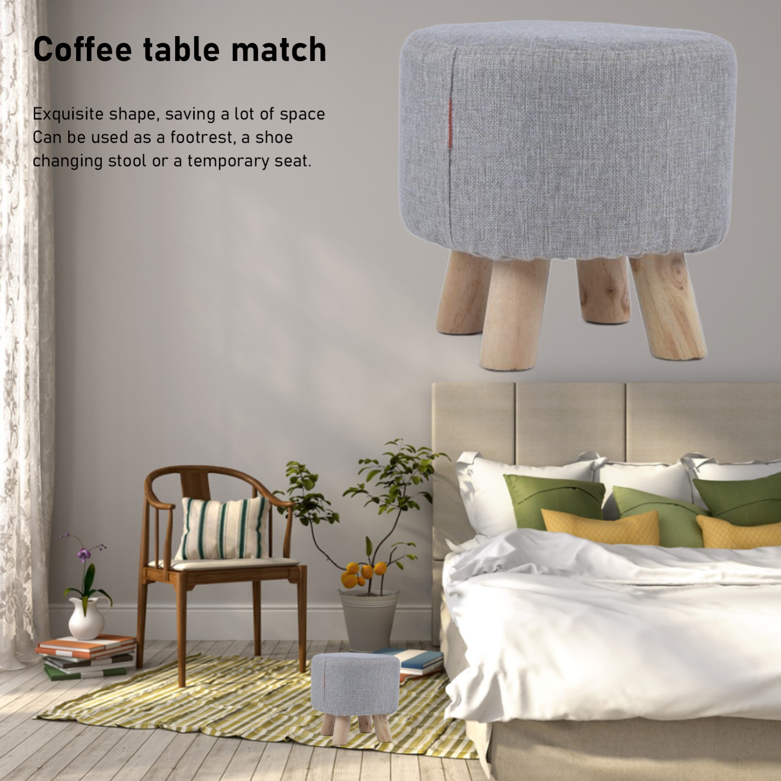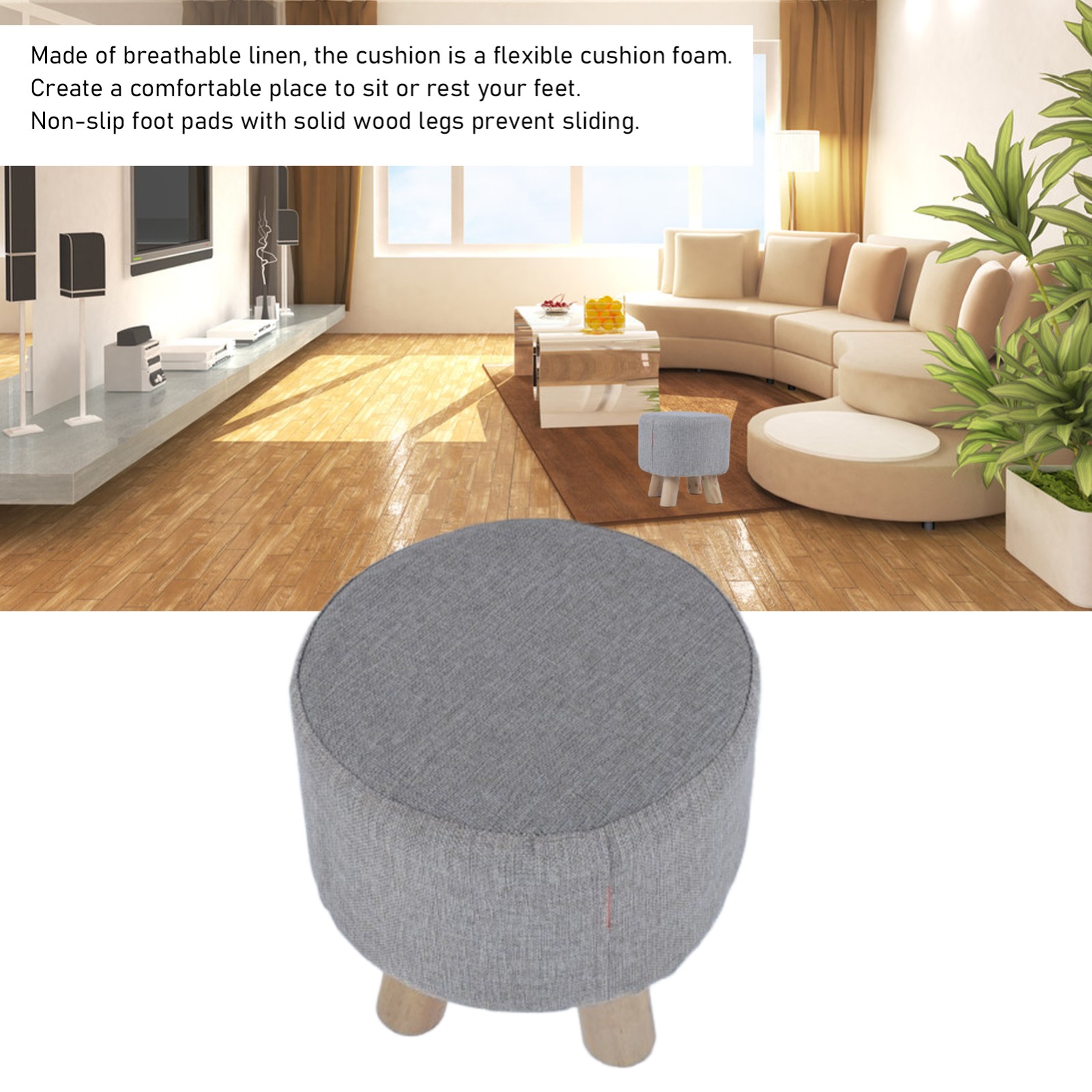 Linen Fabric Shoe Changing Stool Wooden Feet Small Fashion Round Footstool for Living Room