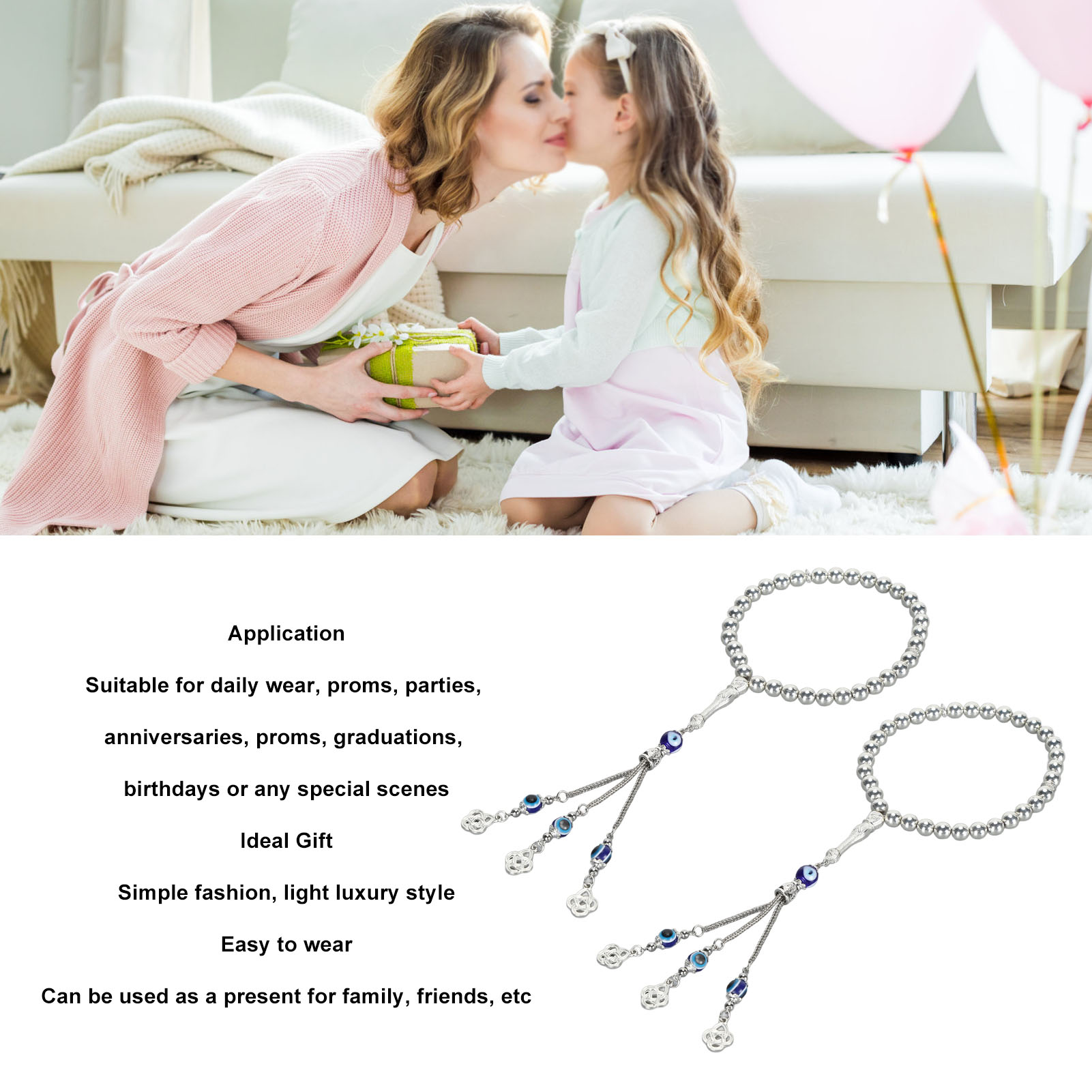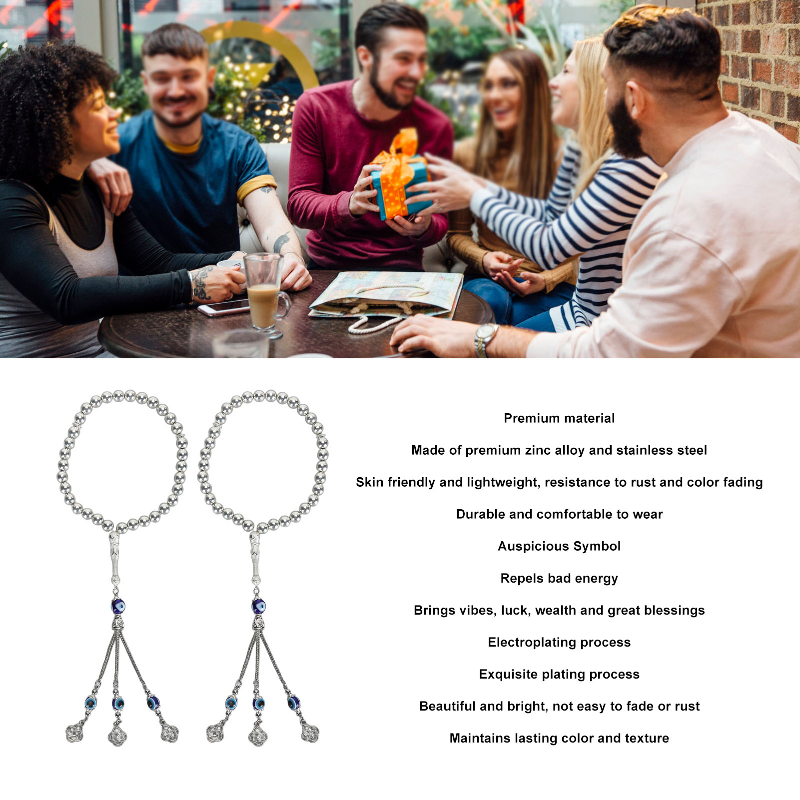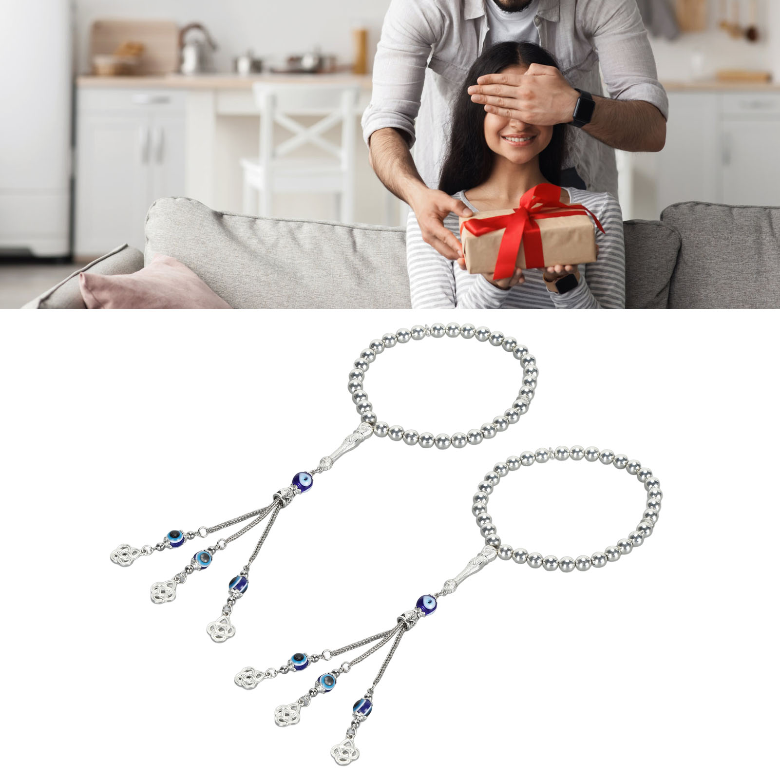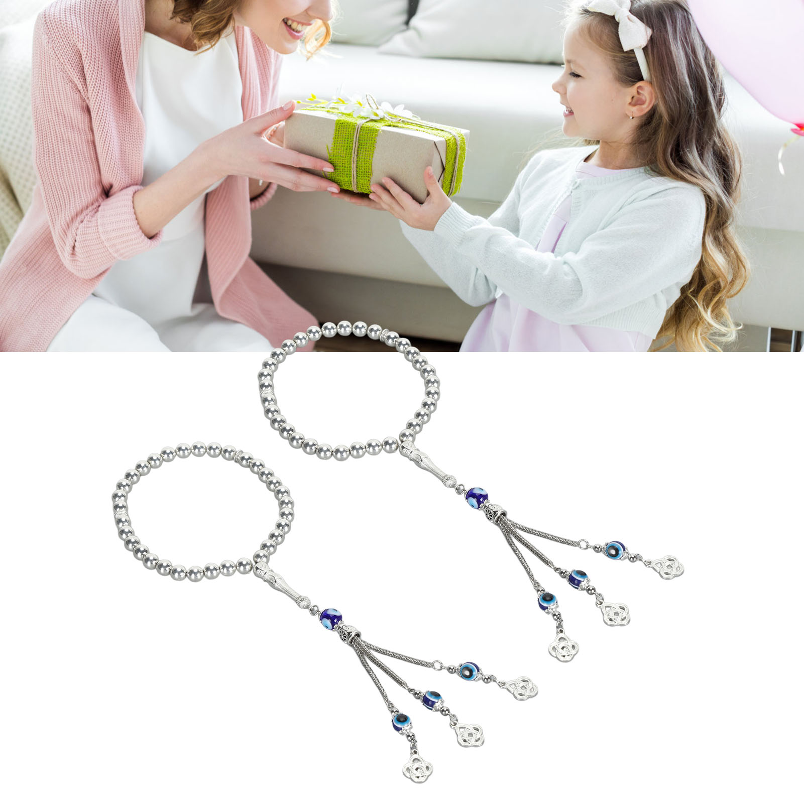 2-Piece Evil Eye Bracelet Set | Blue Eye Beaded Lucky Bracelet | Stylish Metal Bracelet
