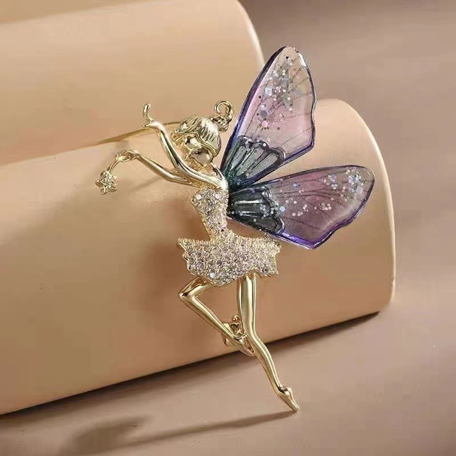 Green Angel Wing Micro-Paved Zirconia Brooch | Elegant Dancing Girl Corsage | Creative Clothing Pin