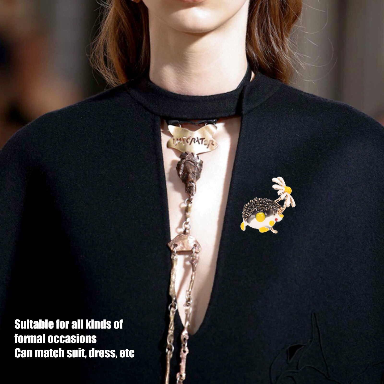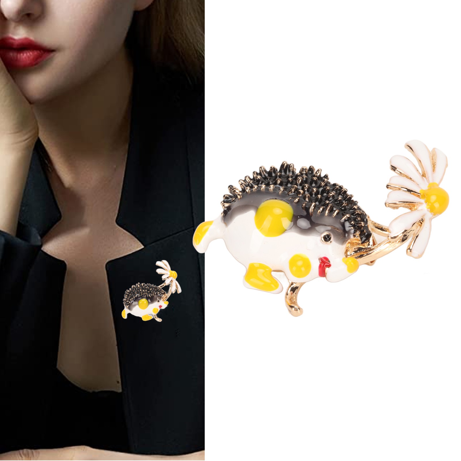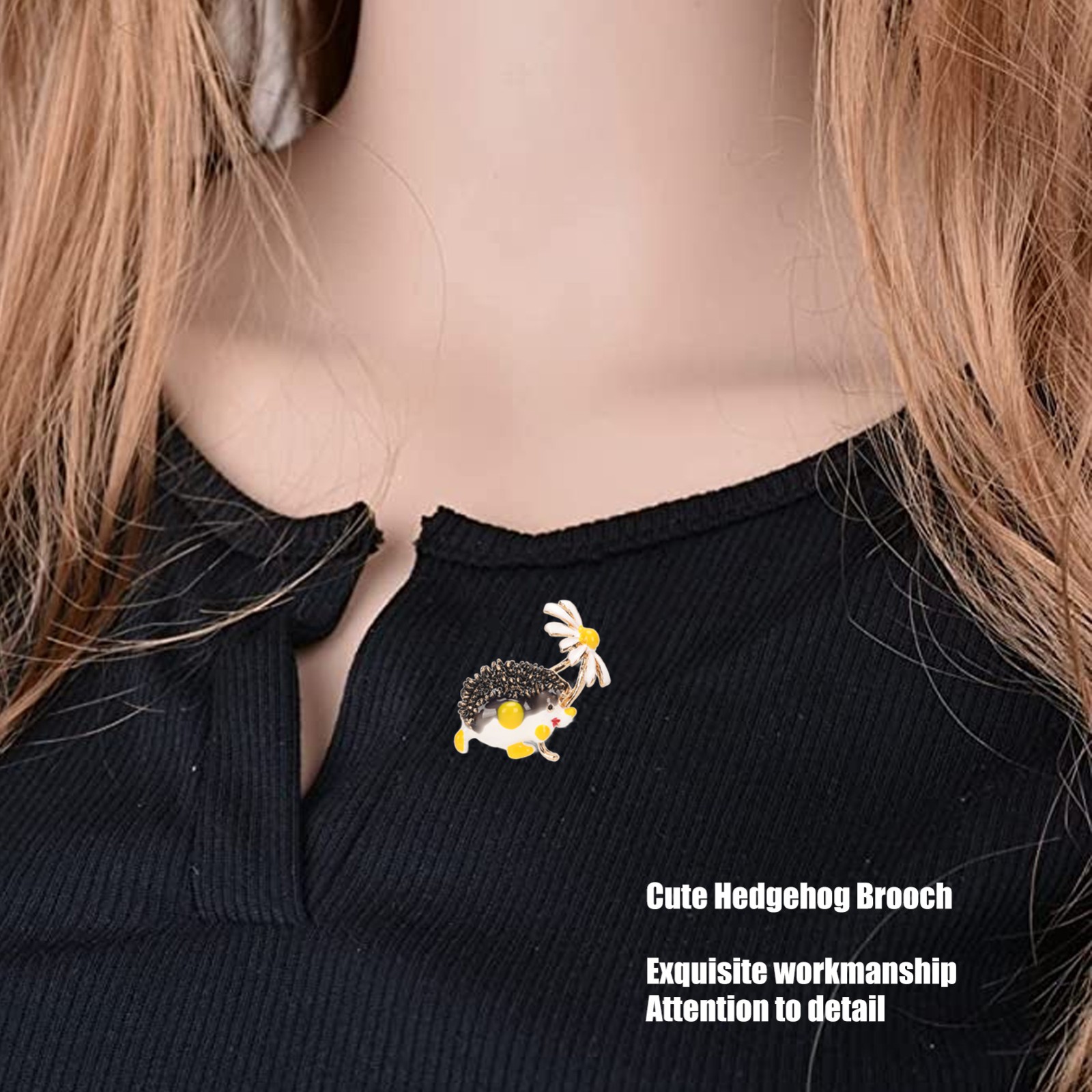 Daisy Hedgehog Brooch Alloy Cartoon Cute Strong Hardness Metal Animal Brooches Pin for Lady Black