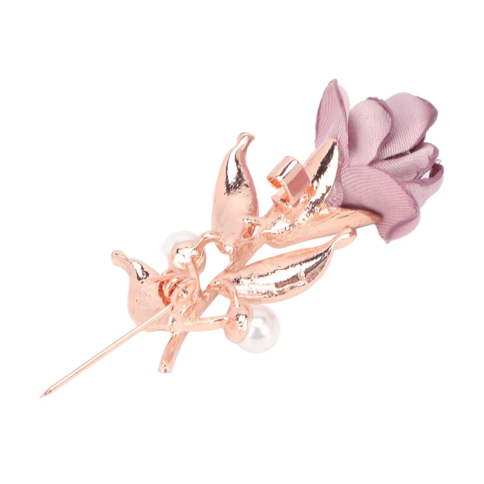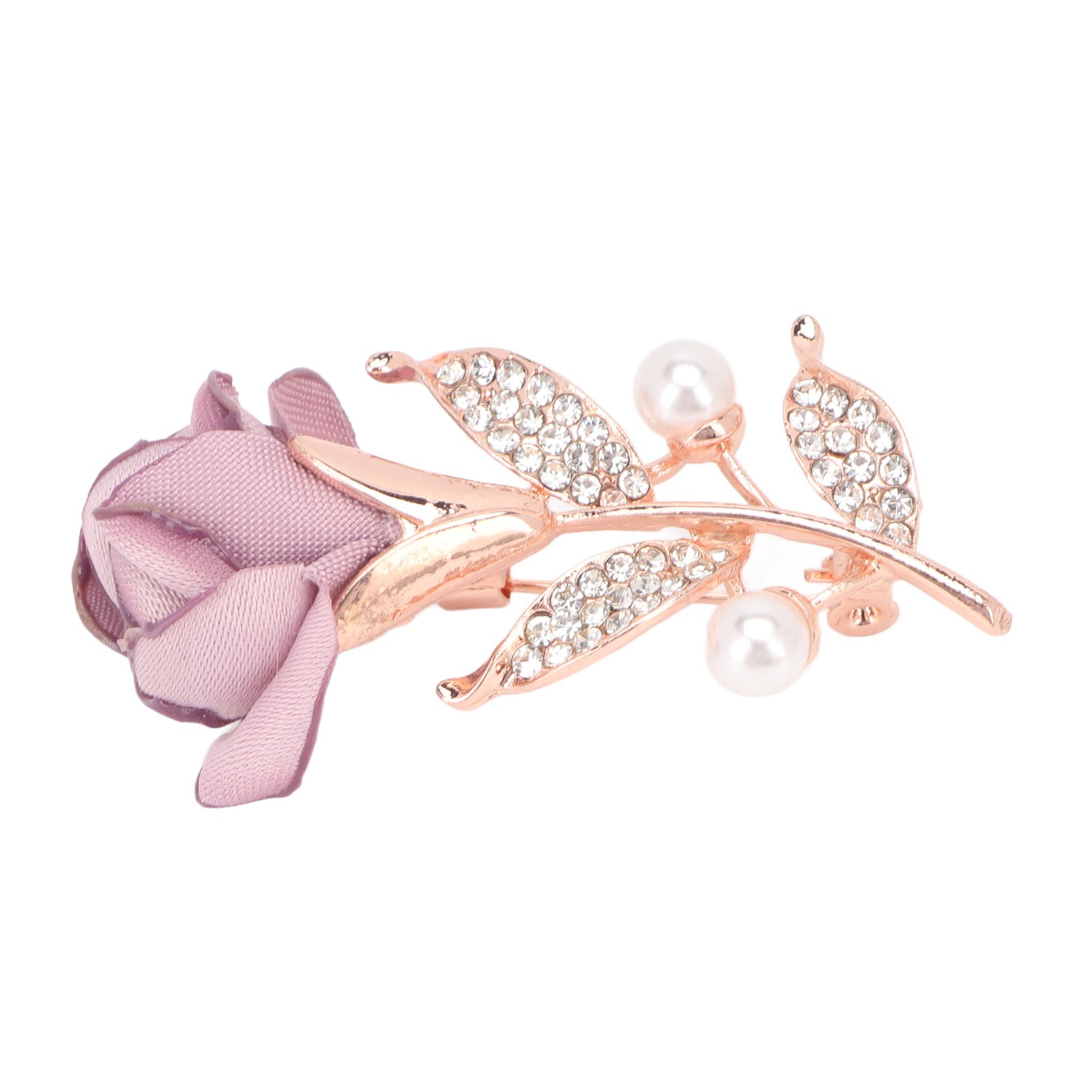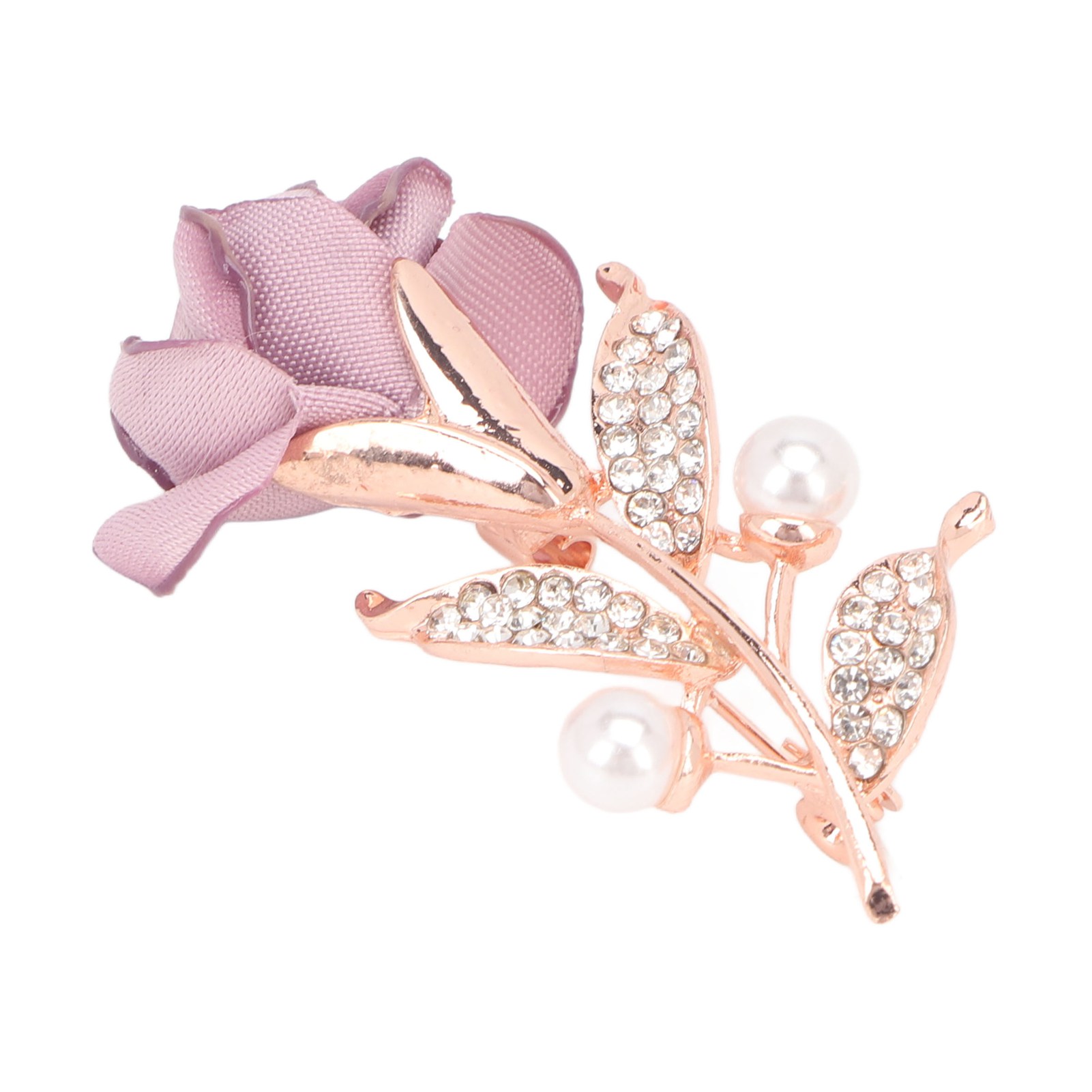 Brooch Rose Pattern Pearl Rhinestone Alloy Cotton Exquisite Retro Brooch Pin for Coat Suit Scarf Light Purple