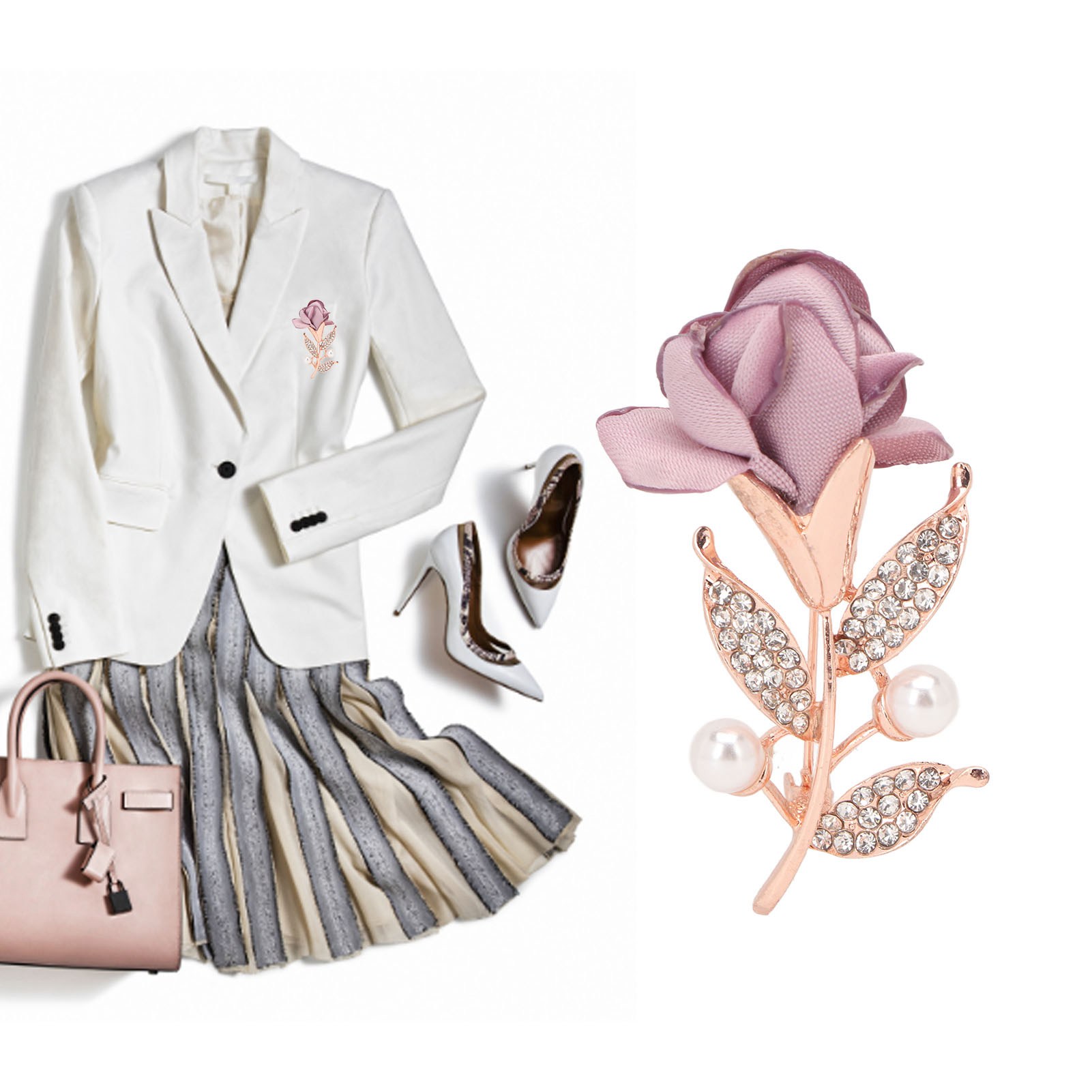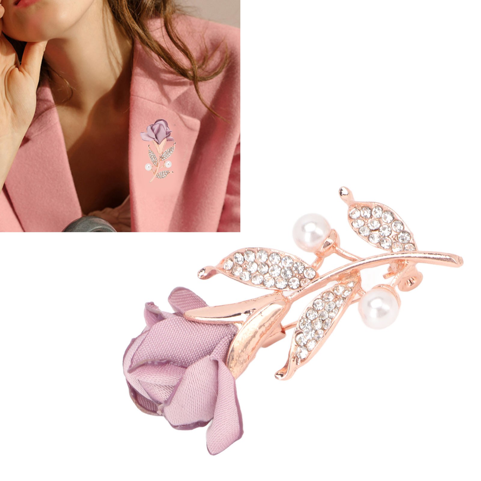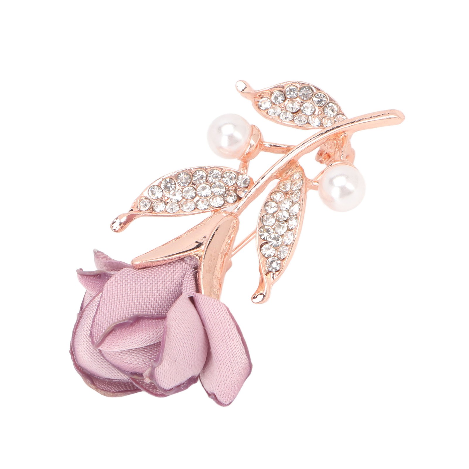 Brooch Rose Pattern Pearl Rhinestone Alloy Cotton Exquisite Retro Brooch Pin for Coat Suit Scarf Light Purple