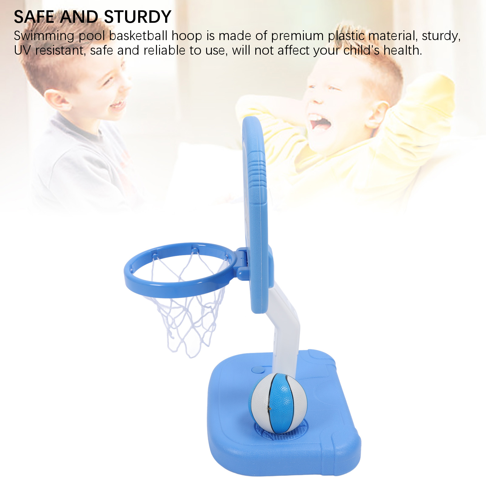 Pool Basketball Hoop Adjustable Height Interactive Poolside Basketball Game Set with 2 Balls Pump for Kids Indoor Outdoor