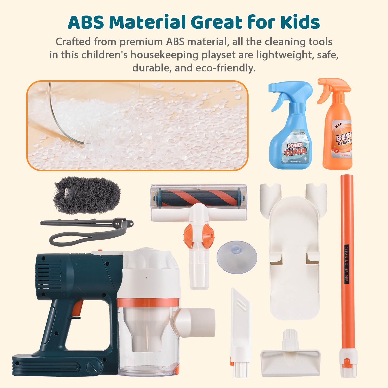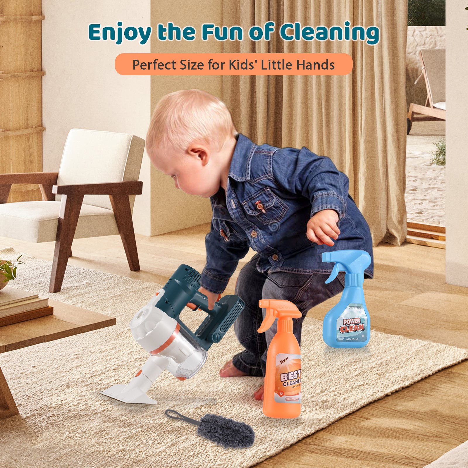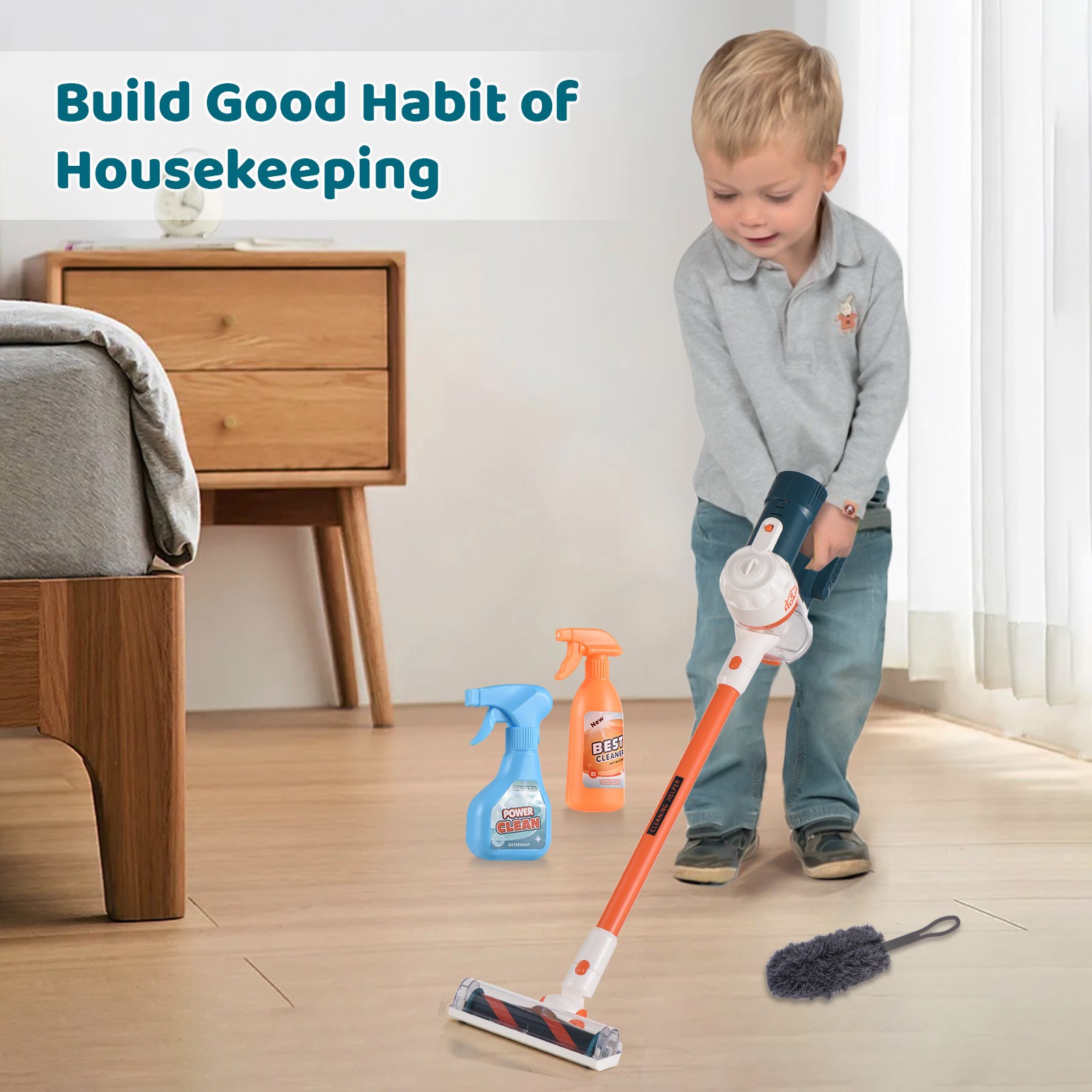 Toy Vacuum Cleaner for Toddler Kids Cleaning Set Housekeeping Play Vacuum Toy Home Cleaning Toy Set for Kids Boys Girls with Soft Brush 2 Adapter