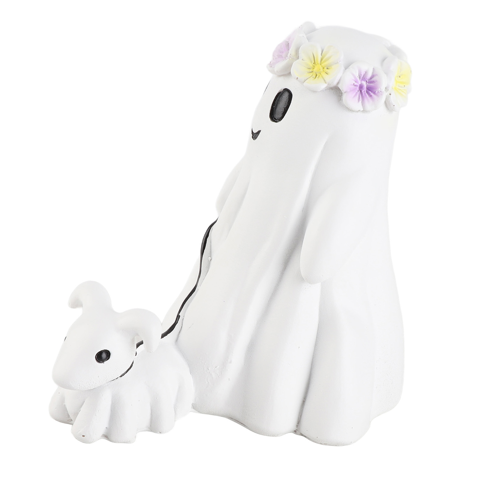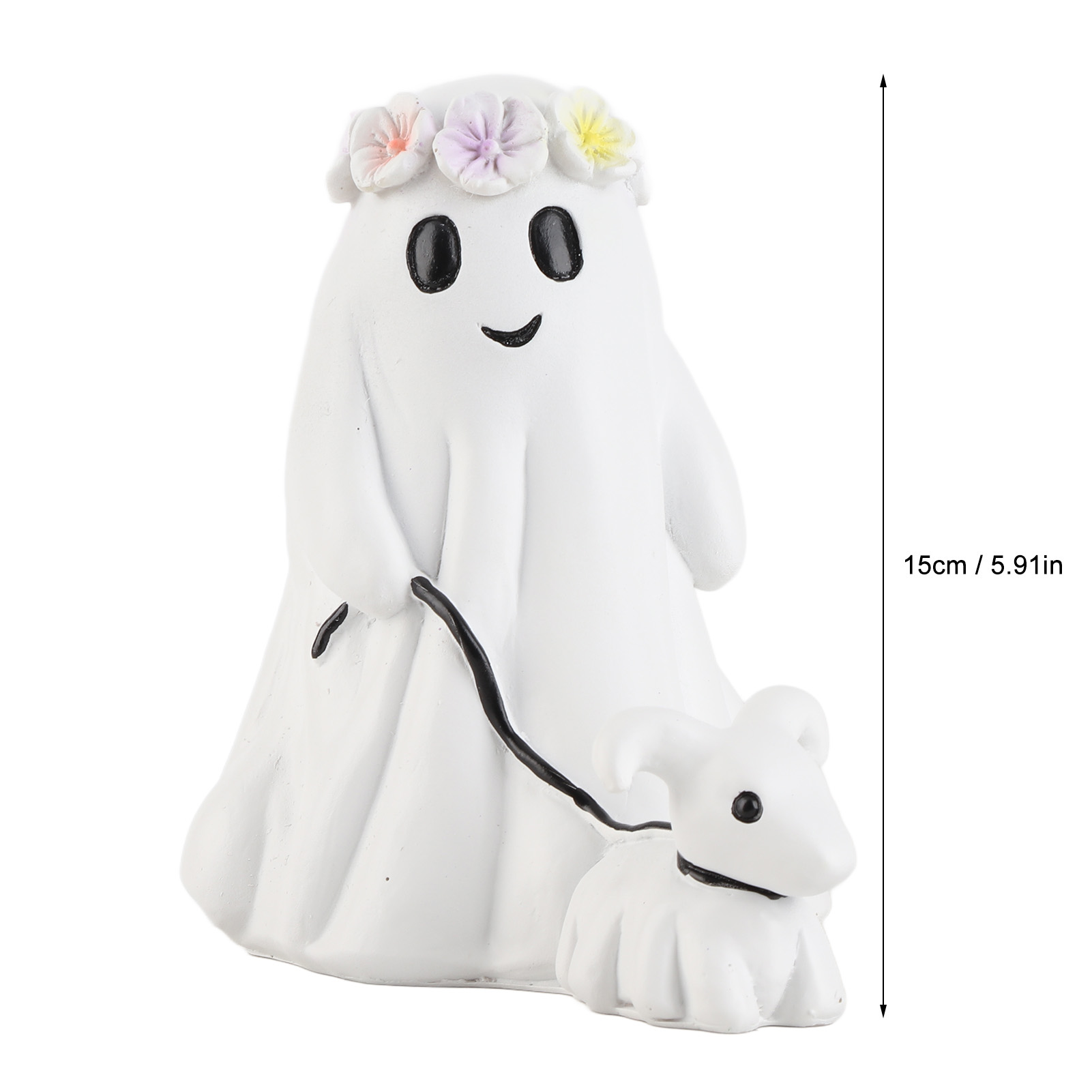 Ghost Walking Dog Statue Spooky Cute Resin Home Decoration Tabletop Ornament Ghost Dog Decor for Indoor Outdoor Use 15cm