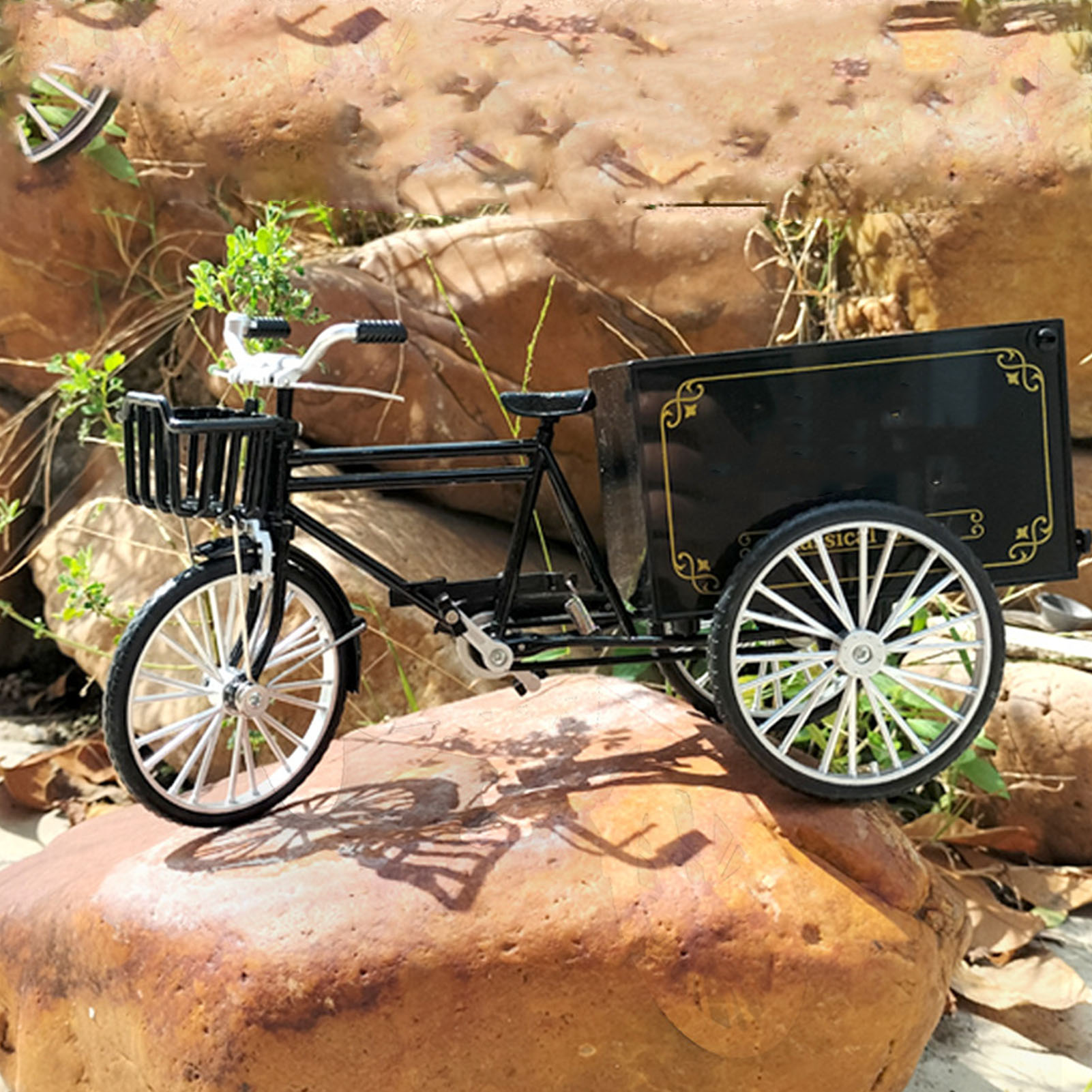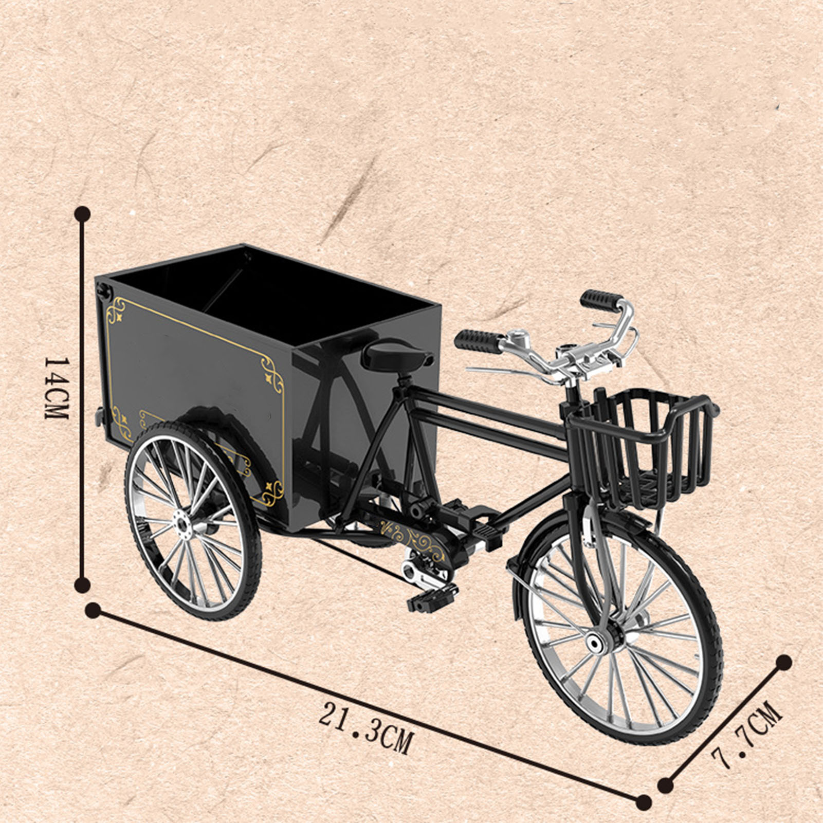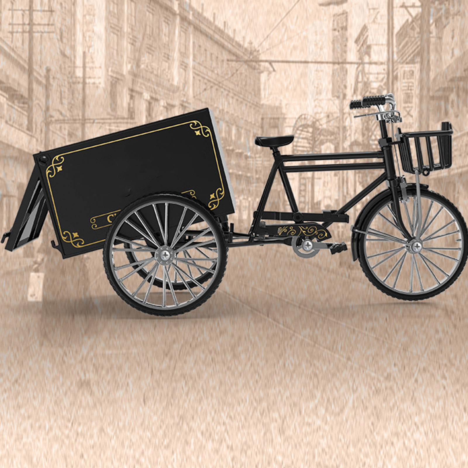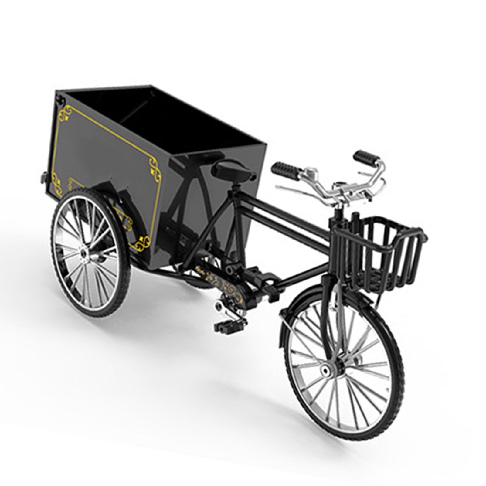 Tricycle Model 1/10 Scale Lifelike Decorative Loading Unloading Function Alloy Vintage Tricycle Toy for Girls Boys Black