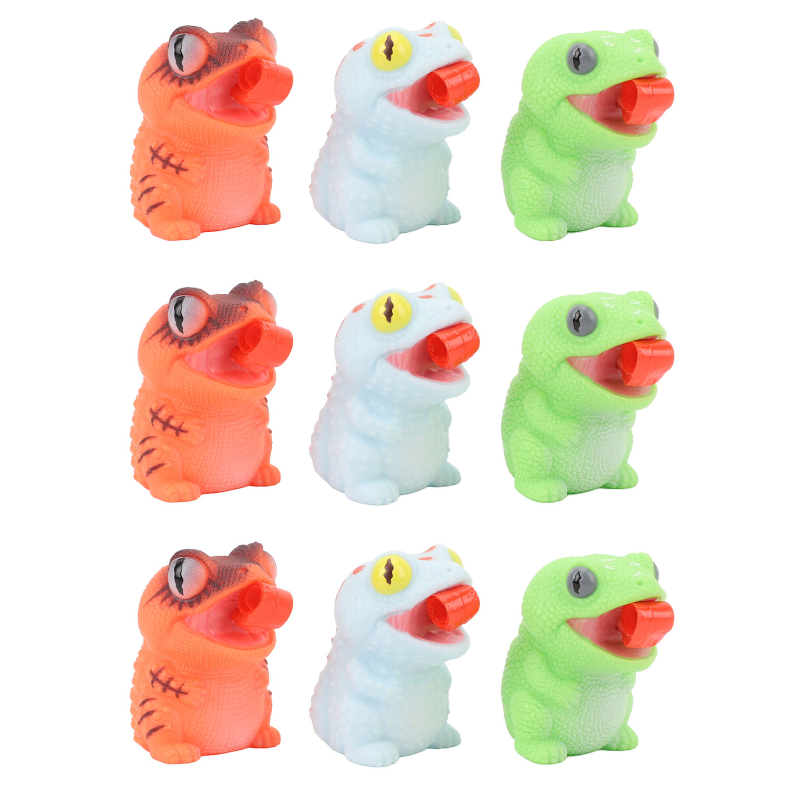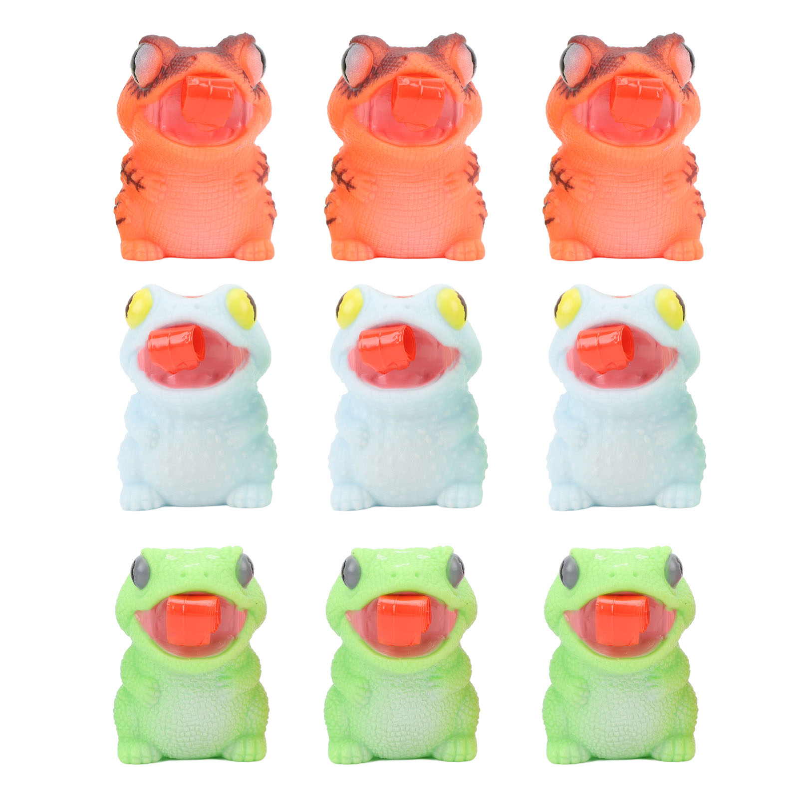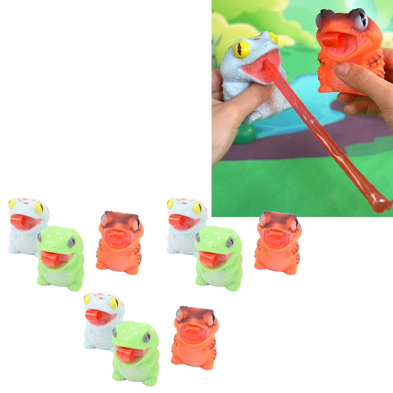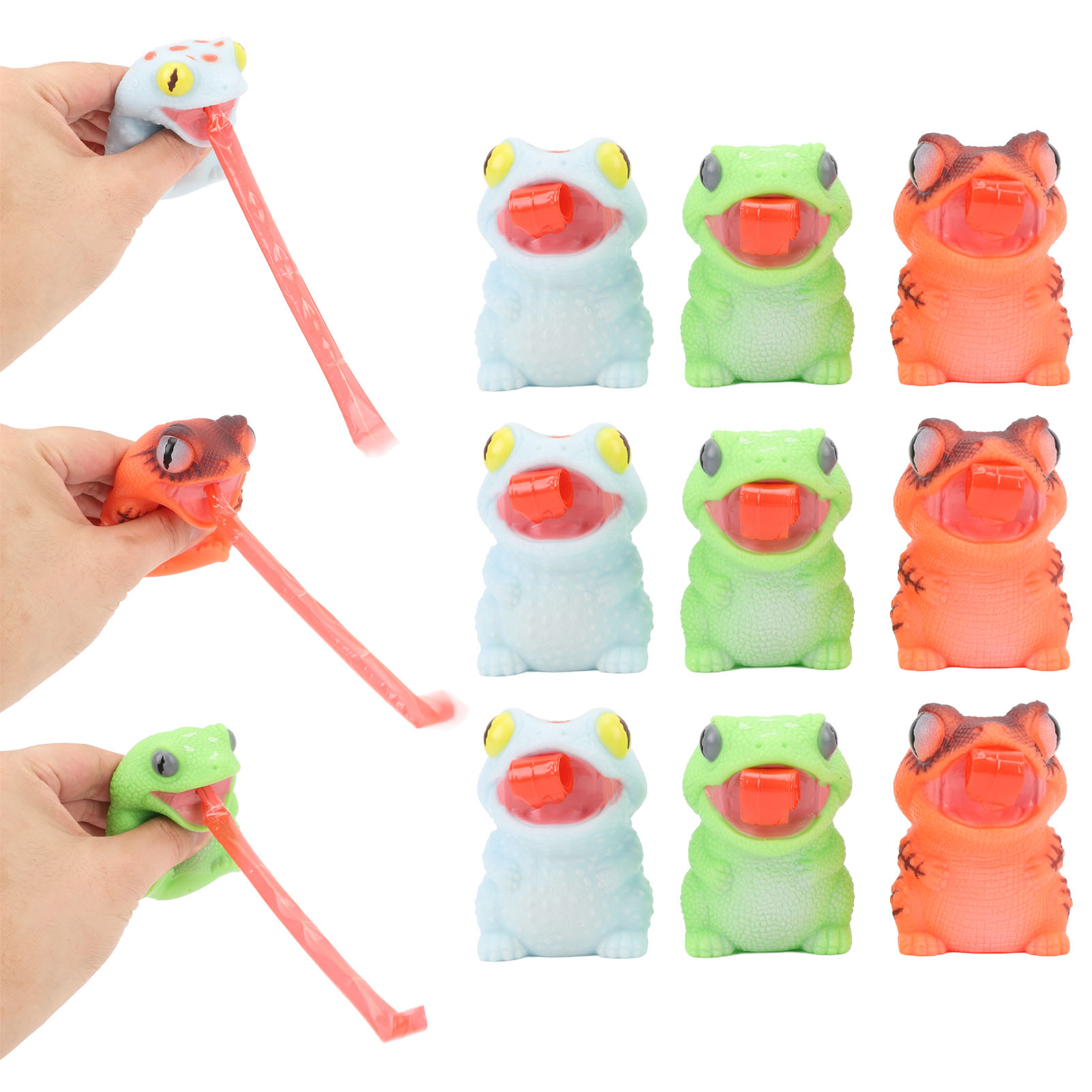 9Pcs Stress Frog Toy Soft Plastic Compact Portable Tongue Sticking Out Effect Squeeze Stress Relief Frog Toy for Kids Adults
