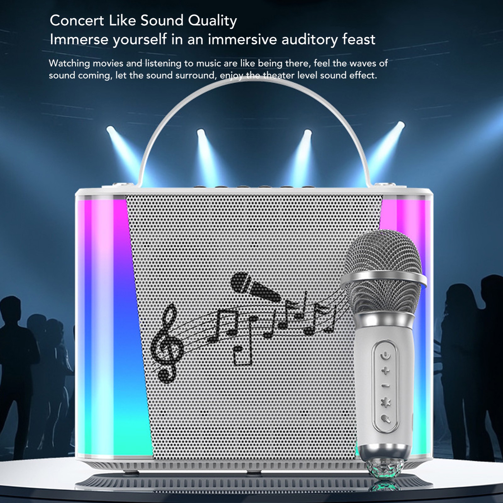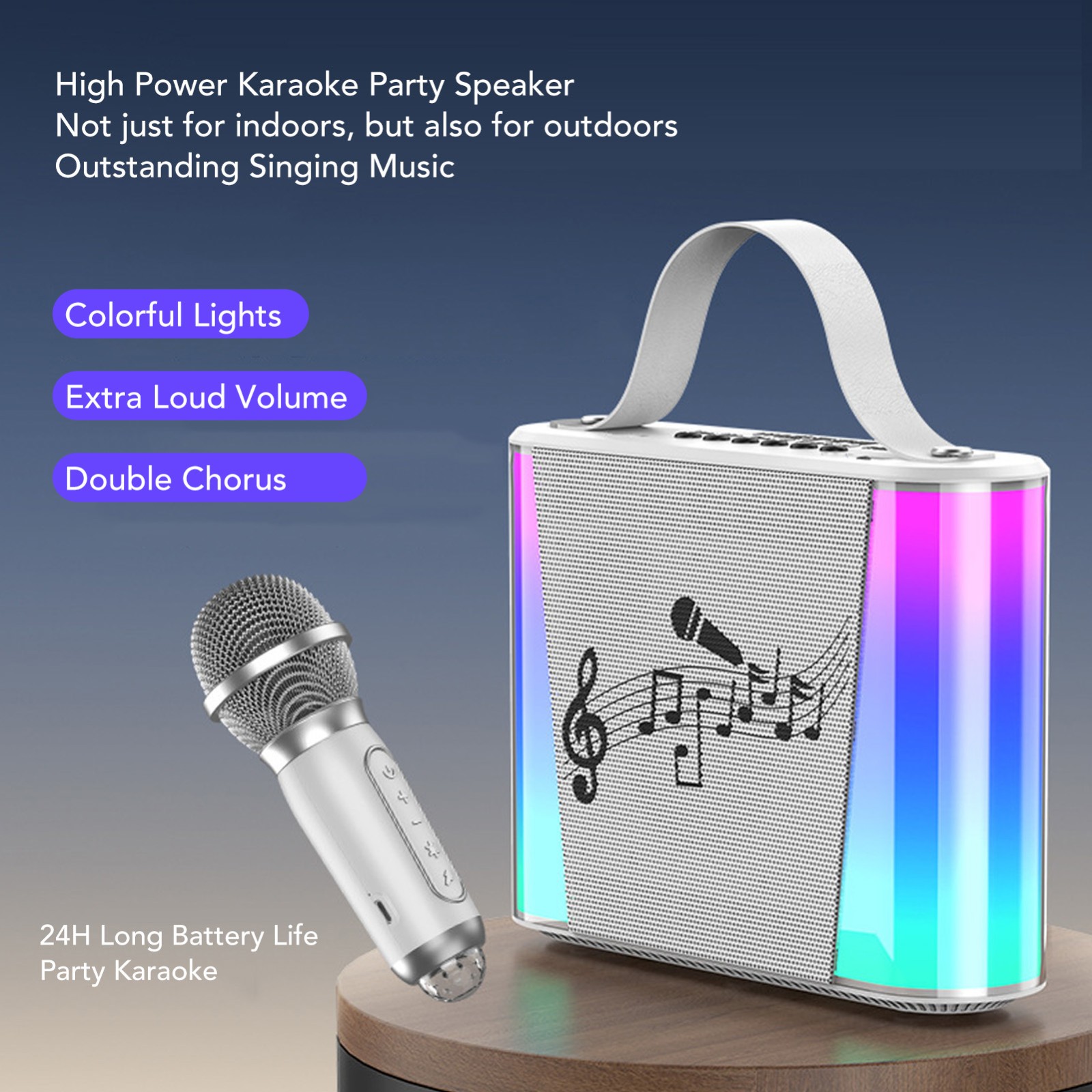 Kids Karaoke Machine Wireless Bluetooth Mini Karaoke Microphone Singing Speaker for Home White Double Mic
