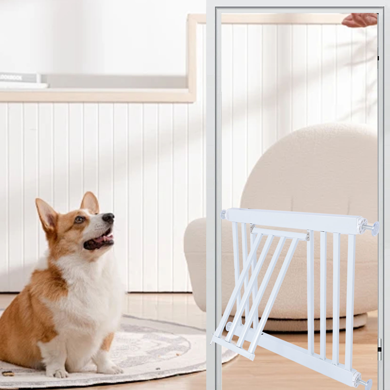Short Dog Gate Expandable Low Pet Gate Pressure Mount Easily Step Over Pet Gate for Indoor Doorways Staircases L 83‑89cm