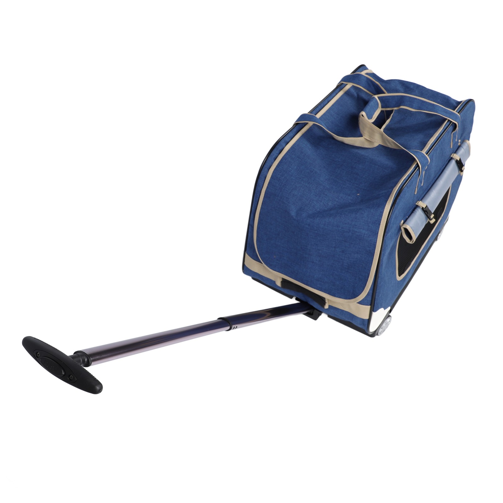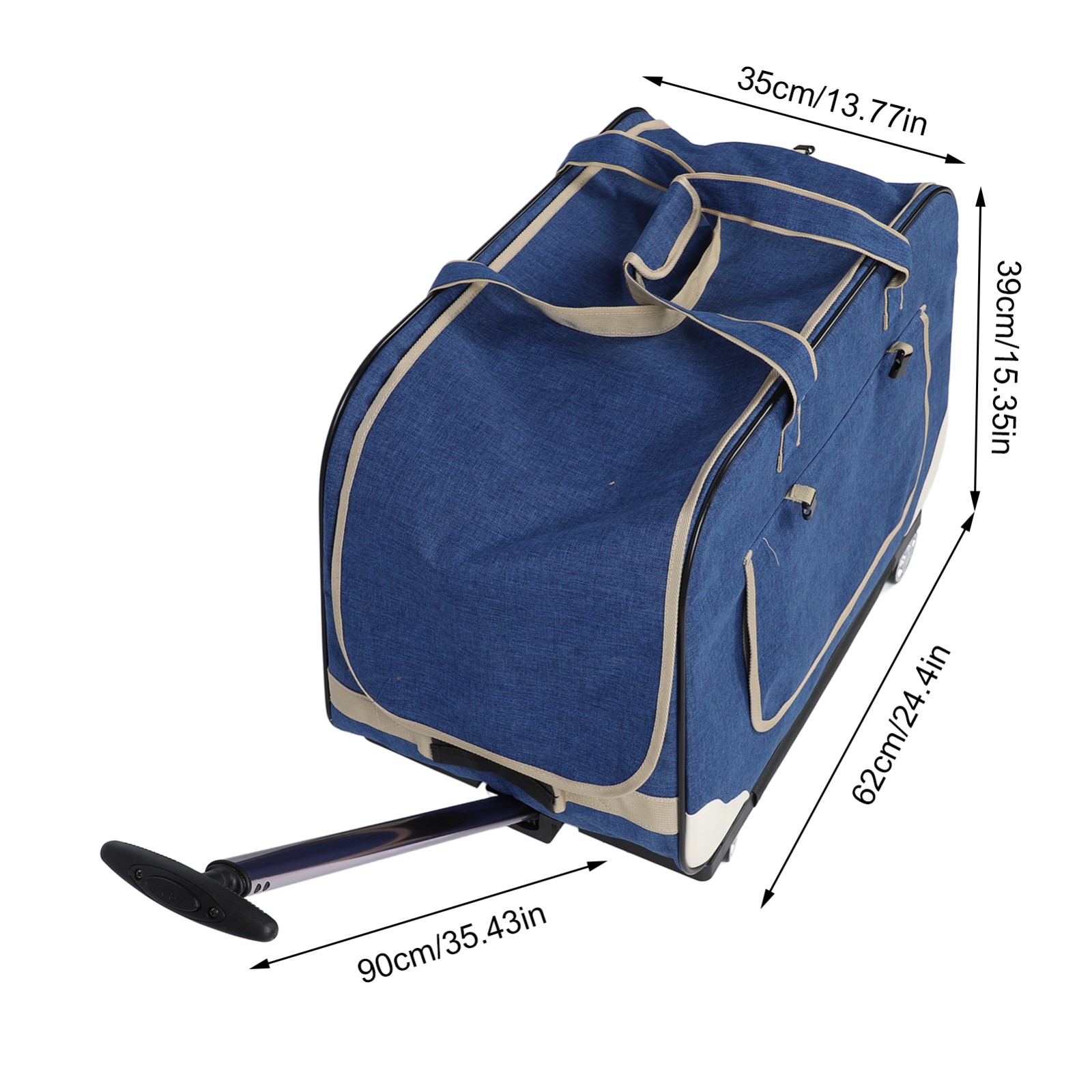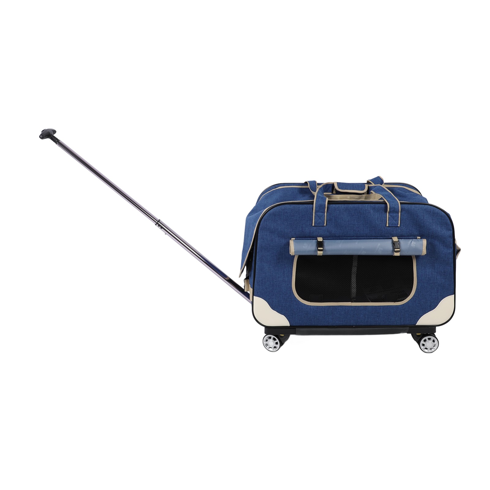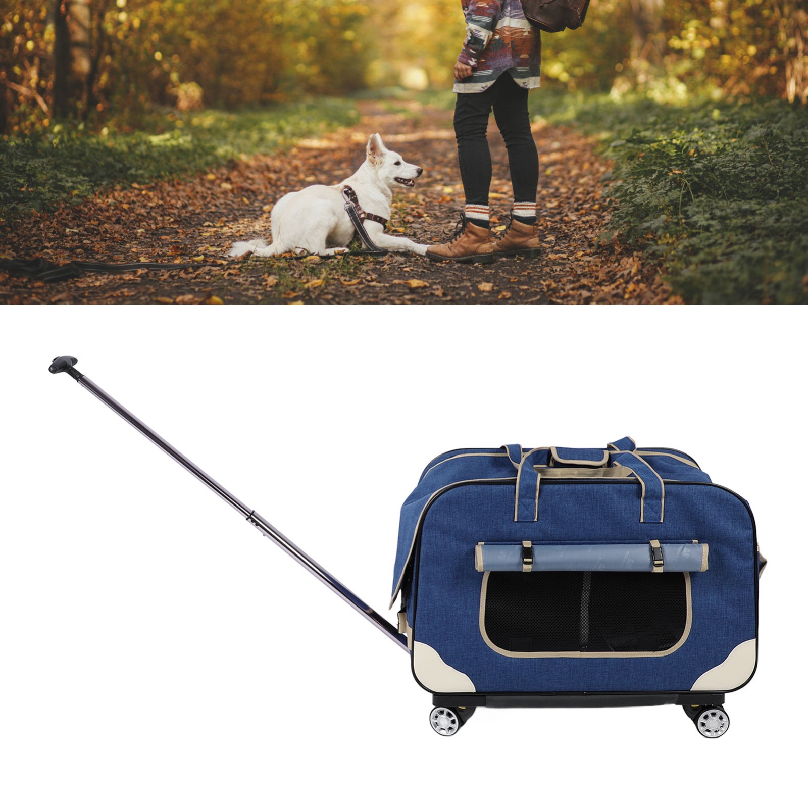 Rolling Pet Carrier Breathable Mesh Foldable Cat Dog Travel Bag with Detachable Wheels for Within 17.5kg Animals Blue