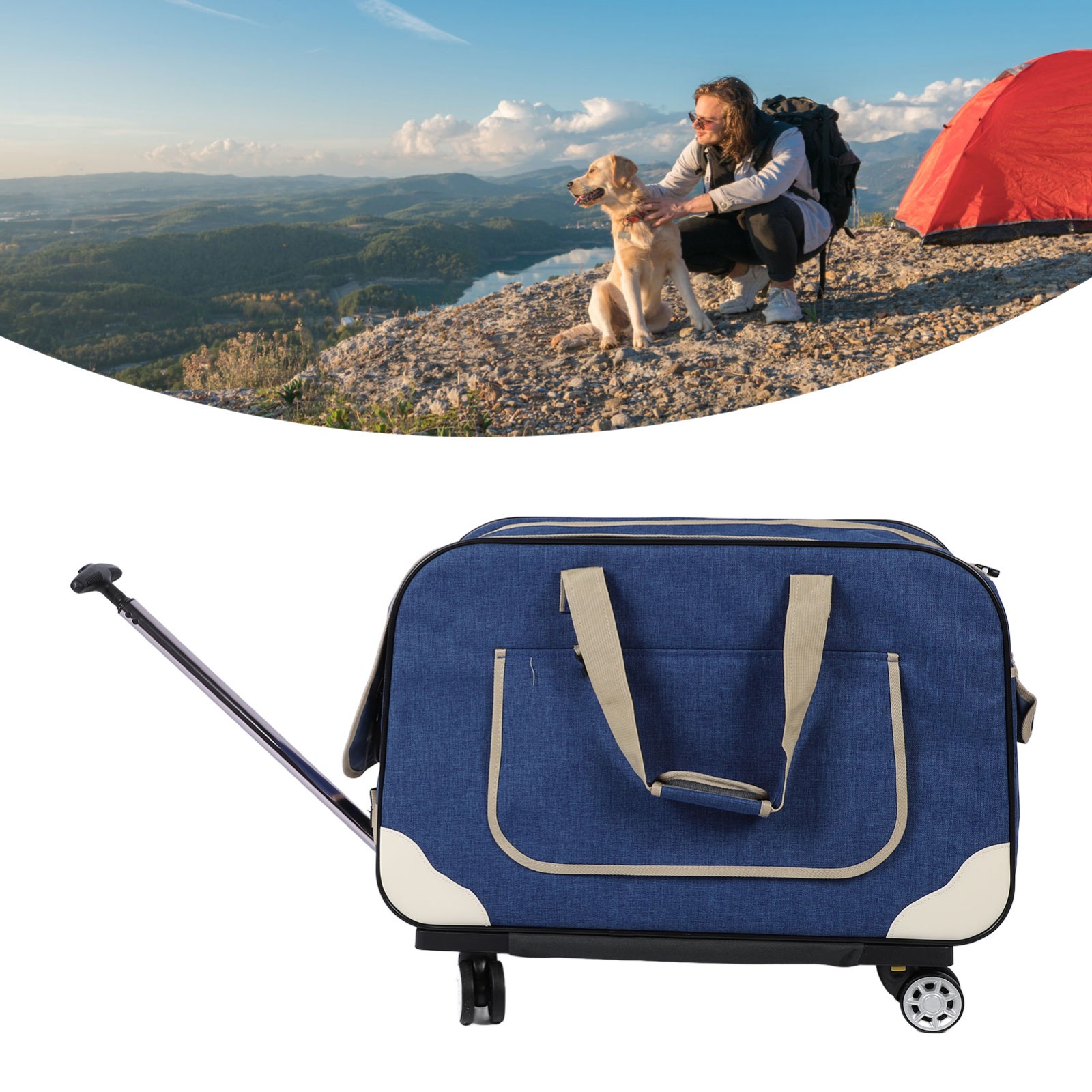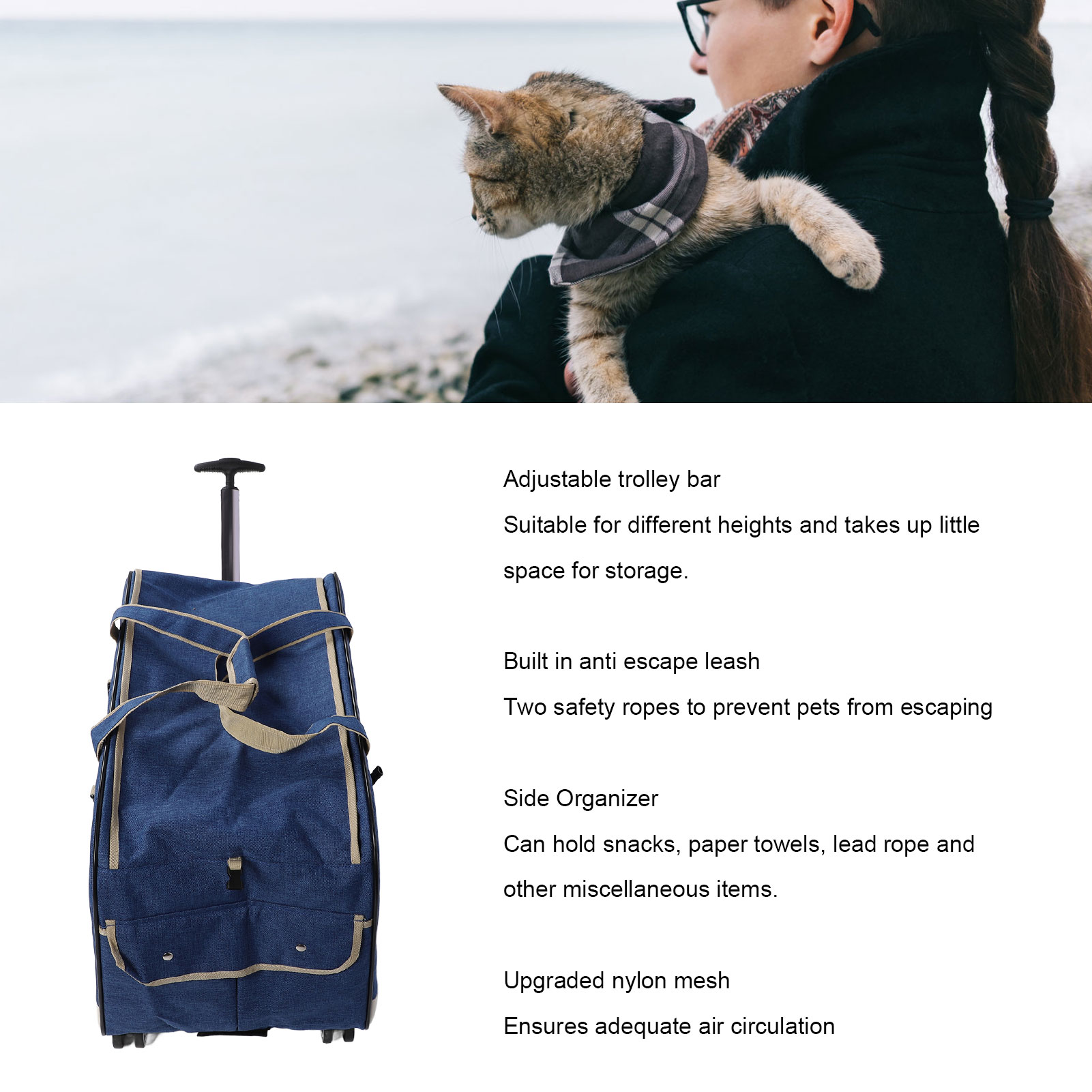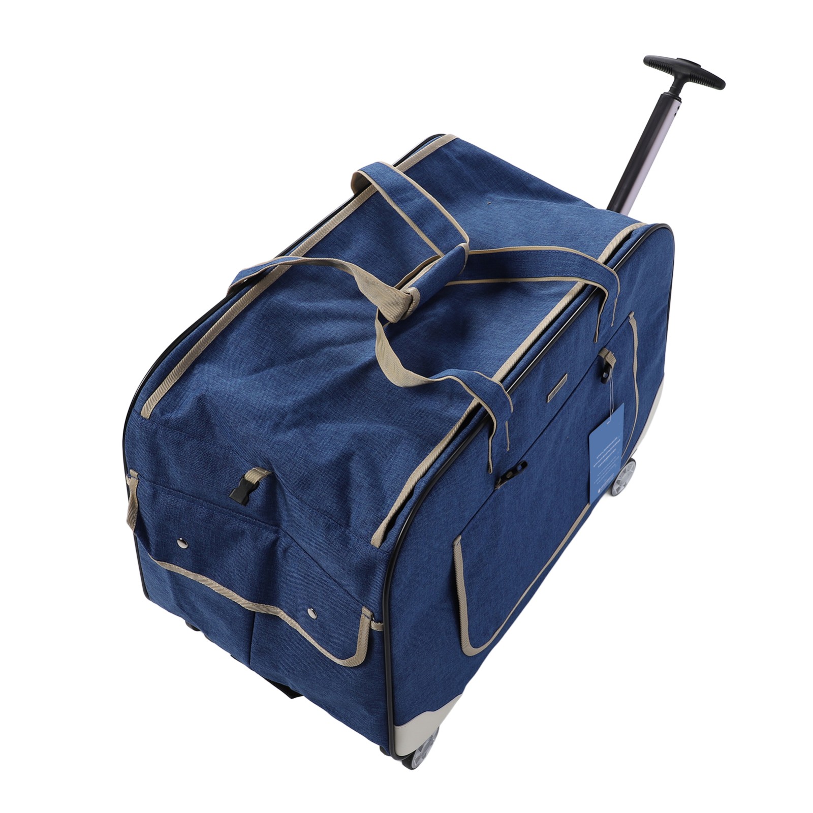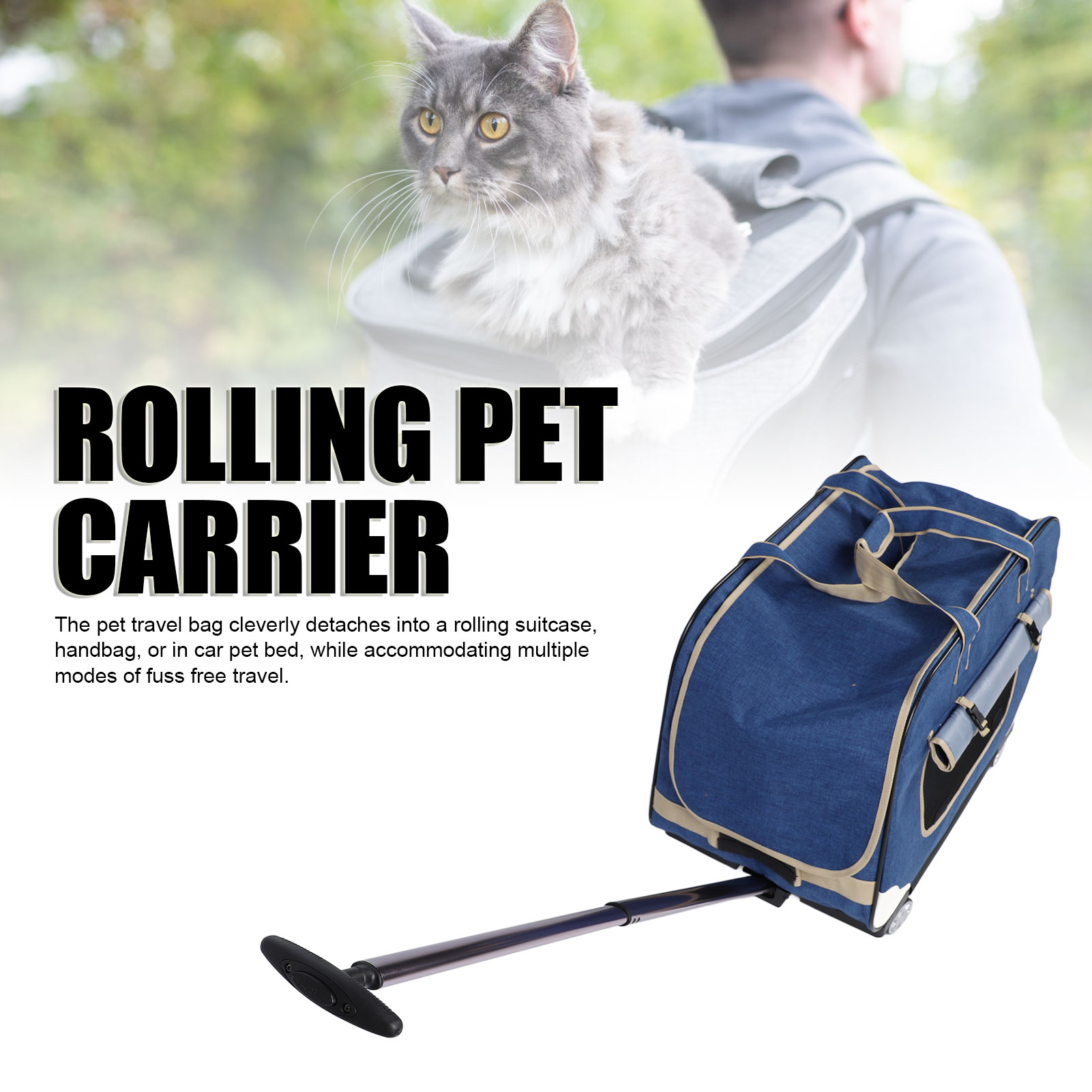Rolling Pet Carrier Breathable Mesh Foldable Cat Dog Travel Bag with Detachable Wheels for Within 17.5kg Animals Blue