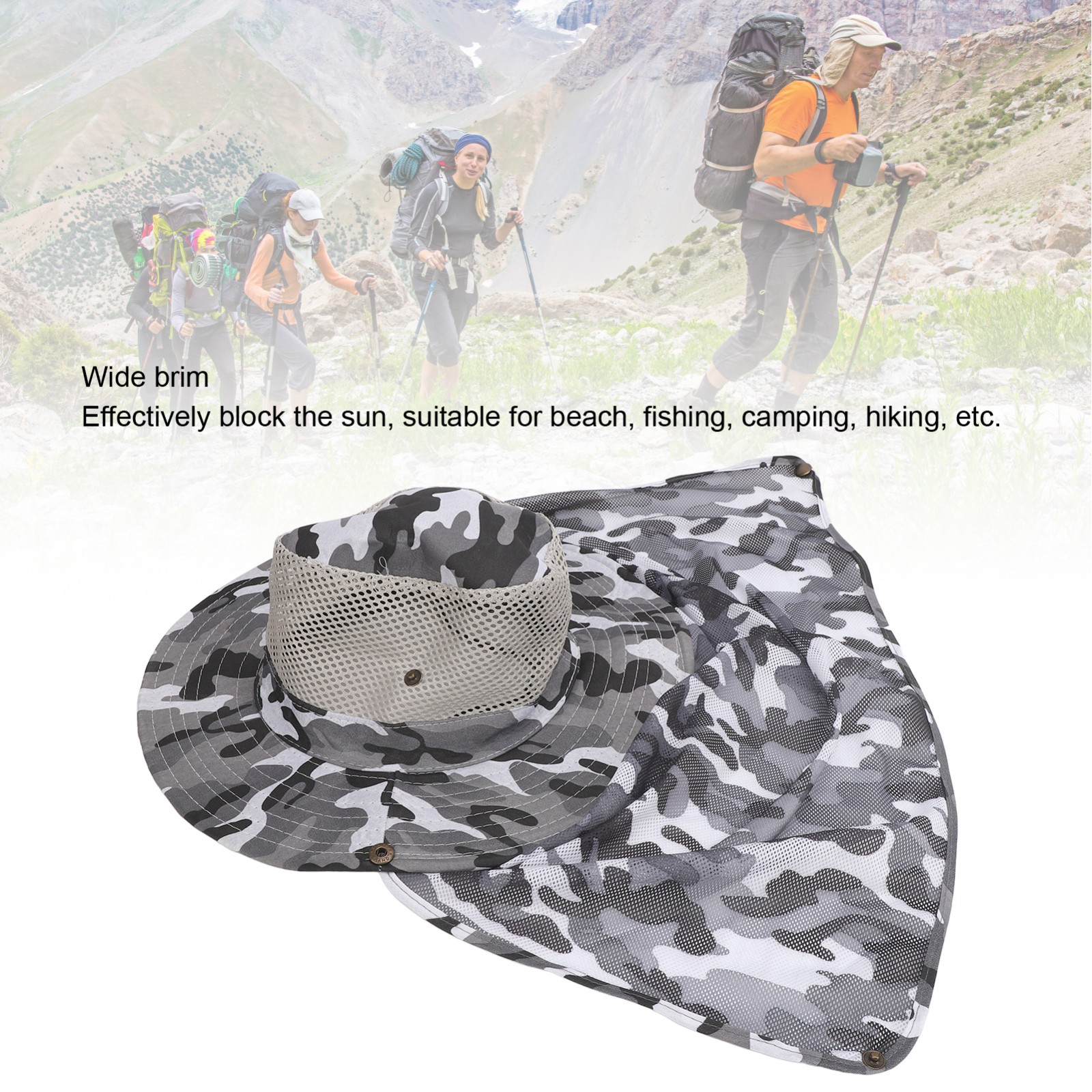 2PCS Sun Hats for Men Polyester Breathable Wide Brim Bucket Hat with Adjustable Windproof String for Beach Fishing Camouflage