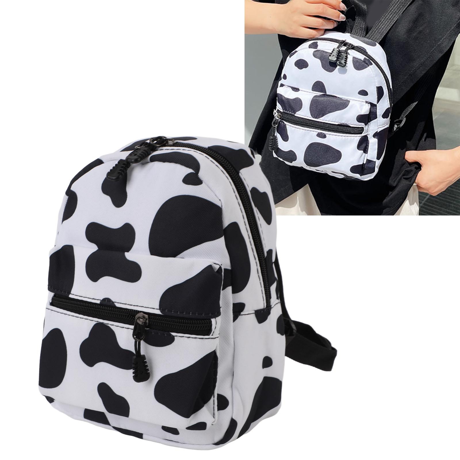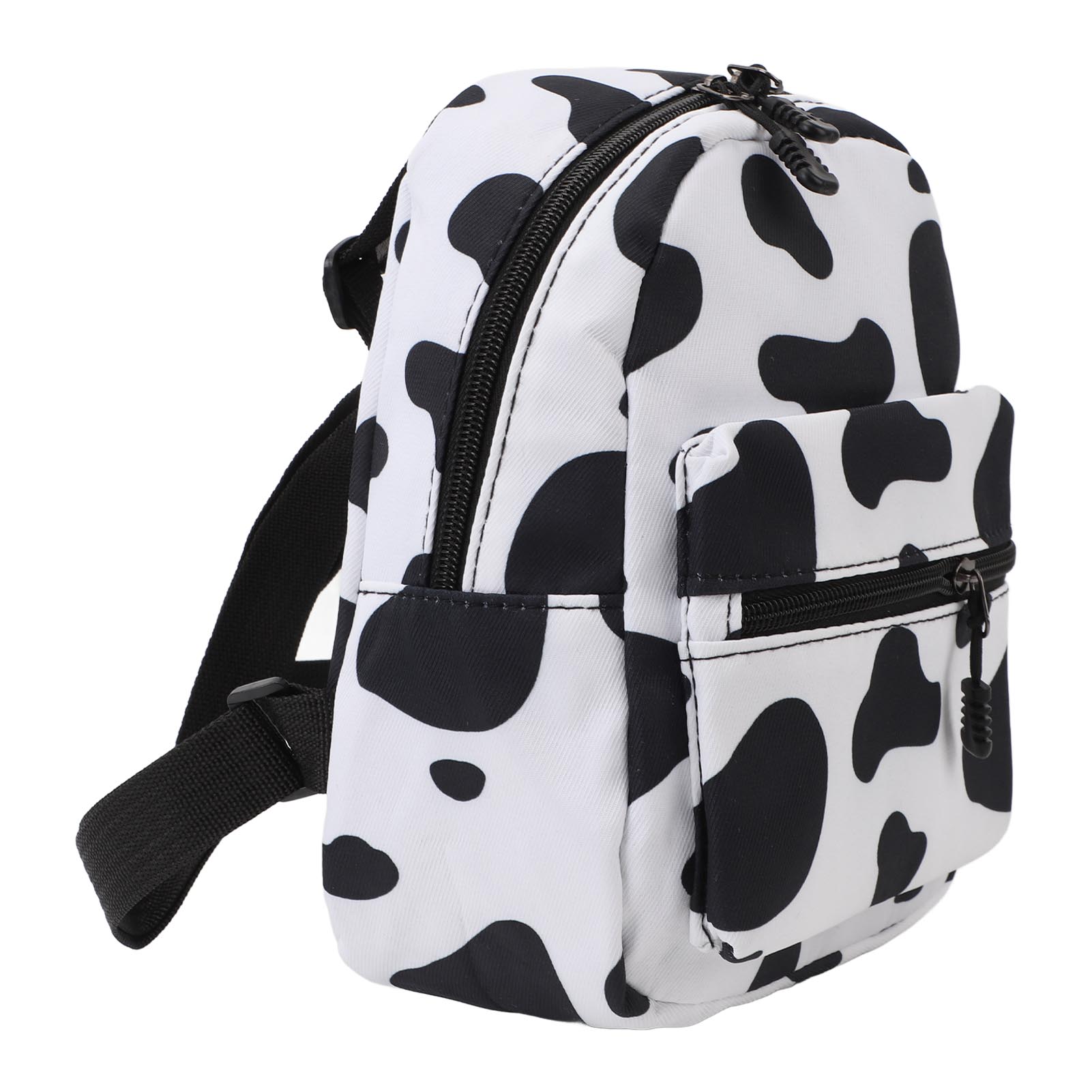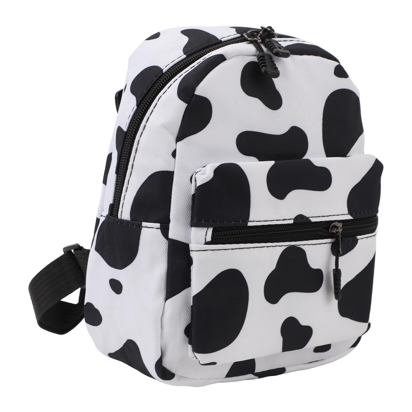 Mini Backpack Cute Sweet Fashionable Cow Pattern Multi Compartment Student Backpack for School Travel Shopping