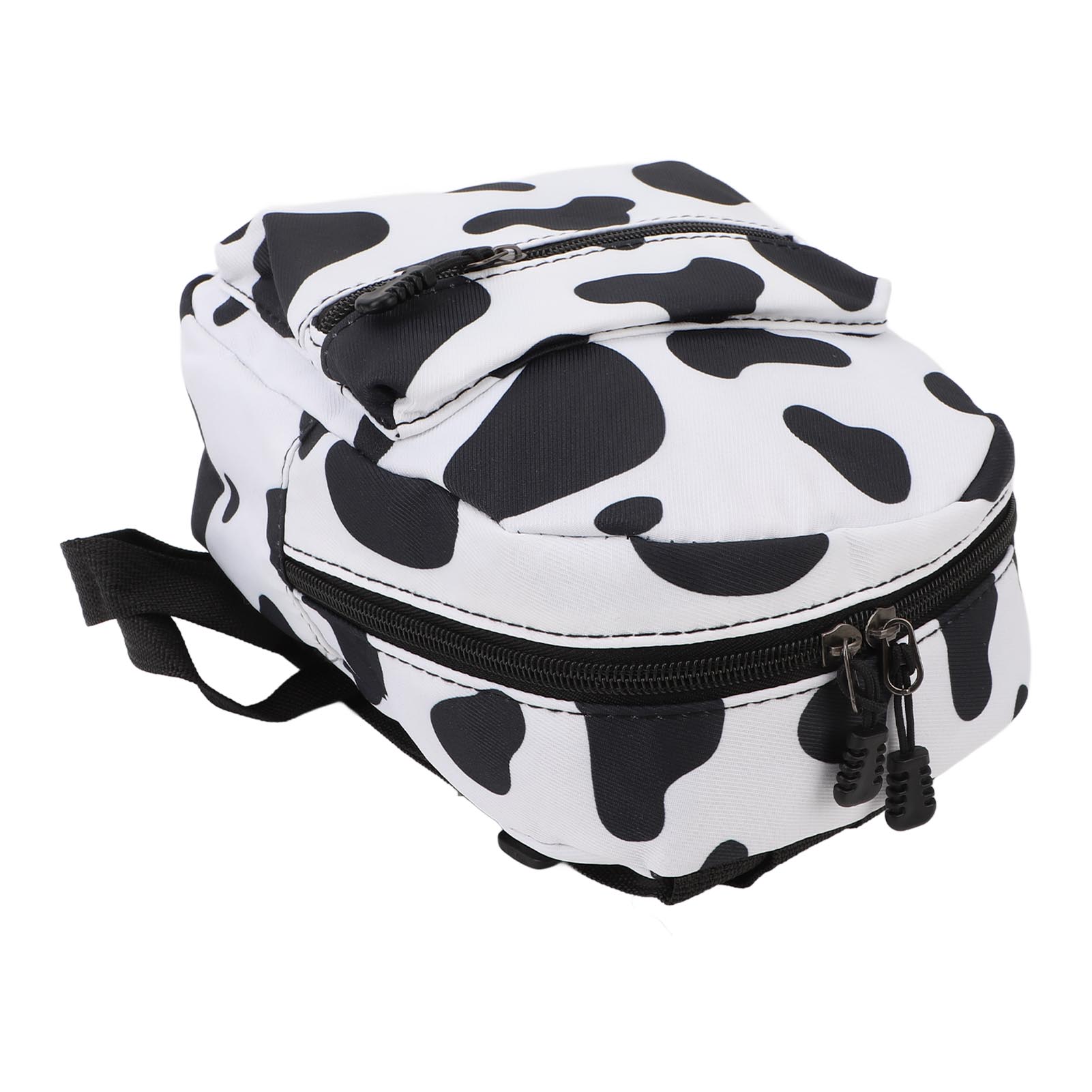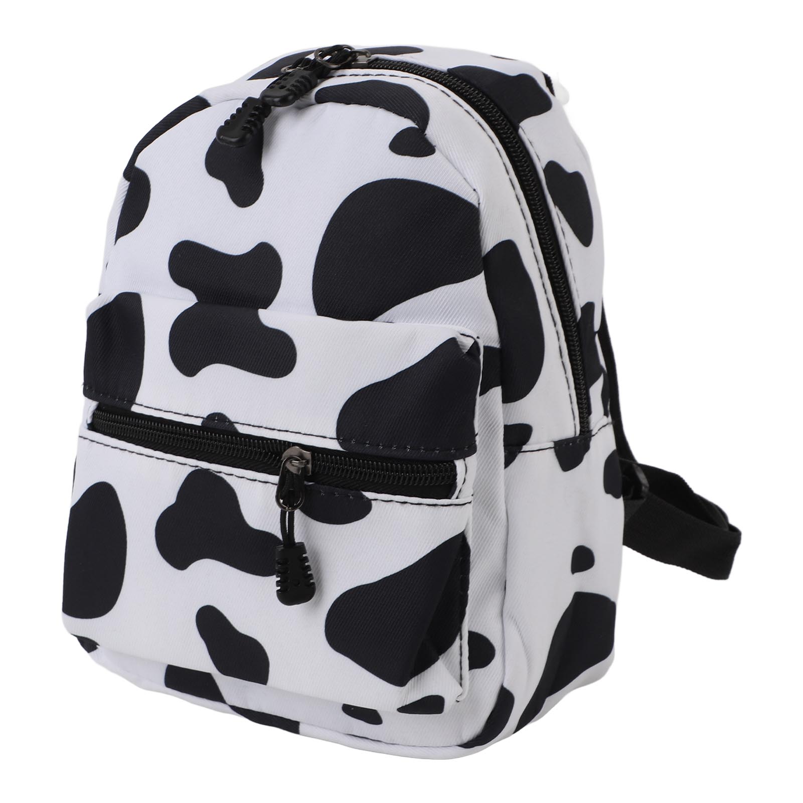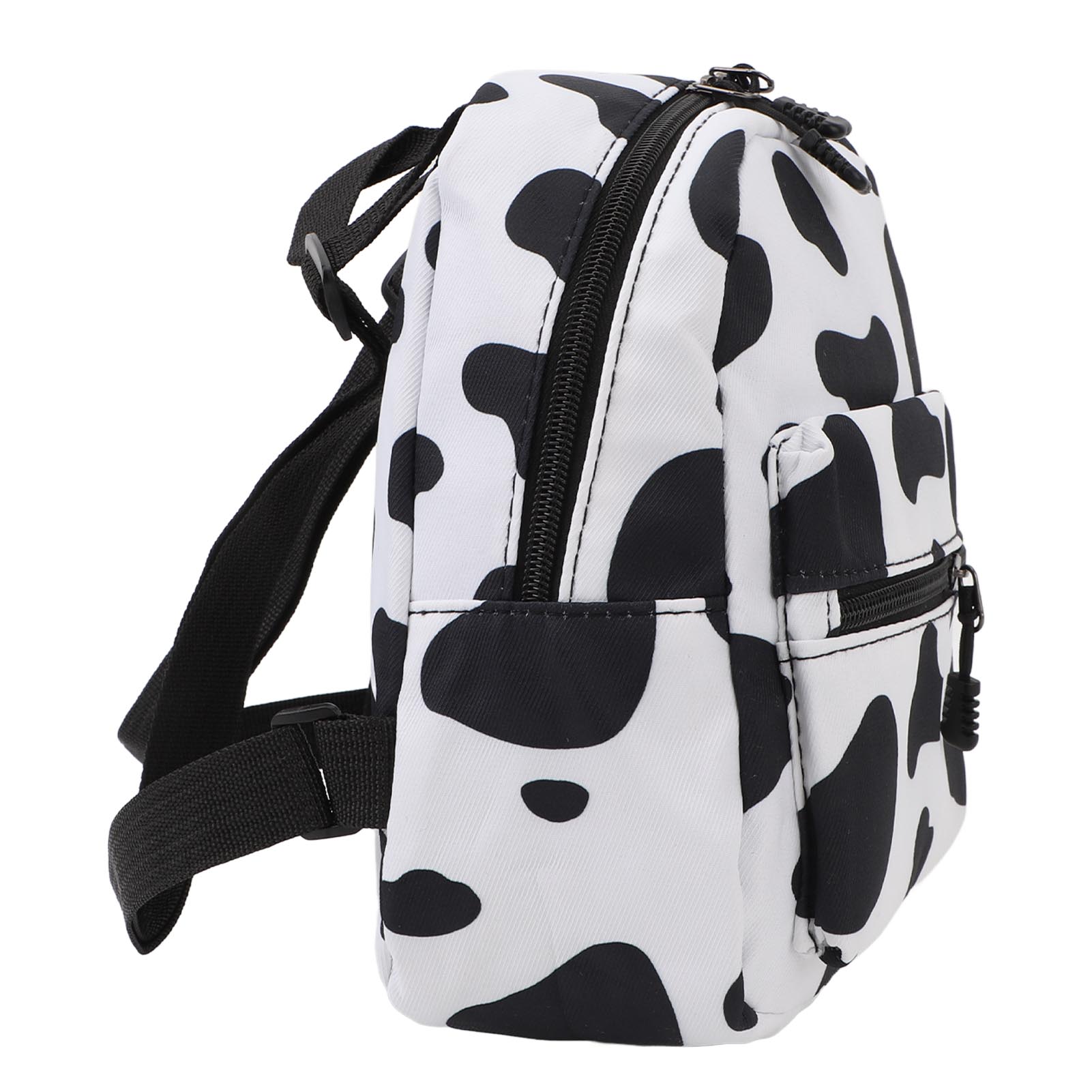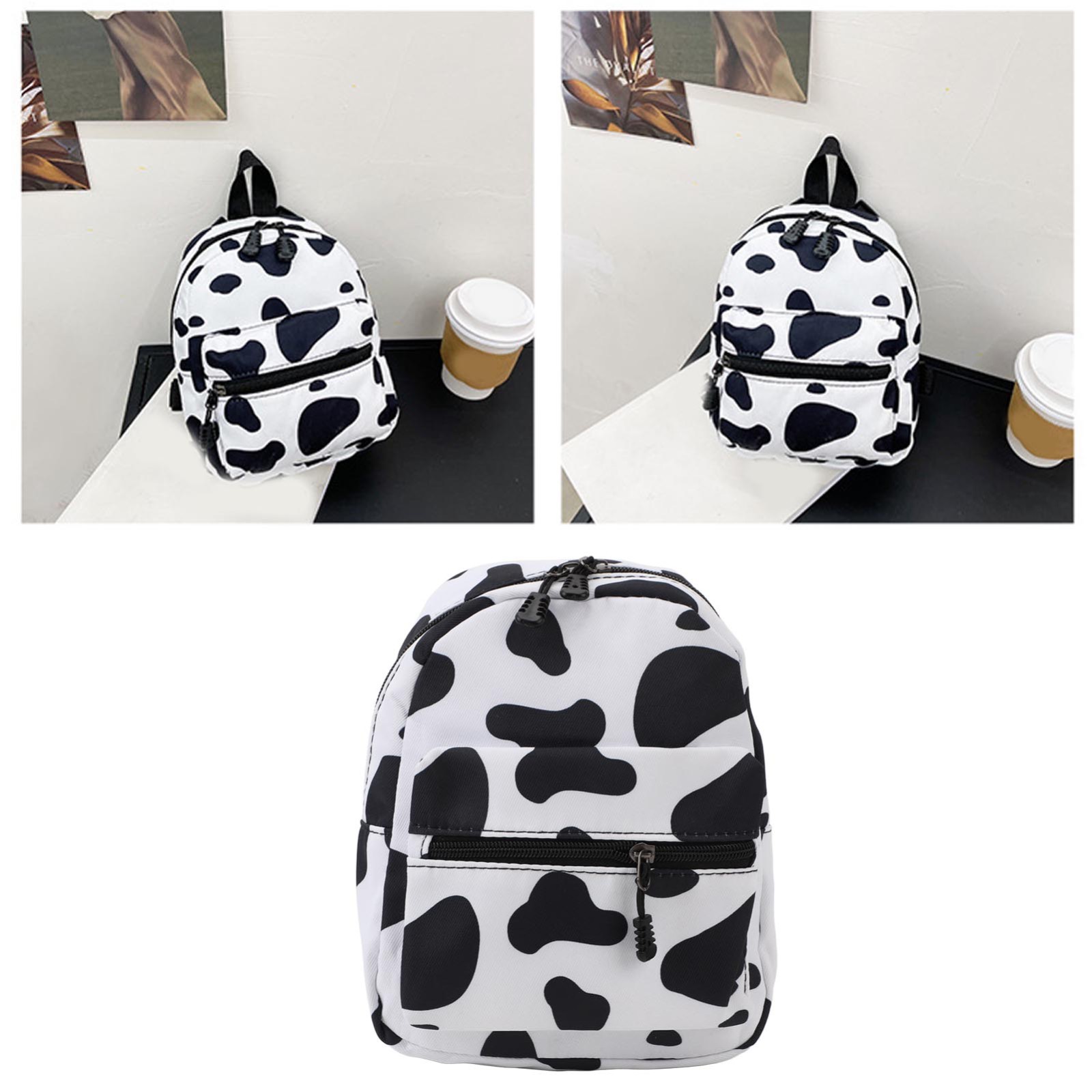 Mini Backpack Cute Sweet Fashionable Cow Pattern Multi Compartment Student Backpack for School Travel Shopping