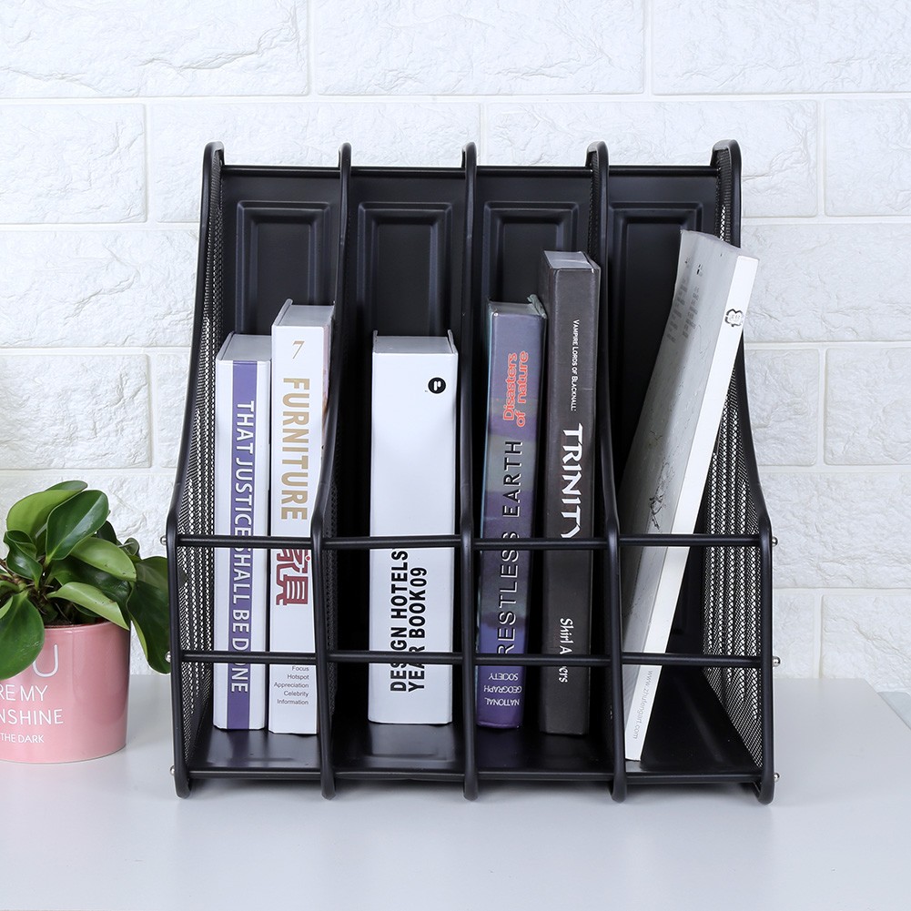 4 Slots Metal Magazine Book File Stand Organizer Sorter Vertical Holder Office Home School