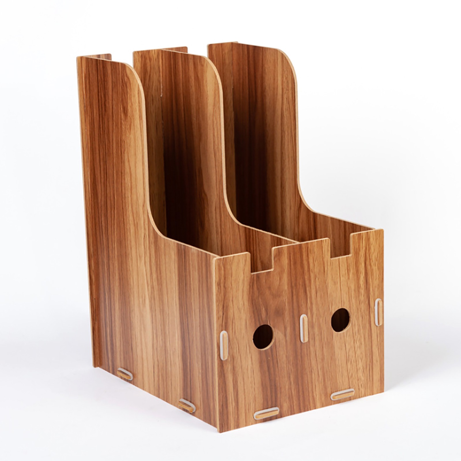 Magazine Book File Stand Organizer File Sorter Office Home Desk Storage Box Cherry Wood